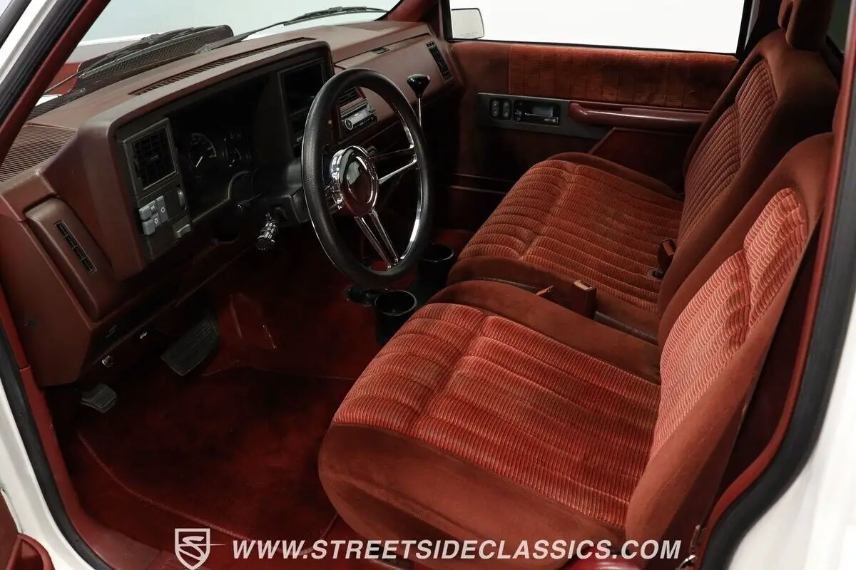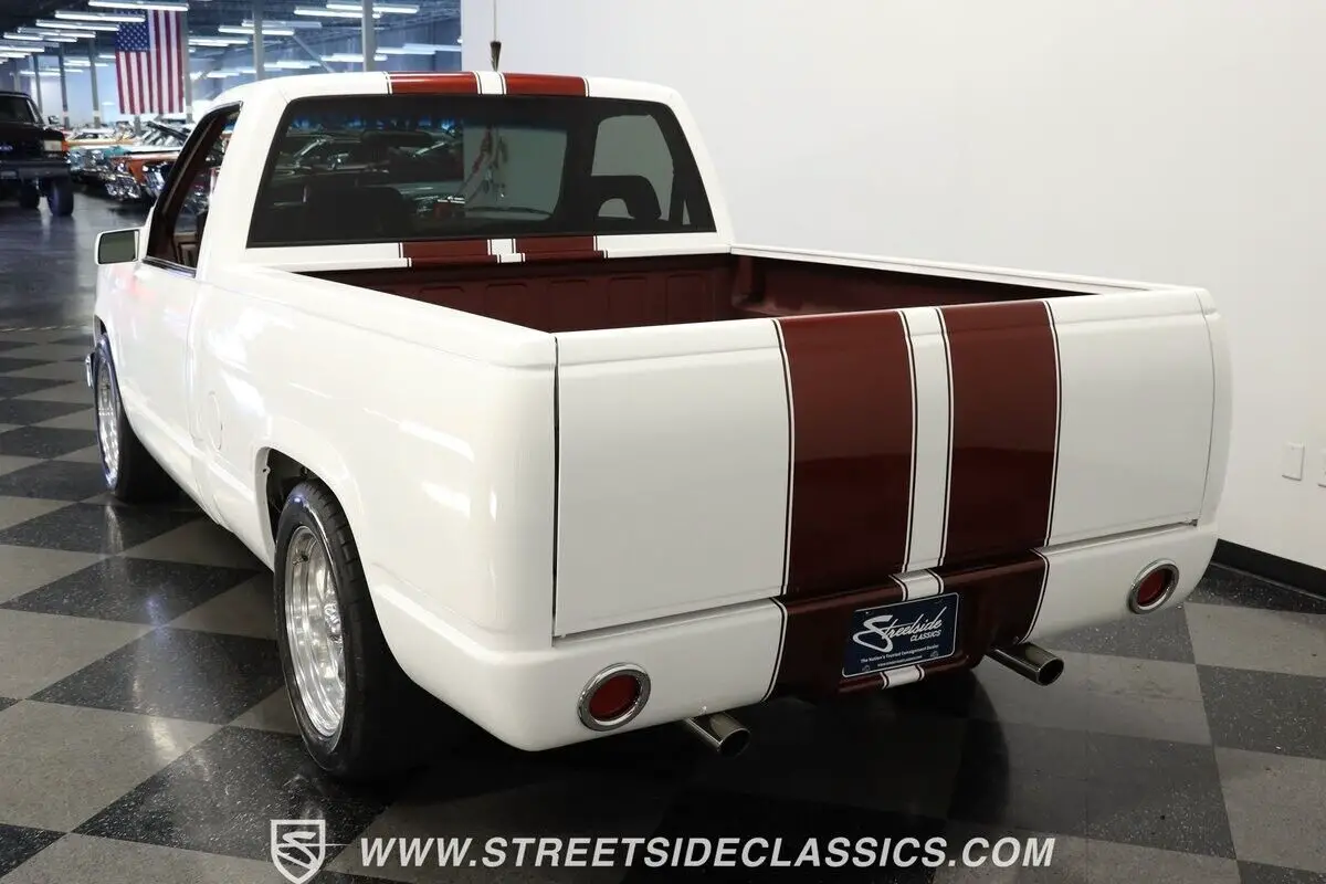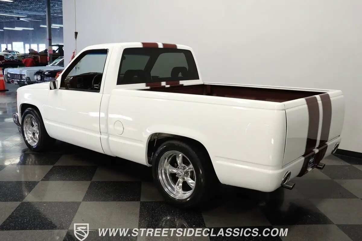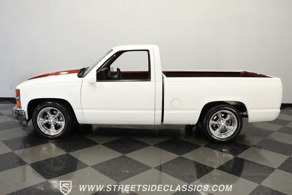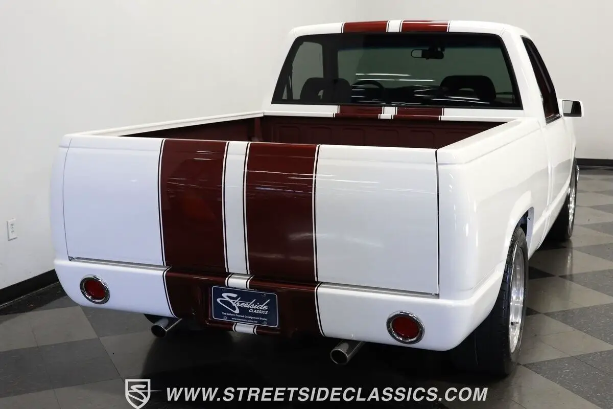 4812-TPA 1994 CHEVROLET SILVERADO 1500 HIGHLIGHTS: • 350 V8 Crate Motor • Holley Throttle Body Fuel Injection • MSD Ignition System • 700R4 4-Speed Automatic Transmission • Aluminum Edelbrock Heads • Edelbrock Performer Intake • Aftermarket Headers • Power Disc Brakes • Power Steering • Be Cool Aluminum Radiator with Electric Fan • Serpentine Belt System • White and Burgundy Two-Tone Paint • 18" American Racing Rims • 275/40ZR18 Nitto Radial Tires • Cowl Hood • Billet Grille • Upgraded Front Bumper with Integrated Lights • Custom Fiberglass Rear Bumper • Shaved Door Handles • Tinted Windows • Sport Mirrors • Color-Coordinated Bed Liner Paint • Burgundy Interior with Crushed Velour Split-Bench Seats • Dakota Digital Analog Gauges • Sony AM/FM CD Player with Aux and Bluetooth • Tilt Steering Column • Aftermarket Chrome Steering Wheel • Power Windows • Electric Door Poppers • Floor Shifter Upgrade
