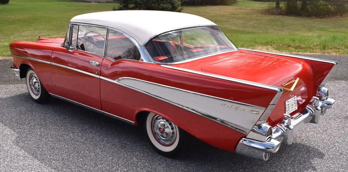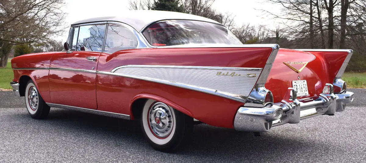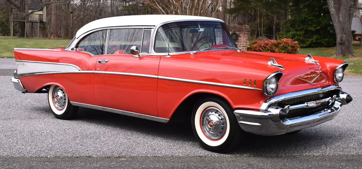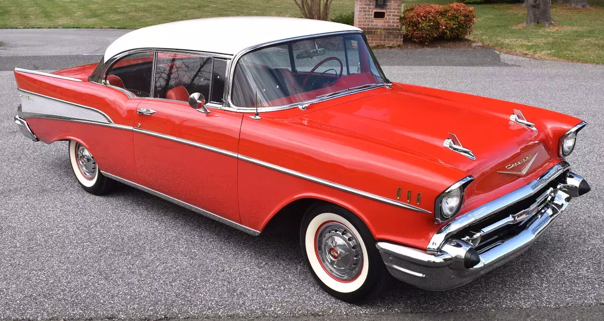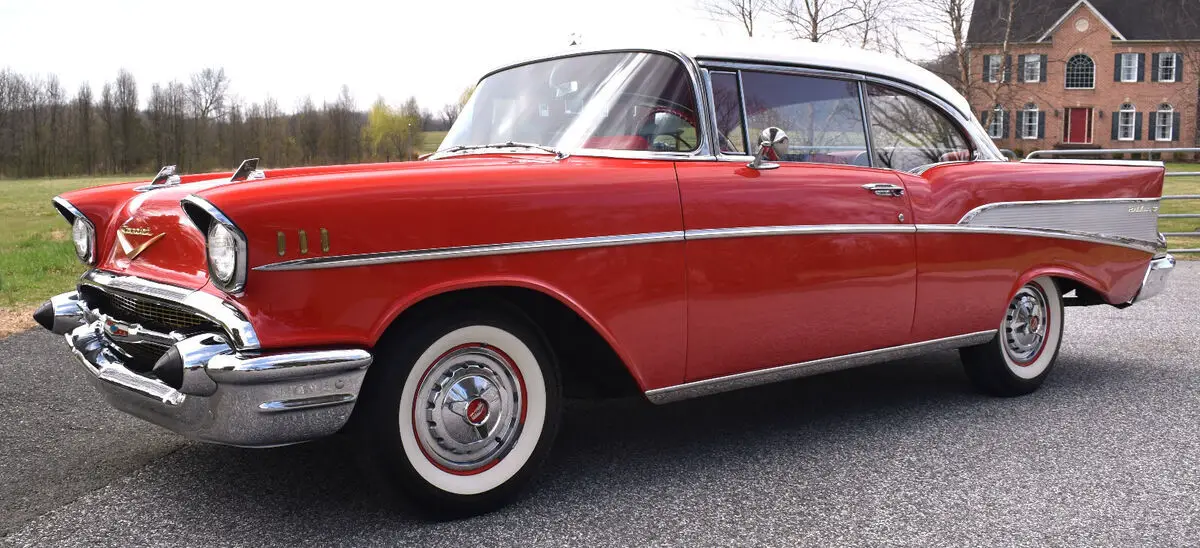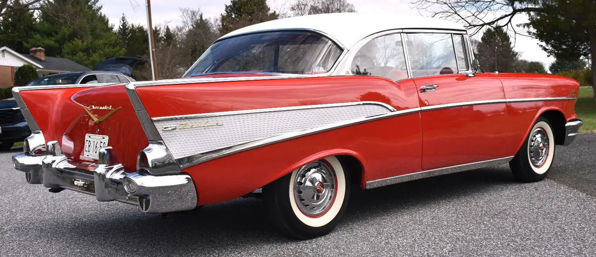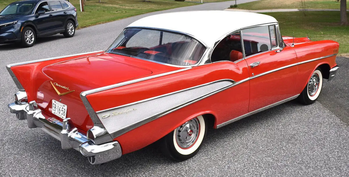 [isdntekvideo]Beautifully restored and numbers matching 1957 Chevrolet Bel Air 2-door hardtop in the original two-tone Ivory White & Matador Red and the matching black and red cloth / vinyl interior. Power comes from the #’s matching 283 cu. in. Super Turbo-Fire V-8 with its Rochester 4-barrel carburetor putting out 220 horsepower. Factory options include power steering, power brakes, and a ‘wonder bar’ AM radio.