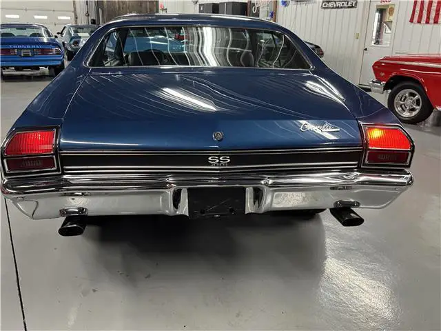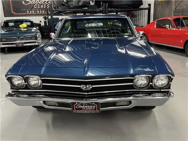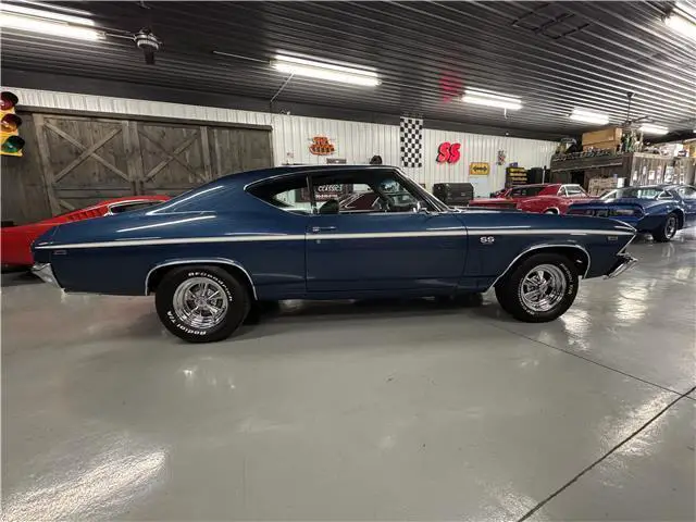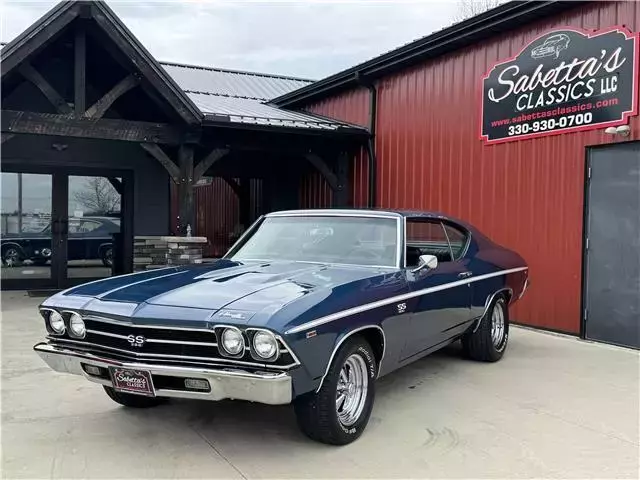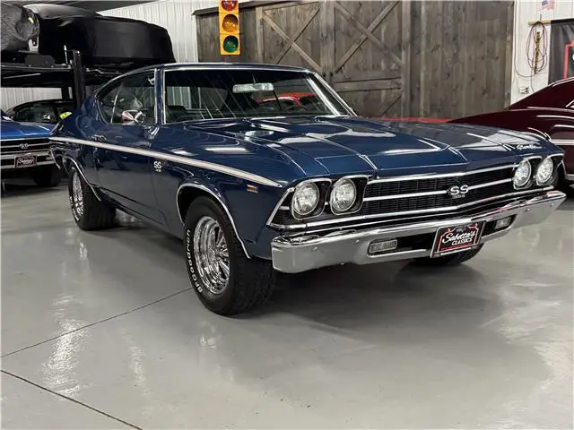 Vehicle Original VIN : 136379G367XXX1969 CHEVROLET CHEVELLE SS 396SOUTHERN CAR! 4-SPEED TRANSMISSION, P/S, PFDB This is one sharply dressed 1969 Chevelle SS in its factory color code 51 Dusk Blue with white SS stripes running down both sides!! The body is clean and straight. Looking down both sides it is straight, no rust or damage, and the panels fit square and flush. The paint has a smooth and very glossy finish. The door jambs are glossy and the bottom of the doors are clean. The weather stripping and window seals have been replaced. The chrome and trim are in very good condition. It sits on a set of Cragar 5 spoke SS wheels, 15x8 in the rear with a 275/60/15 and 15x7 in the front 245/60/15 wrapped with a set of BFG T/A radial tires!! It sports a factory bench seat with a Hurst four speed coming up out of the floor in front of it. The seats have been re-upholstered including new seat foam. It also has newer door panels. Looking forward to the dash, it is very nice. The lenses are clear and feature optional tach and gauges. The dash pad is nice, no cracks. It has an SS Sure Grip steering wheel and a retro AM/FM radio. The engine compartment is correct and nicely detailed with its period-correct 396 ci engine. Some features include: HEI ignition, Edelbrock aluminum intake manifold, dual feed Holley carburetor with correct fuel line, factory correct chrome valve covers, chrome air cleaner, factory exhaust manifolds and a cadmium plated brake booster with newer master cylinder. There are original style spring battery cables, GM radiator hoses, factory tower clamps, correct 4 core radiator and fan shroud. It also has power steering and power front disc brakes. The engine compartment has a nice satin black finish. The undercarriage is just as impressive. The front end has been completely rebuilt. The springs, shocks, tie rods and ball joints have been replaced. Looking up at the motor, it is clean as well as the M20 Muncie 4-speed transmission. The floors are all clean metal. It has a nice 2.5” dual exhaust system with Flowmaster mufflers. The exhaust pipes run all the way out the back with the correct exhaust tips. Power to the rear is through a 12-bolt 3:73 posi rear end. The E-brake assembly is hooked up and working. It also has a newer gas tank and straps. This undercarriage is very nice and all original clean metal!! The trunk is all clean metal. It is complete with a spare tire, jacking assembly and lug wrench. This Chevelle SS 396 has great curb appeal and is very impressive to drive as well!!