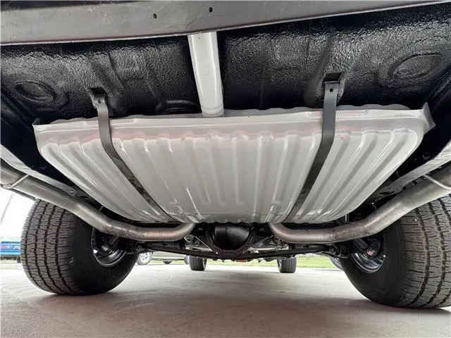 The undercarriage is just as impressive. The front end has been completely rebuilt. The springs, shocks, tie rods and ball joints have been replaced. Looking up at the motor, it is clean as well as the M20 Muncie 4-speed transmission. The floors are all clean metal. It has a nice 2.5” dual exhaust system with Flowmaster mufflers. The exhaust pipes run all the way out the back with the correct exhaust tips. Power to the rear is through a 12-bolt 3:73 posi rear end. The E-brake assembly is hooked up and working. It also has a newer gas tank and straps. This undercarriage is very nice and all original clean metal!!