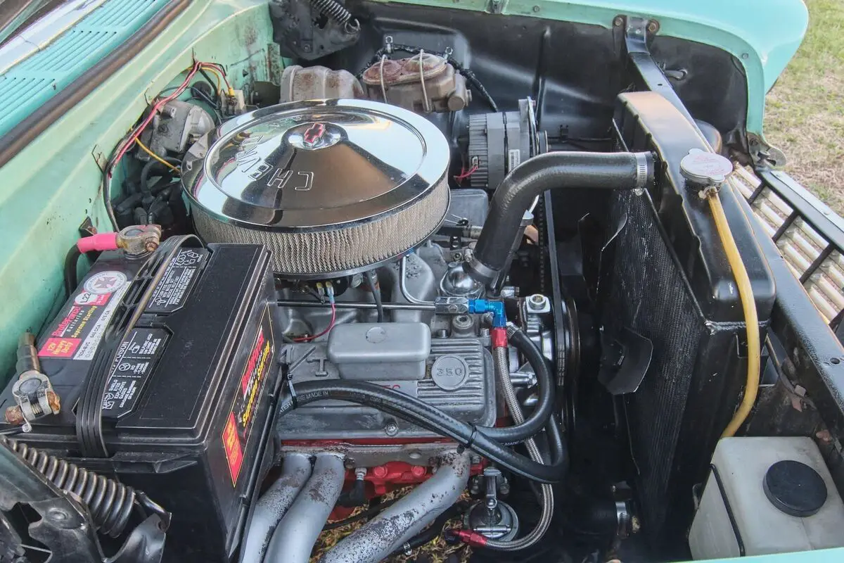 1956 Chevrolet 150, 350 V8 Engine, 4 Speed Manual Transmission, Ford 9 Rear End, Straight pipe headers with cut outs. Double pumper four-barrel carburetor. Older Paint Job in Correct Color Code 688 Pine Crest Green which is the Born as color. with some minor blemishes, clean black and white interior, Runs and Drives good, Older Restoration that has a great nostalgic look. Hurst VISION Dazzler Gold Mirror Machined Face Mag Wheels, high strength, lightweight alloy, classic Hurst look with modern day performance. Hurst caps. Spare with Wide White Wall Tire, Clean Undercarriage. While we do our best to provide the highest quality muscle cars with an honest and reliable description and realize the importance of transparency when selling vehicles. That being said, we have not built, modified, changed or personally owned this vehicle. Whether this vehicle is consigned or owned by Past & Present Motor Cars we do not know the vehicles complete history since new. We want to be clear and try to answer any questions our customers might have prior to purchasing. Additionally, we not only welcome but we encourage 3rd party independent inspections. Please inquire prior to purchase to make sure the advertised vehicle has not already been sold. We list our vehicles on multiple websites and a vehicle can sell at any time. If a customer chooses to purchase sight unseen (many of our customers choose this option) the customer accepts the vehicle AS IS and WHERE IS and understands we cannot address concerns after purchase. For this reason, it's important all concerns are addressed prior to purchase. We make every effort to present accurate and reliable information, but use of this information is voluntary, and should only be deemed reliable after an independent review of its accuracy, completeness, and timeliness. It is the sole responsibility of the customer to verify the existence of options, accessories and the vehicle condition before time of sale. Financing is Available with low rates and Vehicle Shipping is available from our Showroom to your Garage. A Classic Car Warranty is Available for Purchase from a 3rd Party. Please speak to our Sales Associate or Company Representative for more information. Our team is working and available anytime by Phone or Text for your convenience at 407-559-7759. Thank you for your interest!