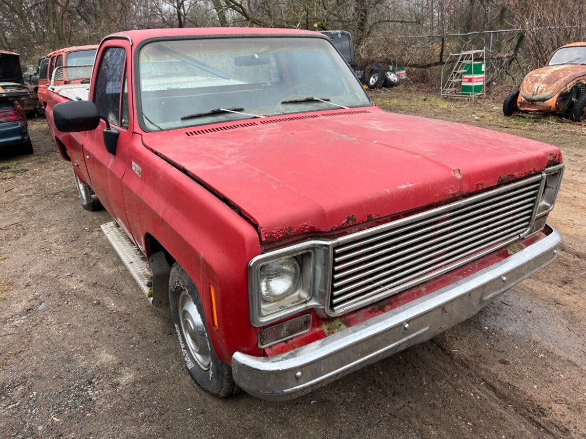 1974 Chevy 1500 short cab extended bed, Frame is solid no rot has some rot and rust throughout body but nothing major overall worth restoration is does not start but motor spin, I never drove it. I do not have Reg or titl, bill of sale only so please look into title process in your state . Usually it can be bonded titl, lein process through a shop or tow yard or a place like classic titles .Im in Jackson NJ 08527 i can deliver locally free feel free to ask any and all questions before bidding.
