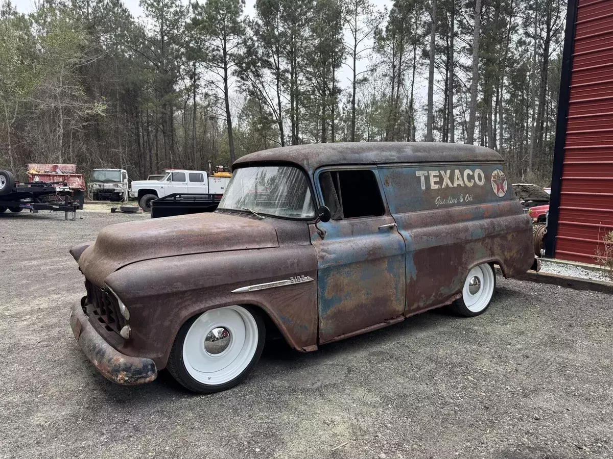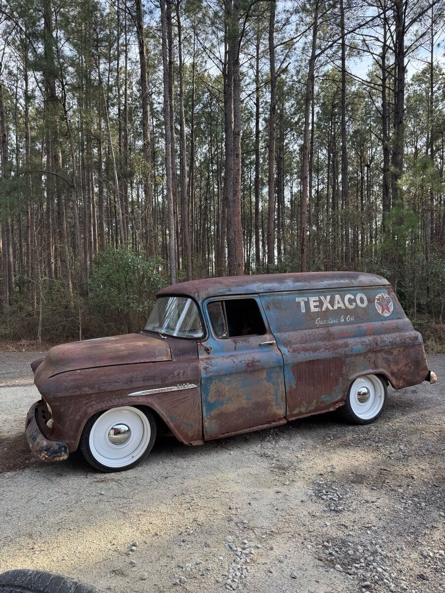 1955 Chevy panel 3100 . S10 frame and running gear ! Daily driver that’s ready to go. Great advertising piece for buisness or delivery truck! Easy to drive and tons of attention!