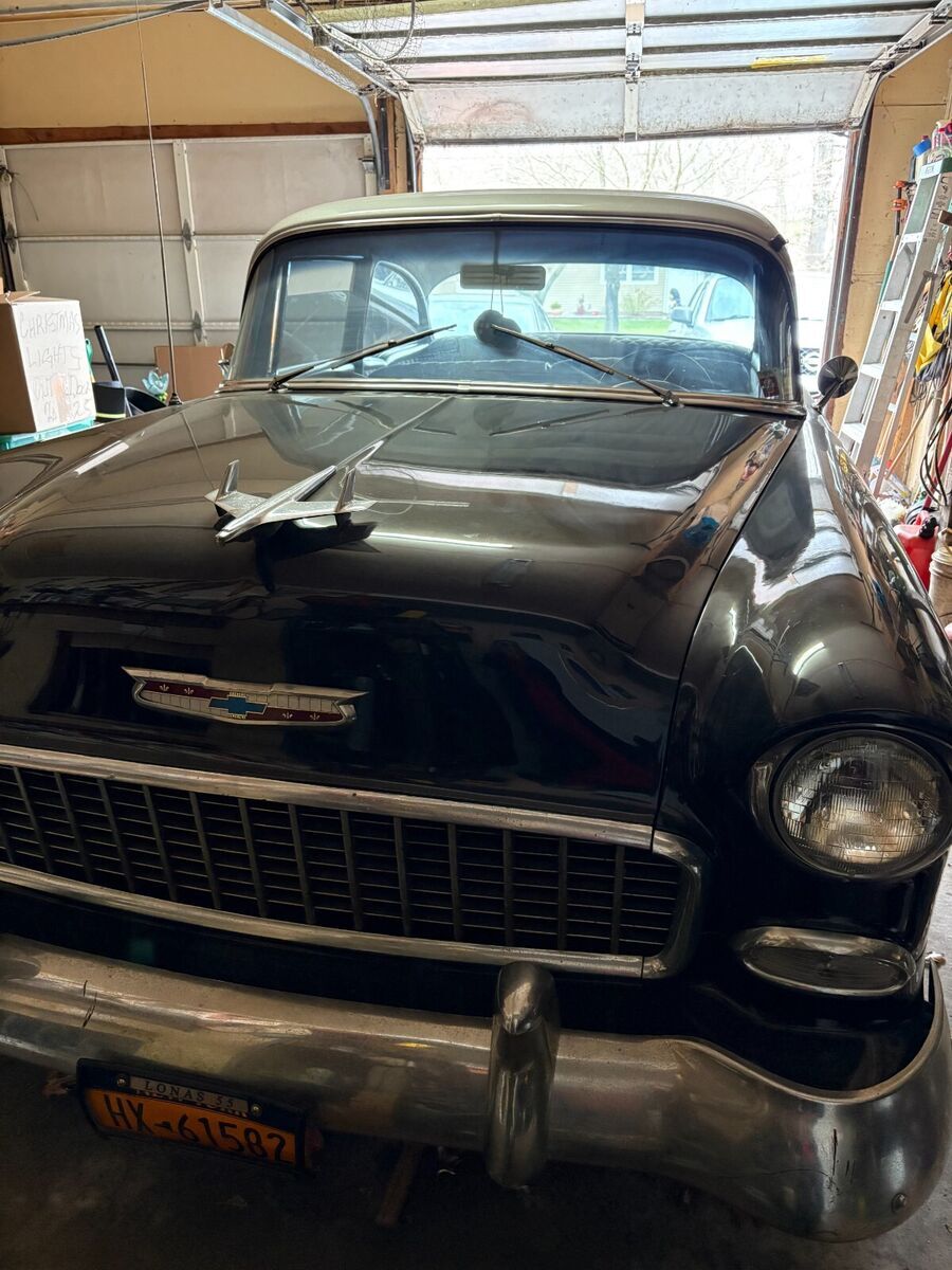 The 1955 Chevrolet Bel Air/150/210 is a classic sedan with a gray interior and black/grey exterior. This American-made car features a manual transmission, 2WD drive type, and runs on gasoline. It has a clean vehicle title The Chevrolet Bel Air/150/210 is a timeless piece of automotive history that is sure to attract collectors and vintage car enthusiasts alike. Its iconic design and reliable performance make it a valuable addition to any classic car collection. .Recently replaced shift, battery and alternator Selling due to illness