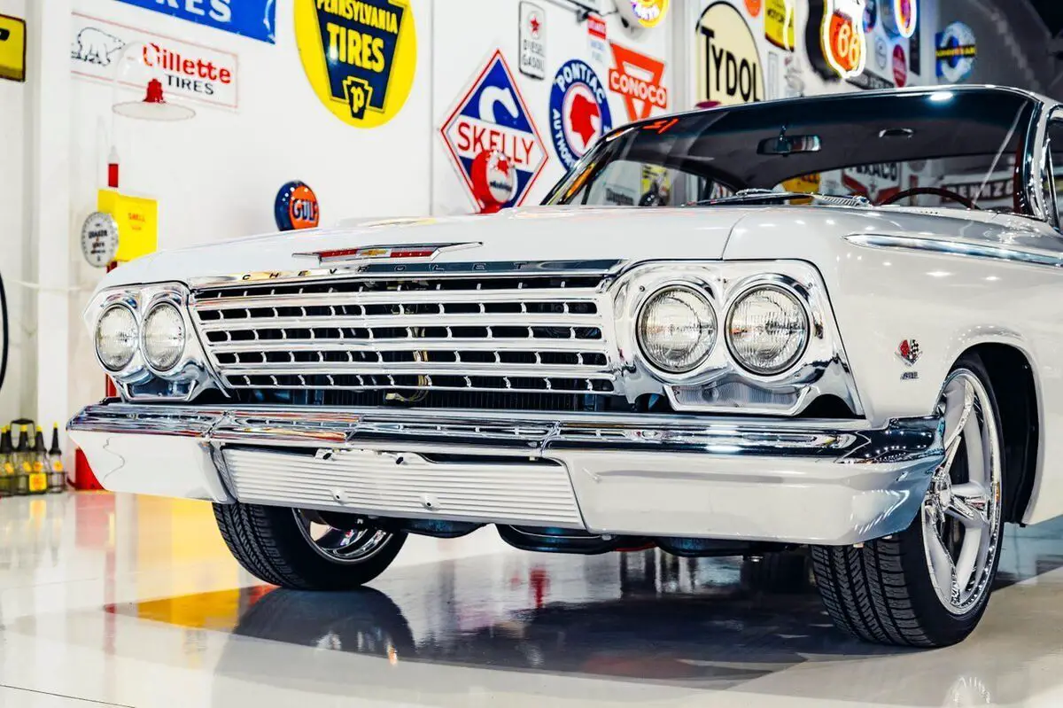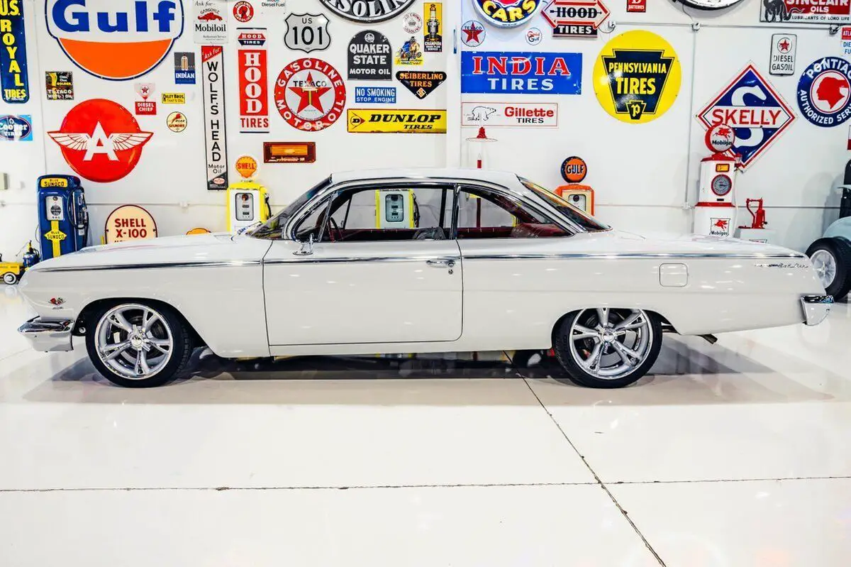 See car at Hotrodcollection .com We welcome trades 1962 Big Block 4 speed Odometer reads 17,987 miles Comprehensive frame-off restoration 409 CI V-8 engine 4-speed manual Borg Warner T-10 transmission Positraction rear end with 4.56 gears Crane Cams camshaft Venolia Pistons with 12:1 compression White exterior Red leather interior Schott wheels, front springs, original wheels and front springs included This perfectly optioned car represents THE peak of American muscle car performance in 1962!! This one has it all - the legendary dual-quad 409 with 409 HP, paired with a Borg-Warner T-10 4-speed trans, and matched with a 4.56 Posi-Traction rear end - all in the highly-desirable two-door "bubble-top" couple body. This particular example has undergone a complete and highly meticulous frame-off restoration, the engine was lovingly rebuilt with high quality parts such as Venolia forged pistons, a Crane cam, and more. . The painstaking care and time put into this restoration shows, making this car an investment you can show, drive with a smile, and own with pride. Immaculate in, out, top to bottom, no disappointments here! The 1962 Chevrolet Bel Air 2-dr bubble top coupe is a classic car that has captivated the hearts of automotive enthusiasts for decades. The appeal of this vehicle lies in its unique design, powerful engine, and historical significance in the American muscle car scene. The 409 cubic inch V-8 engine was a legend in its time, offering a range of power outputs from 380 hp and 420 lb-ft of torque up to this car's rare 409 hp at 6,500 rpm and 420 lb-ft of torque at 4,200 rpm. The 409/409 made the 1962 Bel Air a formidable presence on both the street and the drag strip, with multiple famous NHRA Super Stock racers launching their careers with this car's same option spec. The 409 was a popular option for Chevrolet until late 1965 when it was replaced by the 396-inch big-block, making the 1962 model a significant piece of automotive history. The 2-dr "bubble top" design gets its name from the frameless door windows and large, rounded rear window, which gave the car a sleek and sporty appearance that was unique for its time. This design was not only visually appealing but also contributed to the car's aerodynamic performance. The 1962 Bel Air was part of the third generation of Chevrolet's full-size car lineup, and the 2-dr bubble top was only available on the upscale Bel Air models for that year.. Miles are what shows on car but will be sold as Exempt