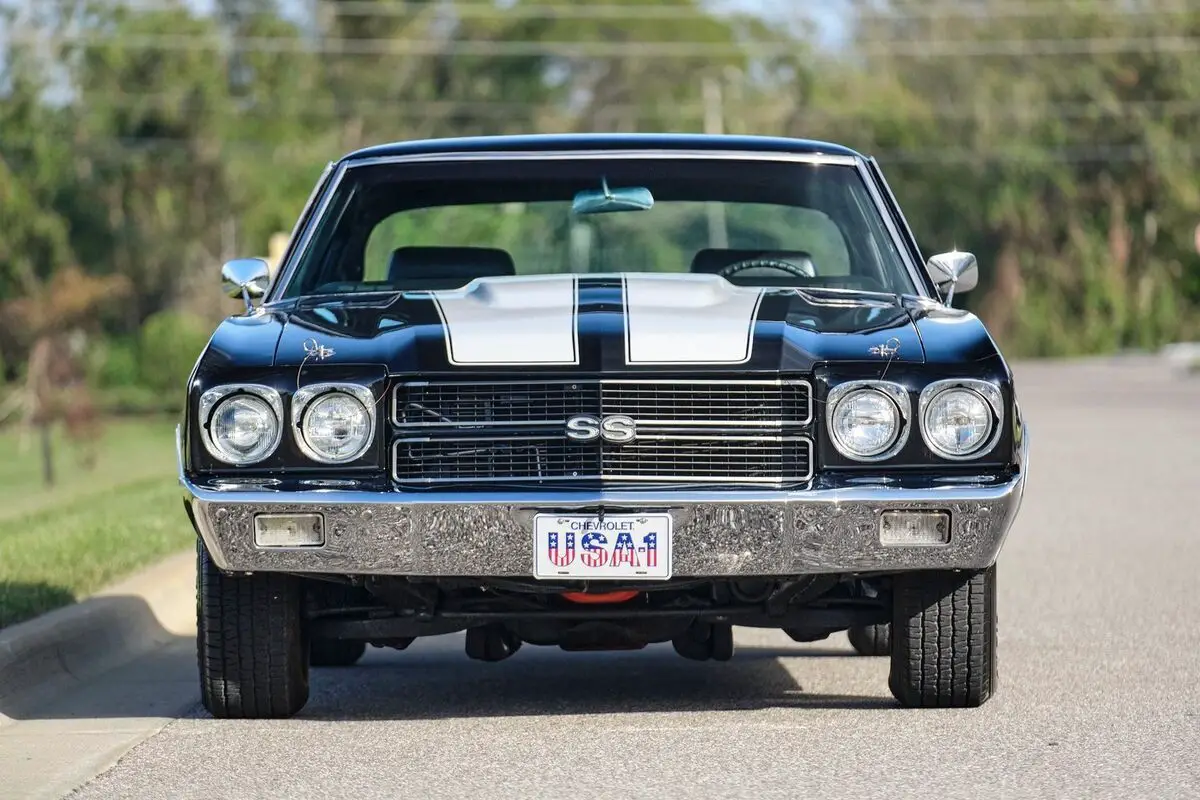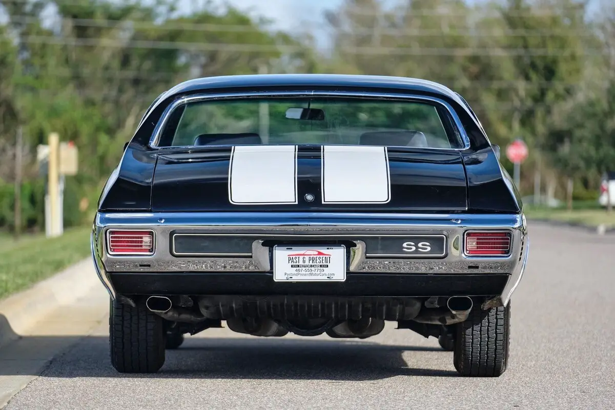 1970 Chevrolet Chevelle SS 454 Big Block V8 Engine, CVF Serpentine Pulley Kit with Air Conditioning, Automatic Transmission, Headers and Dual Exhaust, Aluminum Radiator, Stunning Tuxedo Black Paint Job, Black Bucket Seat Interior with Center Console, SS Gauges with Tachometer, SS Sport Steering Wheel, 14 SS Wheels with BF Goodrich Radial T/A White Letter Tires. With no build sheet or original drive train we cannot confirm how this Chevelle was born as an SS or not. While we do our best to provide the highest quality muscle cars with an honest and reliable description and realize the importance of transparency when selling vehicles. That being said, we have not built, modified, changed or personally owned this vehicle. Whether this vehicle is consigned or owned by Past & Present Motor Cars we do not know the vehicles complete history since new. We want to be clear and try to answer any questions our customers might have prior to purchasing. Additionally, we not only welcome but we encourage 3rd party independent inspections. Please inquire prior to purchase to make sure the advertised vehicle has not already been sold. We list our vehicles on multiple websites and a vehicle can sell at any time. If a customer chooses to purchase sight unseen (many of our customers choose this option) the customer accepts the vehicle AS IS and WHERE IS and understands we cannot address concerns after purchase. For this reason, it's important all concerns are addressed prior to purchase. We make every effort to present accurate and reliable information, but use of this information is voluntary, and should only be deemed reliable after an independent review of its accuracy, completeness, and timeliness. It is the sole responsibility of the customer to verify the existence of options, accessories and the vehicle condition before time of sale. Financing is Available with low rates and Vehicle Shipping is available from our Showroom to your Garage. A Classic Car Warranty is Available for Purchase from a 3rd Party. Please speak to our Sales Associate or Company Representative for more information. Our team is working and available anytime by Phone or Text for your convenience at 407-559-7759. Thank you for your interest!