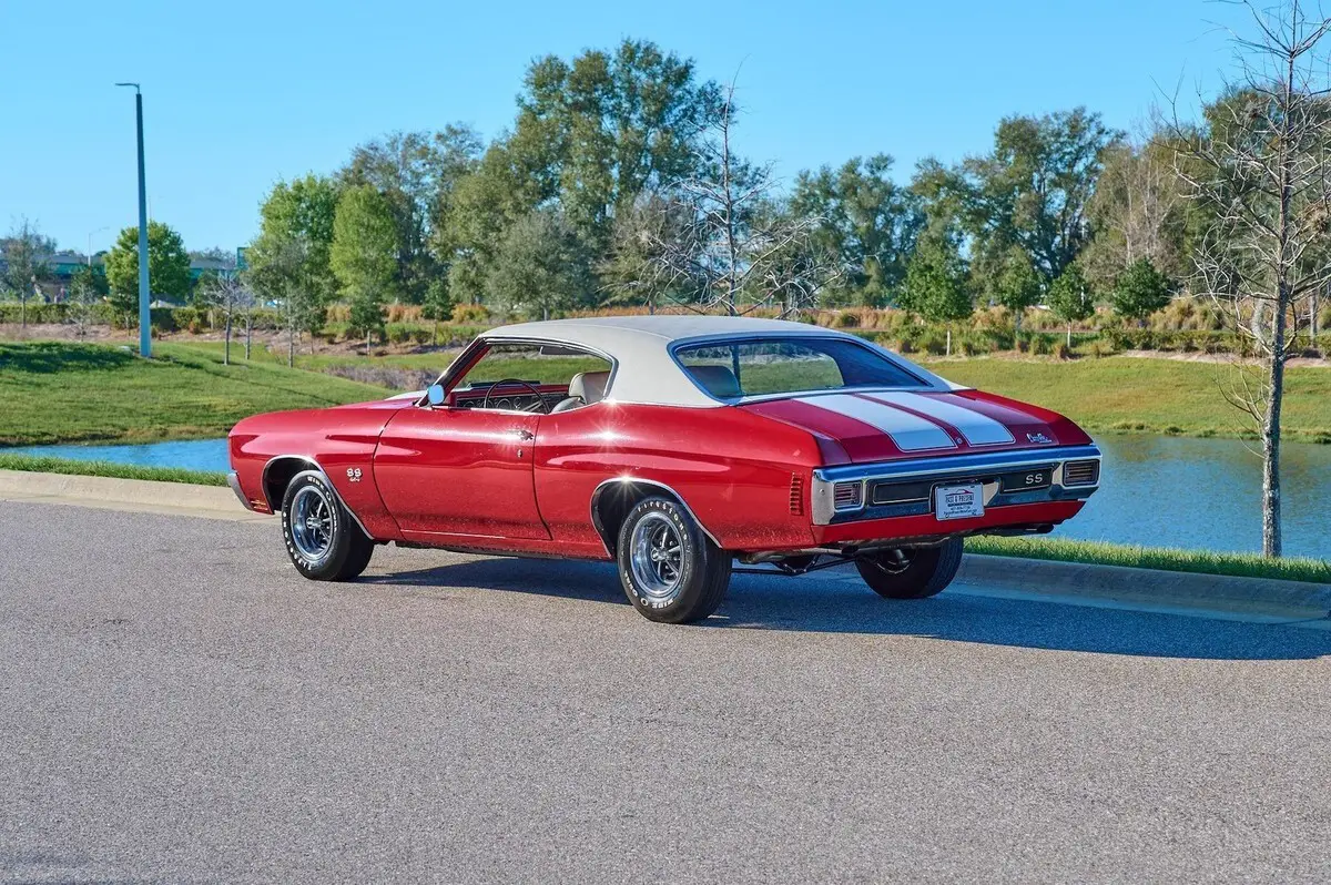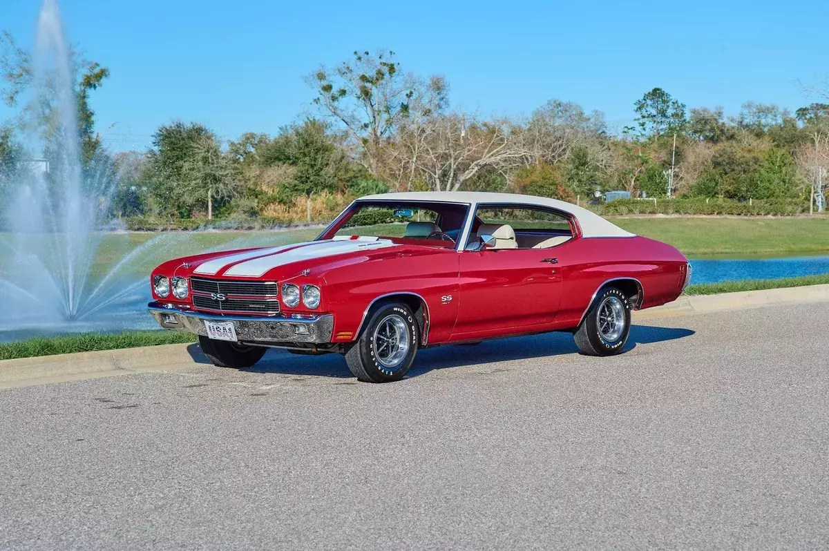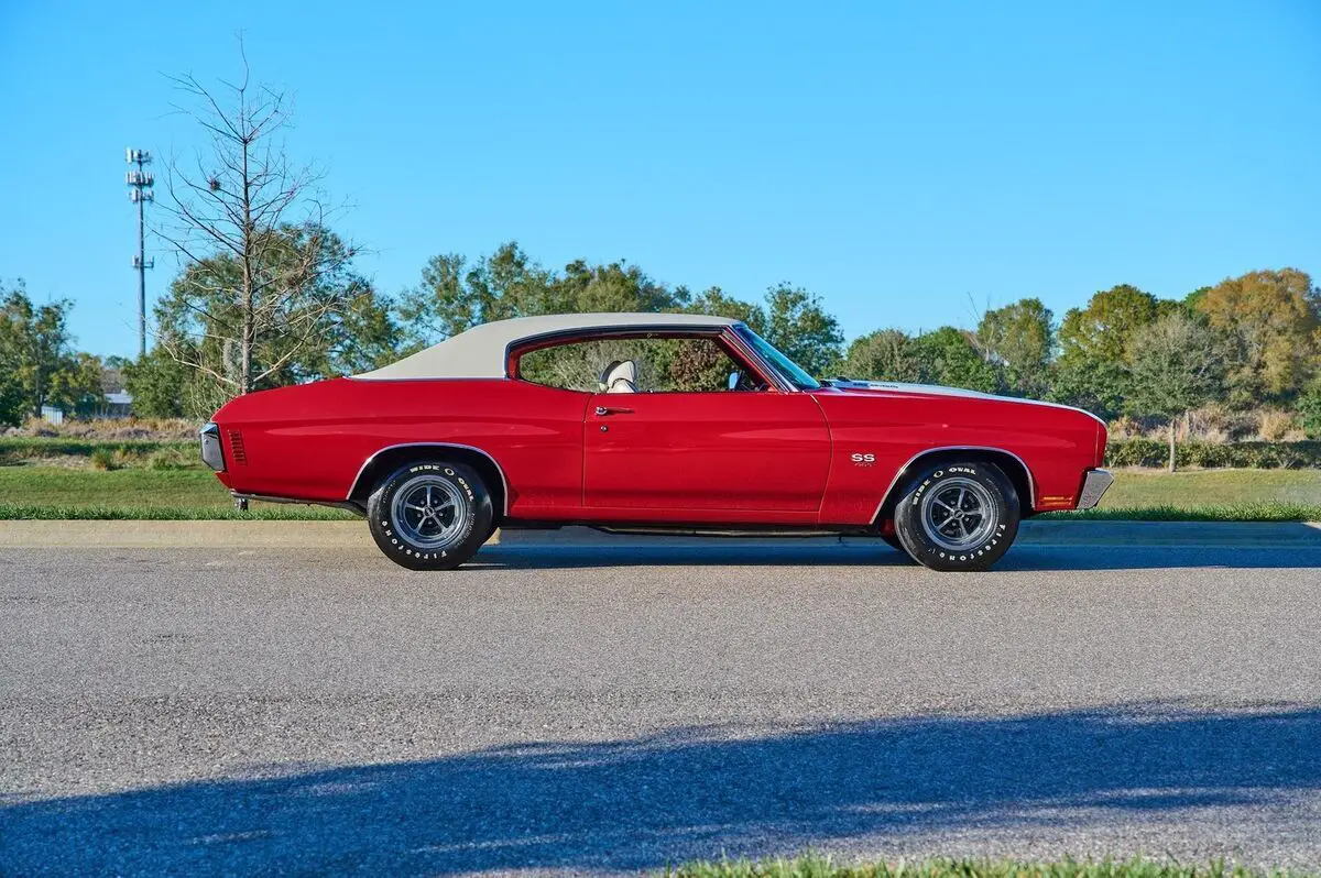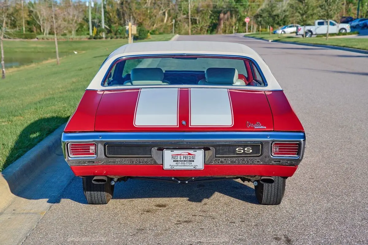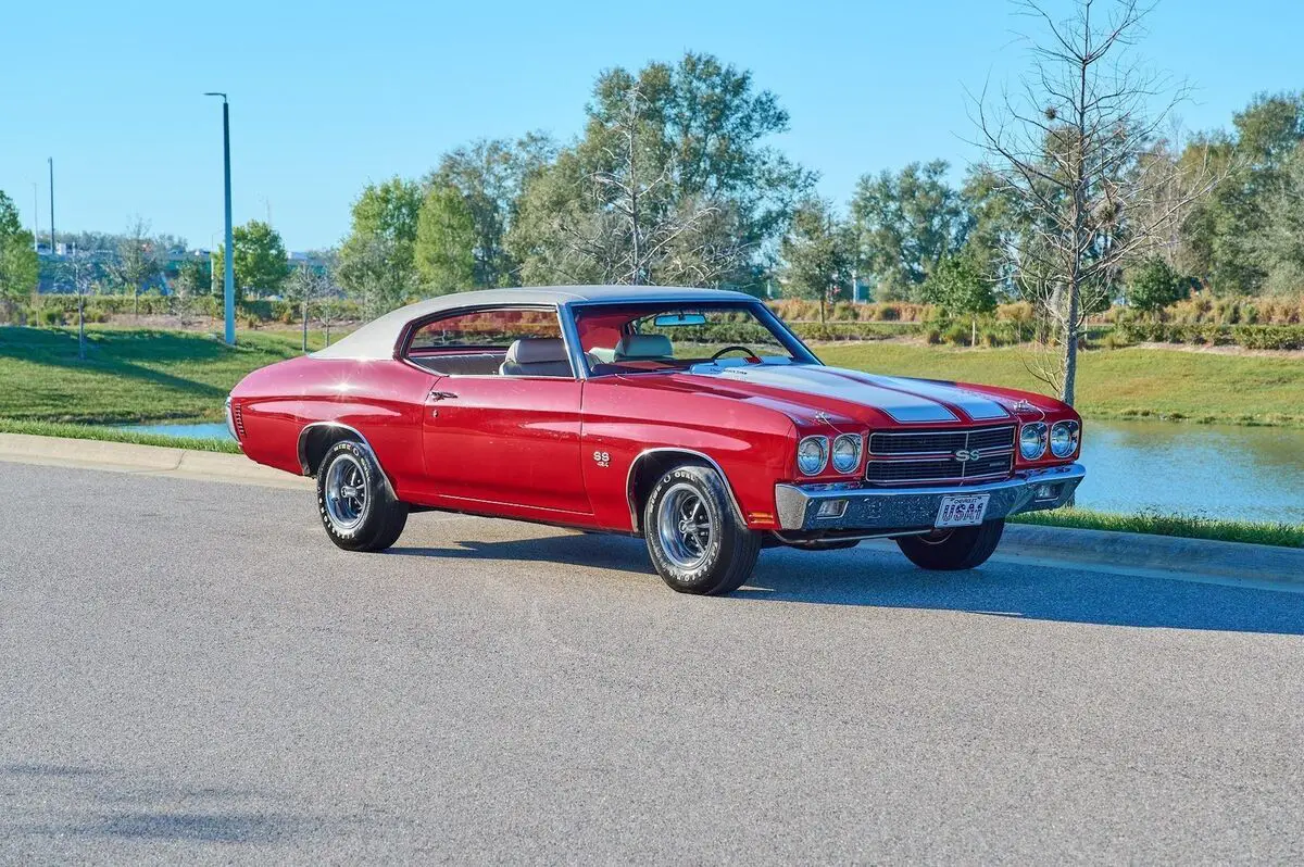 1970 Chevrolet Chevelle SS, 454 Big Block V8 Engine, 4 Speed Manual Transmission, Nicely Restored with very low miles since completion, Finished in Cranberry Red, Very high end paint job with excellent fit and finish, All New Ivory (White) Interior and a White Vinyl Top. This is a very highly restored Chevelle with Bucket Seats and Center Console, Tach and Gauges and a Functional Cowl Induction Hood. This car is fun to drive and a show stopper. With no build sheet or original drive train we cannot confirm how this Chevelle was born as an SS or not. While we do our best to provide the highest quality muscle cars with an honest and reliable description and realize the importance of transparency when selling vehicles. That being said, we have not built, modified, changed or personally owned this vehicle. Whether this vehicle is consigned or owned by Past & Present Motor Cars we do not know the vehicles complete history since new. We want to be clear and try to answer any questions our customers might have prior to purchasing. Additionally, we not only welcome but we encourage 3rd party independent inspections. Please inquire prior to purchase to make sure the advertised vehicle has not already been sold. We list our vehicles on multiple websites and a vehicle can sell at any time. If a customer chooses to purchase sight unseen (many of our customers choose this option) the customer accepts the vehicle AS IS and WHERE IS and understands we cannot address concerns after purchase. For this reason, it's important all concerns are addressed prior to purchase. We make every effort to present accurate and reliable information, but use of this information is voluntary, and should only be deemed reliable after an independent review of its accuracy, completeness, and timeliness. It is the sole responsibility of the customer to verify the existence of options, accessories and the vehicle condition before time of sale. Financing is Available with low rates and Vehicle Shipping is available from our Showroom to your Garage. A Classic Car Warranty is Available for Purchase from a 3rd Party. Please speak to our Sales Associate or Company Representative for more information. Our team is working and available anytime by Phone or Text for your convenience at 407-559-7759. Thank you for your interest!