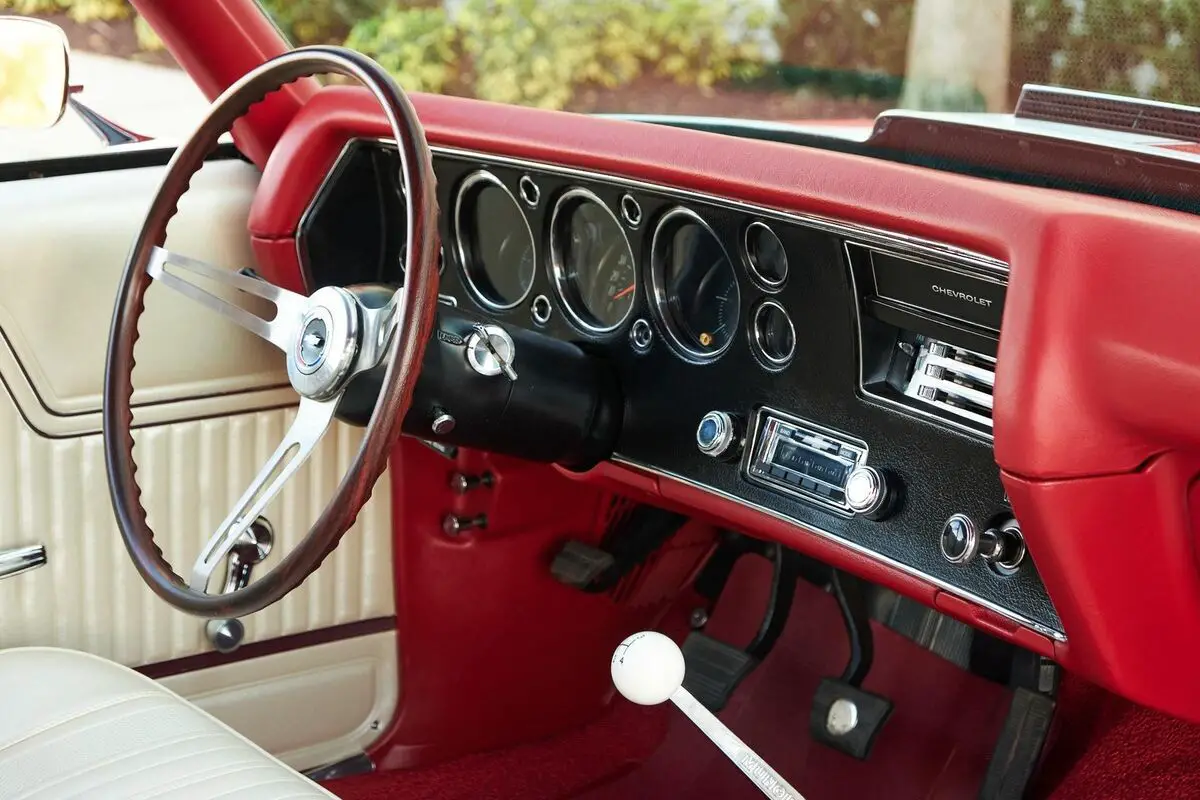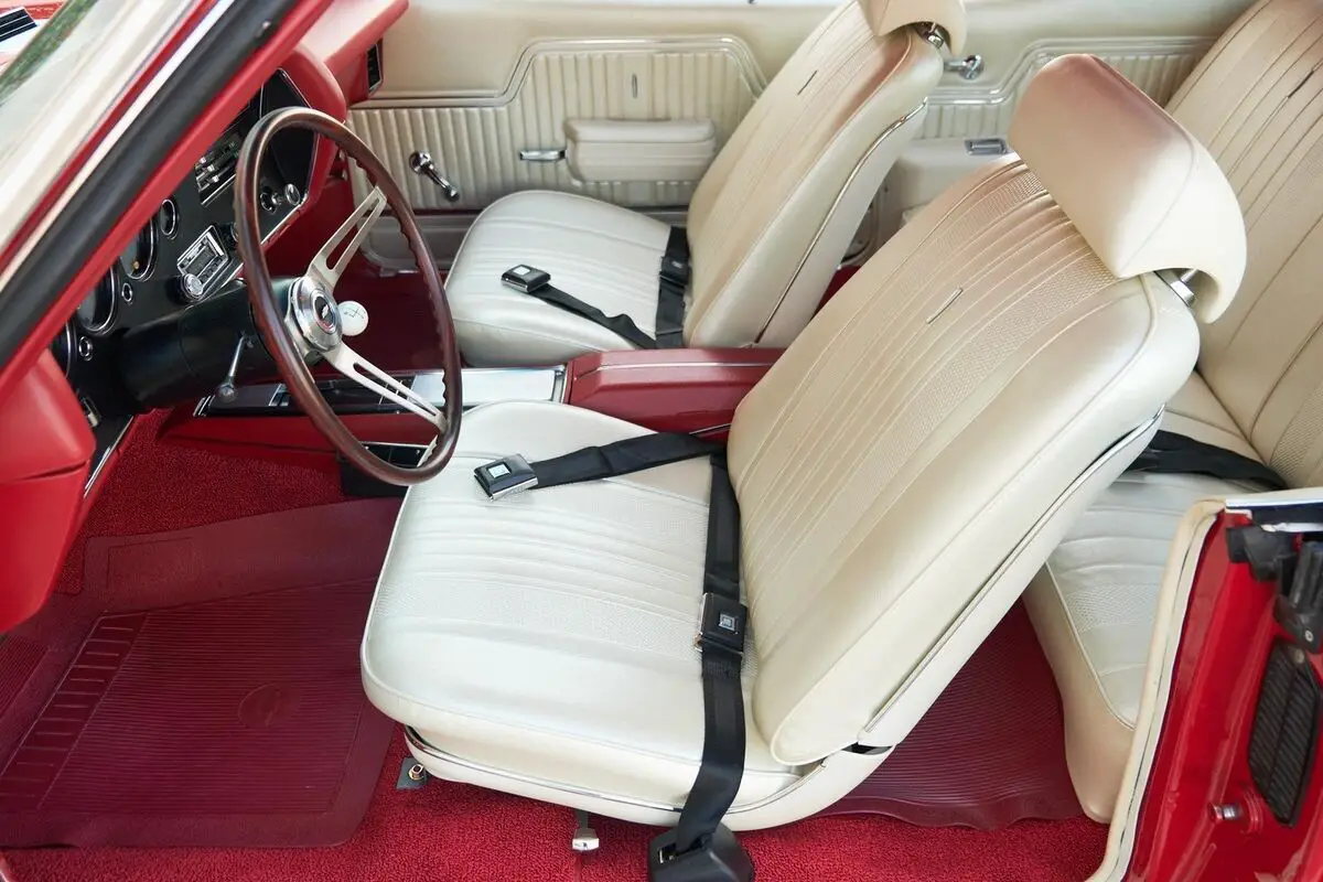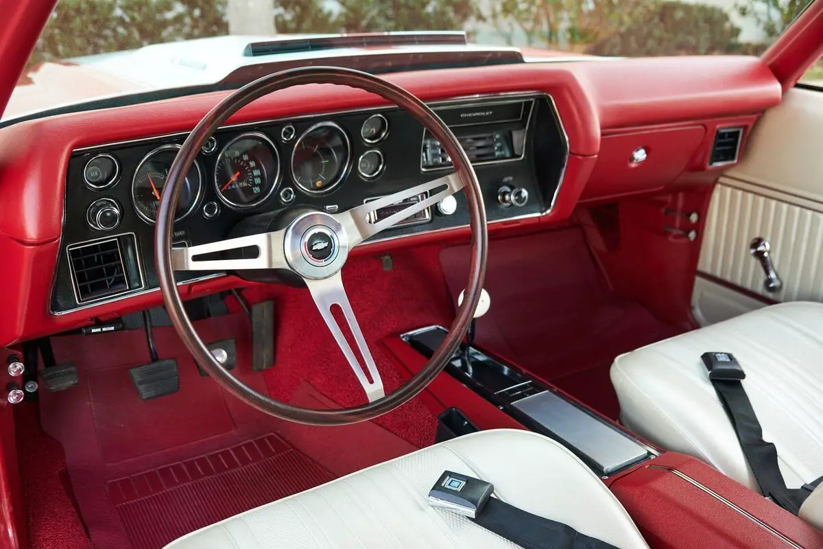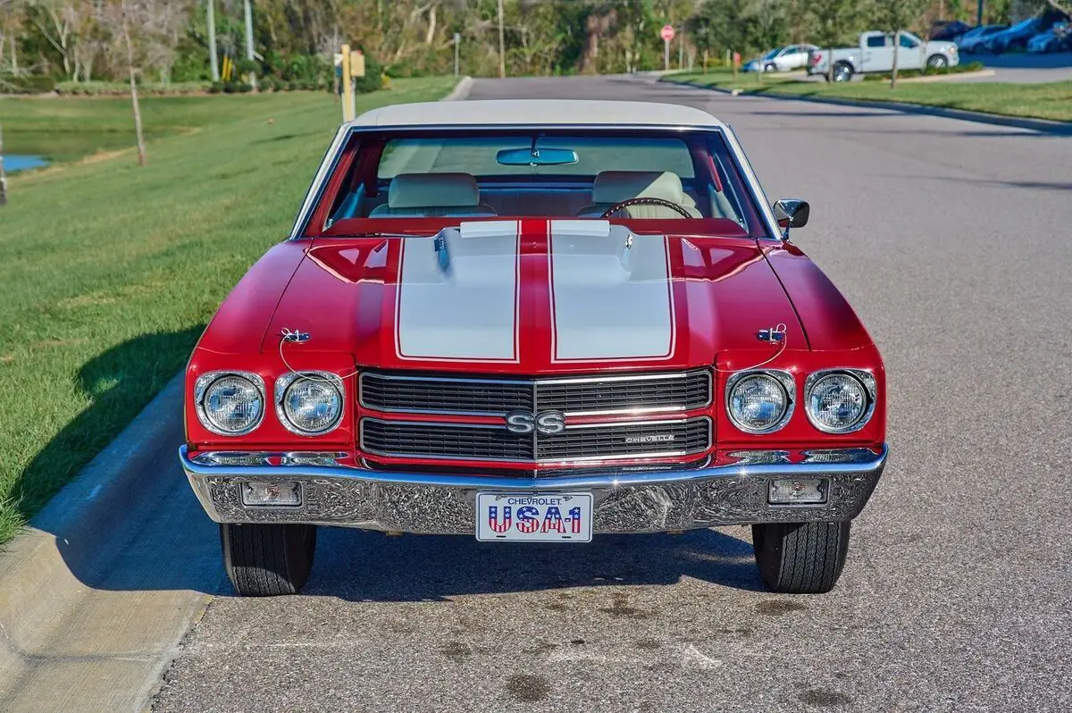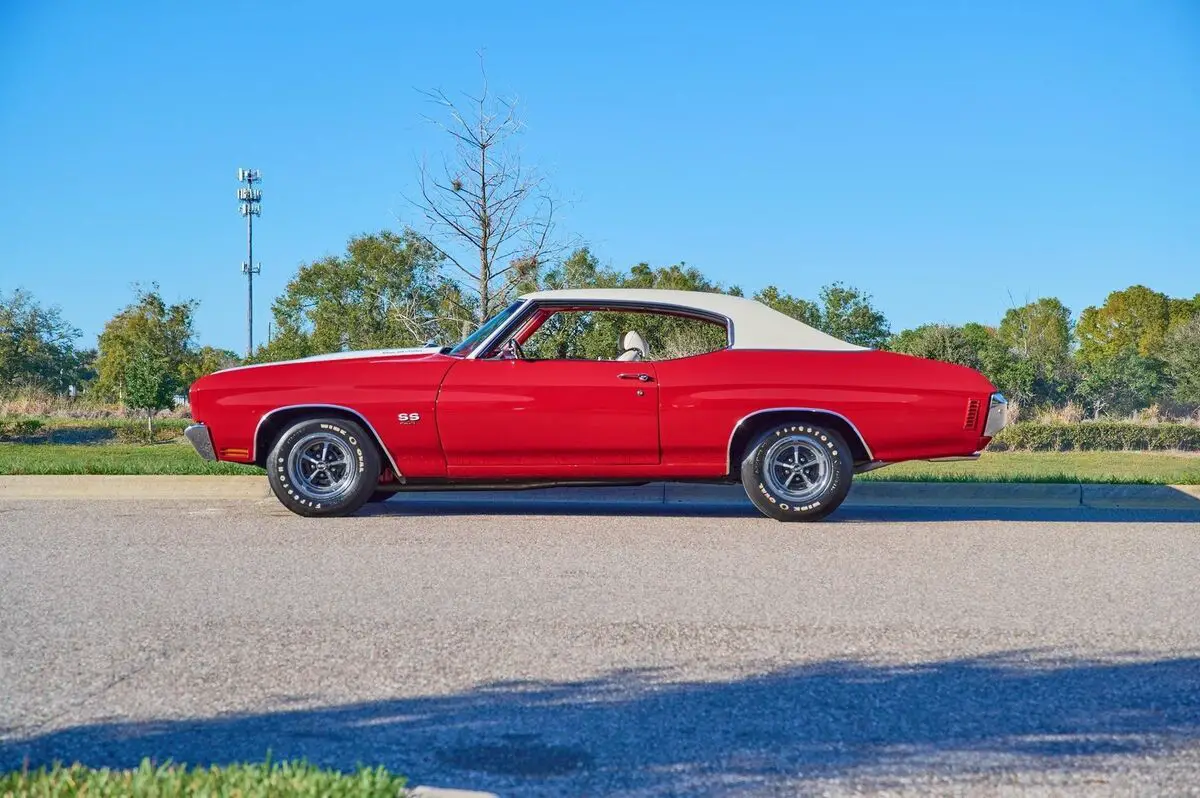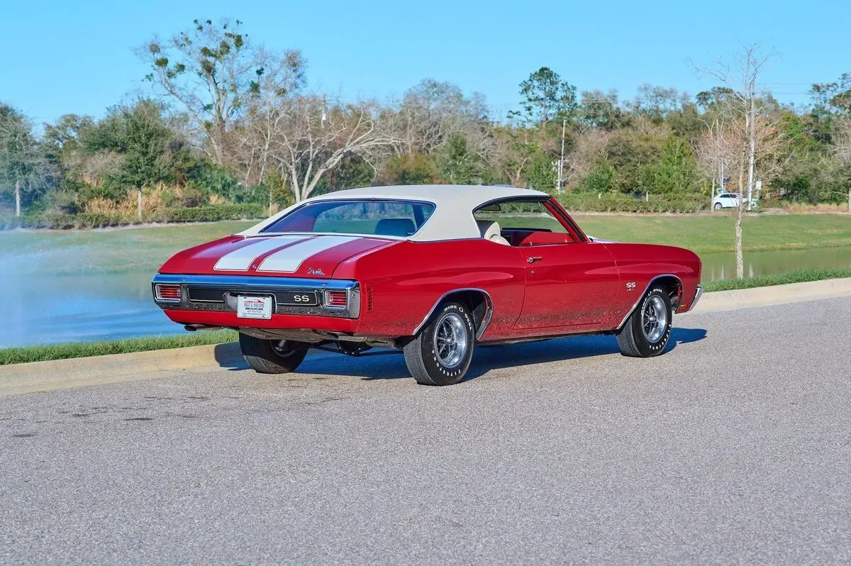 1970 Chevrolet Chevelle SS, 454 Big Block V8 Engine, 4 Speed Manual Transmission, Nicely Restored with very low miles since completion, Finished in Cranberry Red, Very high end paint job with excellent fit and finish, All New Ivory (White) Interior and a White Vinyl Top. This is a very highly restored Chevelle with Bucket Seats and Center Console, Tach and Gauges and a Functional Cowl Induction Hood. This car is fun to drive and a show stopper. With no build sheet or original drive train we cannot confirm how this Chevelle was born as an SS or not. While we do our best to provide the highest quality muscle cars with an honest and reliable description and realize the importance of transparency when selling vehicles. That being said, we have not built, modified, changed or personally owned this vehicle. Whether this vehicle is consigned or owned by Past & Present Motor Cars we do not know the vehicles complete history since new. We want to be clear and try to answer any questions our customers might have prior to purchasing. Additionally, we not only welcome but we encourage 3rd party independent inspections. Please inquire prior to purchase to make sure the advertised vehicle has not already been sold. We list our vehicles on multiple websites and a vehicle can sell at any time. If a customer chooses to purchase sight unseen (many of our customers choose this option) the customer accepts the vehicle AS IS and WHERE IS and understands we cannot address concerns after purchase. For this reason, it's important all concerns are addressed prior to purchase. We make every effort to present accurate and reliable information, but use of this information is voluntary, and should only be deemed reliable after an independent review of its accuracy, completeness, and timeliness. It is the sole responsibility of the customer to verify the existence of options, accessories and the vehicle condition before time of sale. Financing is Available with low rates and Vehicle Shipping is available from our Showroom to your Garage. A Classic Car Warranty is Available for Purchase from a 3rd Party. Please speak to our Sales Associate or Company Representative for more information. Our team is working and available anytime by Phone or Text for your convenience at 407-559-7759. Thank you for your interest!