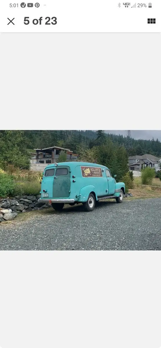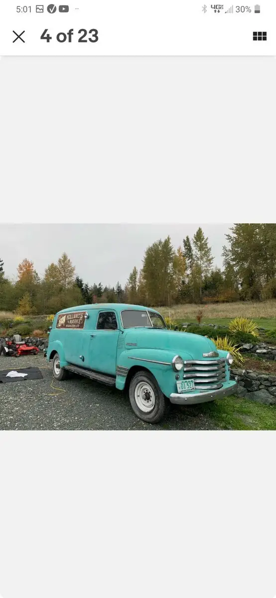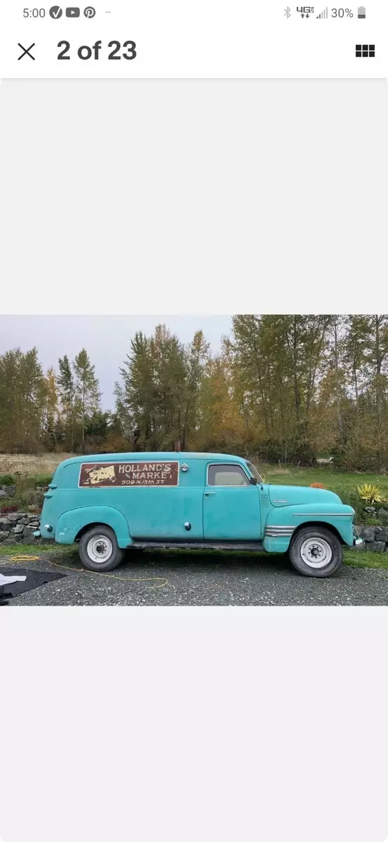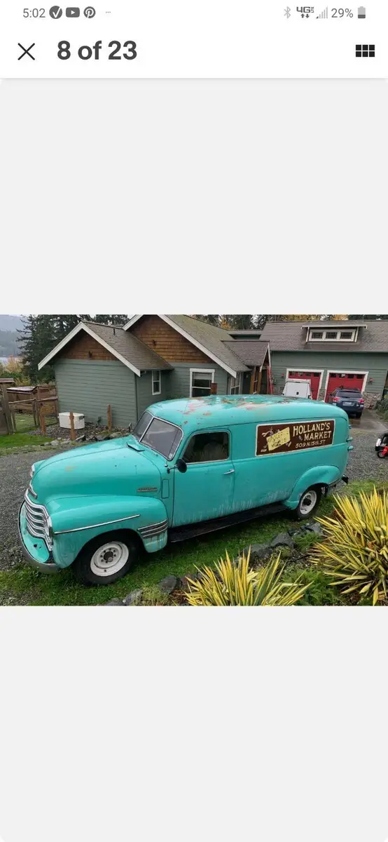 1948 Chevy Thriftmaster panel van in excellent solid rust free condition. I purchased this Panel van from the grandson of the original owner. It has been in dry storage since the early 1980s.Original factory interior and flooring. Cab is 100 percent solid no holes or patches. This is extremely rare.Body and running boards are also extremely solid and no rust holes. There is minimal surface rust here and there to be expected for a vehicle this age.The only body damage is rear left fender which was damaged by the previous owner while at home. I do have a Chevy factory rear fender replacement that I'm including in the sale.The body has only one paint job from new. The original owner had logos painted on the sides for his business. That's right an original logoed panel van from the late 1940's !!!Original factory front Interior it's all 100 percent intact. As the story goes from the grandson of the original owner his grandfather loved camping. So he installed a small wood stove in the back and two fold down bunk beds. Easly removable if not to your liking. There is also a small shelving unit installed behind the drivers seat for additional storage.The motor is 100 percent complete and also original inline 235 stovebolt.In unknown condition and does turn freely by hand. I unfortunately do not have an account of the actual miles. Transmission is a 4 speed stick which is free and goes into every gear smoothly.I'm also including the original factor split rims which are shown in the pictures. The set of rear clam doors shown in the pictures are not included in the sale of the vehicle.Unfortunately I have to many projects and I'm downsizing my laundry list. So I decided to pass this treasure to someone who will put it back where it belongs the road not my garage. If you are familiar with these vehicles you understand how rare these are in this condition. Like the saying goes if you know you know!Owner is responsible for pickup and loading of vehicle. I will assist if needed.If you have any questions please let me know. Thank you.Price $ 11,800 obo