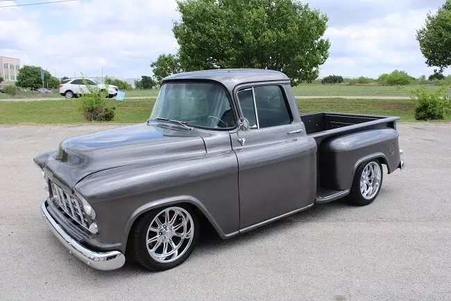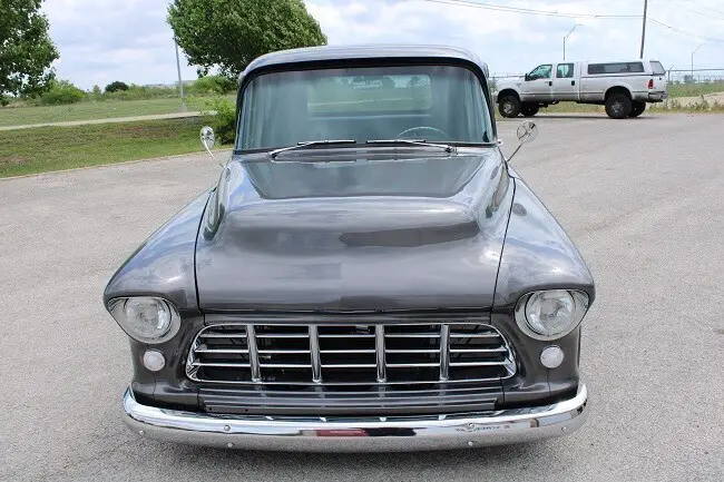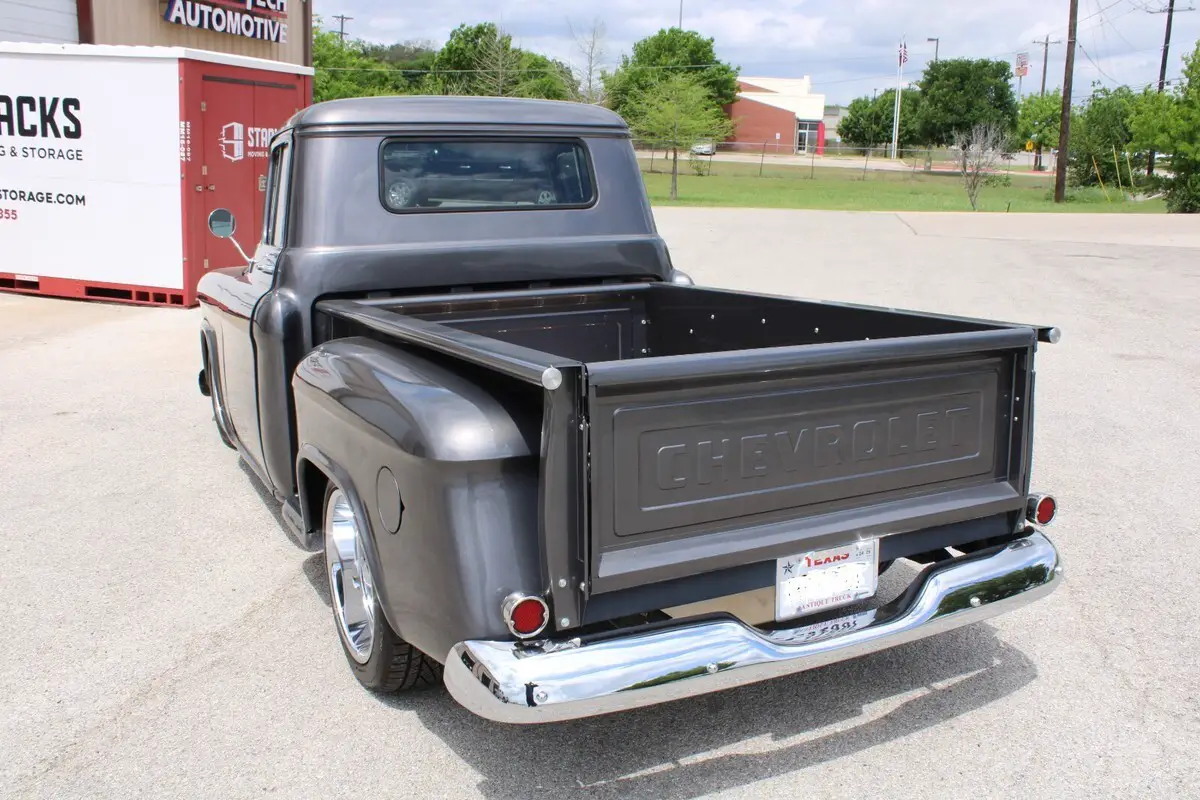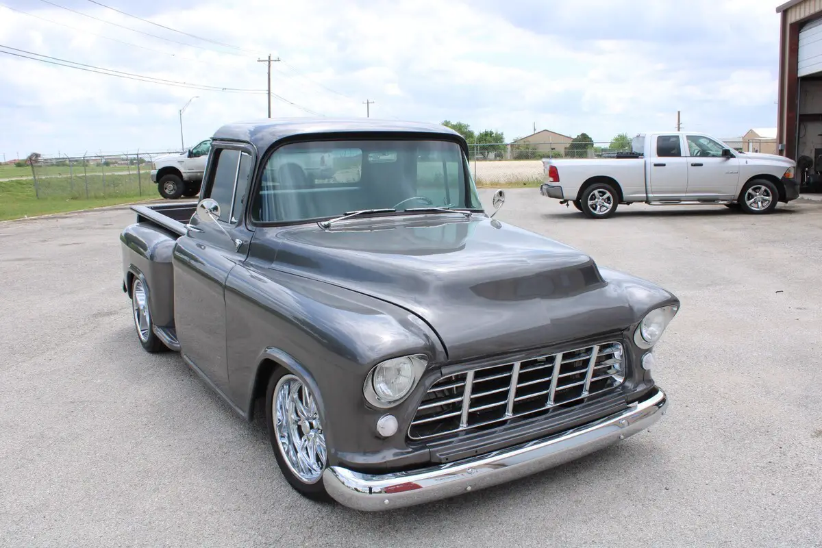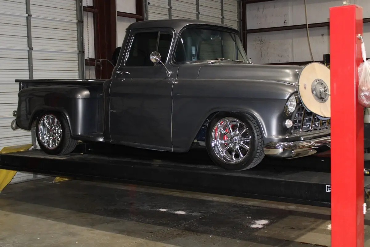 1955 CHEVY 1/2 TON SHORTBED RESTO MOD461 Miles since rebuild. Engine has 3 year or 100,000 mile GM Warranty.Complete frame off resto with Scott's Hotrods 'n Customs IFS with Power Steering, Rack and Pinion, Tubular Control Arms, Rebuildable Ball Joints and Aldan Adjustable Coilovers up front and a Scott's Hotrods 'n Customs 4 Link Rear Suspension with Aldan Adjustable Coilovers.Wilwood 4 Wheel Disc Brakes, Wilwood Tandem Master Cylinder with Vacuum Booster. All new Brake Lines and fittings.E-Stopp Electric Parking Brake System.GM 8.5 posi with Richmond 323 gears and Timken bearings, Strange or Moser Axles can't remember which.US Mag Rambler Series Wheels with Continental ExtremeContact DWS06 Plus 245/45-18 Fronts and 255/45-18 RearsStage 2 700 R4 4 Speed Overdrive built by Dana at ProBuilt Automatics with 2000 Stall Convertor, Scat 168-Tooth Flexplate, TCI Vacuum Controlled Lockup,Bowler Tru-Shift Throttle Correction System that corrects kickdown cable geometry.Strange 1350 Yokes and Spicer 1350 U-Joints.Engine is a 19433039 Chevrolet Performance SP350 / 385 HP Base Crate Engine and comes with factory 3 year 100,000 mile warranty, Sanderson Headers, Edelbrock AVS2 Series 650 CFM 4-Barrel Carburetor 1915, Carter Street Fuel Pump, March Pulley and Bracket System, March A/C Compressor, Mechman 225 Amp Alternator, Borgeson Power Steering Pump, Flaming River Billet Steering Joints and Shaft, Ididit Tilt Column, Billet Specialties Steering Wheel custom wrapped with same Admiral Blue UltraLeather as the Interior.Eddie Motorsports Billet Hood Hinges, Hidden Tailgate Latches, Brothers Trucks Chrome Hidden Tailgate Links, Front and Rear Bumpers are new and tucked in closer to body. Tailgate, Rear Bedsides, Bed Front, Bed Side Steps, Front Fenders and Hood are all new. All new Glass with 3M™ Automotive Window Film Crystalline Series on all glass, front, rear and sides. Outside door handles and mirrors all new, all lights are new with led rear tail lights and Daniel Stern Custom Front headlights with updated harness and relays for each 55w headlight.Truck is painted a PPG PPG Maserati Ghia Gray that was custom blended to get the color you see. Dash was smoothed, all holes in the cab were welded, Cab was glass blasted and all sheet metal was sprayed with PPG Epoxy after any rust was cut out. All Primers, Sealers, Paint and Clear are PPG top of the line product.Every inch of metal was then cleaned and prepped for Gtecniq Crystal Serum and EXOx5 Ceramic Coating. All Glass was coatedwith G5 Water Repellent Coating before and 3M film was applied. Wheels were coat with Gtechniq C5 Wheel Armor as all Chrome.19 gallon Rear under bed mounted Aluminum Fuel Tank with Holley Sender. Fuel Filler Neck and Hinged Door donated from a 1990 Chevy Truck Fabricated into the Left Rear Fender.Smokey Road Rod Shop Exotic Series Aluminum Bed with hidden bolts and Polished Stainless dividers.American Autowire Chassis 18 Circuit Wiring Harness, Classic Instruments Tach-Force Gauges, New Wiper Motor with Corvette Cable, Lithium Ion Battery installed behind the bench seat.Vintage Air heat and A/C, Sony DSX-M80 Audiofile BT Receiver, Focal ACS 690 6x9 3way Rear Spkrs, Focal ISU 165S Front Component Set with Tweeters, Focal 10" Slim Sub Under Driverside Bench seat, Amp installed behind seat. Hidden AntennaBench Seat from 88 chevy truck got new foam and was covered in Admiral Blue Ultraleather. Custom Door Panels, Headliner, Custom Center Console and removable Seat Console/Armrest also covered in Admiral Blue Ultraleather.I may be leaving some things out because there was so much done on this truck. I have a large binder with all the paperwork for this truck.Some issues have been introduced into my life which is forcing me to sell this truck. My loss is your gain. I just want it to go to someone who can appreciate a nice ride.