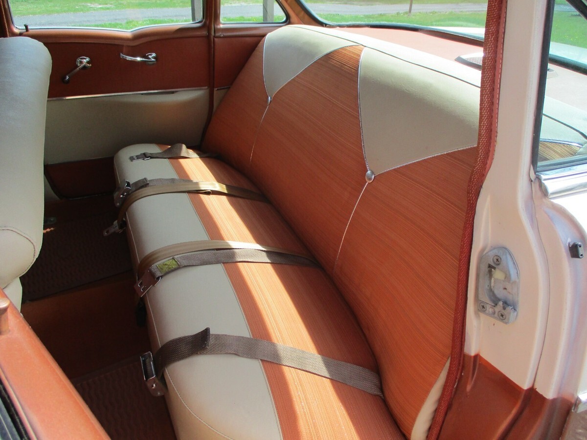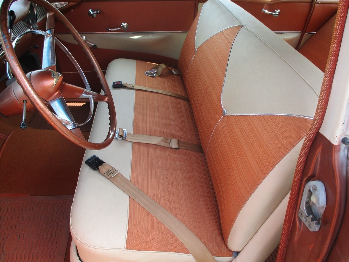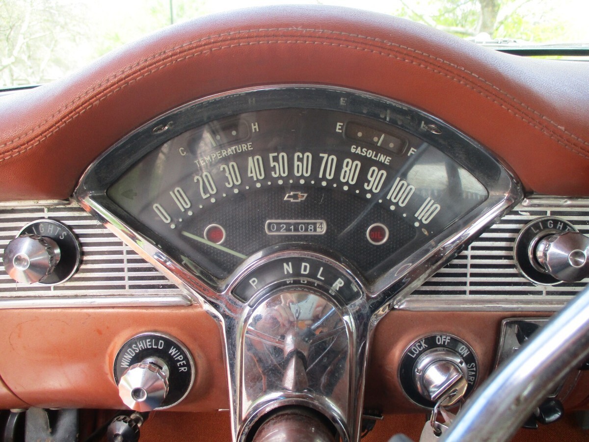 Up for sale is a nice little 1956 Chevy Bel Air that runs and drives very nice. The speedo is showing 102109 Original miles on it. The engine is its original 265 Powerpack 4bbl from the factory and it runs very nice. The original Powerglide transmission has had a rebuild and all brakes are new with new wheel cylinders, new brake hoses and some new brake lines. (it runs and drives well). We couldn't find any rust in the car, but it looks like it has had a minor repair on the front end and the front end has been repainted and doesn't quite match the rest of the car. It also has had a total repaint years ago. It also has a Coupal of very small dings; the worst is on the trunk lid next to the where the license plate goes. (please look at all pictures closely) This car also came from the factory with fender skirts that do come with the car and the original owners' manuals, jack with lug wrench. Also, a car cover dose come with the car. All glass is good except the passenger door window, and it has a crack, but windows roll up and down nicely. The interior has been replaced with new throughout, in its original look even the headliner is new, and it has a padded dash pad. Seatbelts are also in place front and rear. Everything seems to work even the original radio, but the clock and gearshift pointer are not working at this time. The gearshift pointer shows up when in reverse, but I couldn't see it in the other poisons. (very nice Interior and looks new) I'm listing this nice little 56 Chevy for my friend and I will take all questions to him. This is not a show car; it is a nice driver quality car. Buyer is responsible for shipping and all shipping costs. We will help with loading on our end and in anyway we can or just come drive it home. For your questions, please call Bill 208-750-0000.