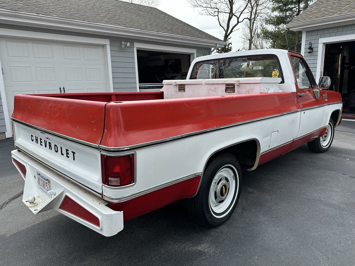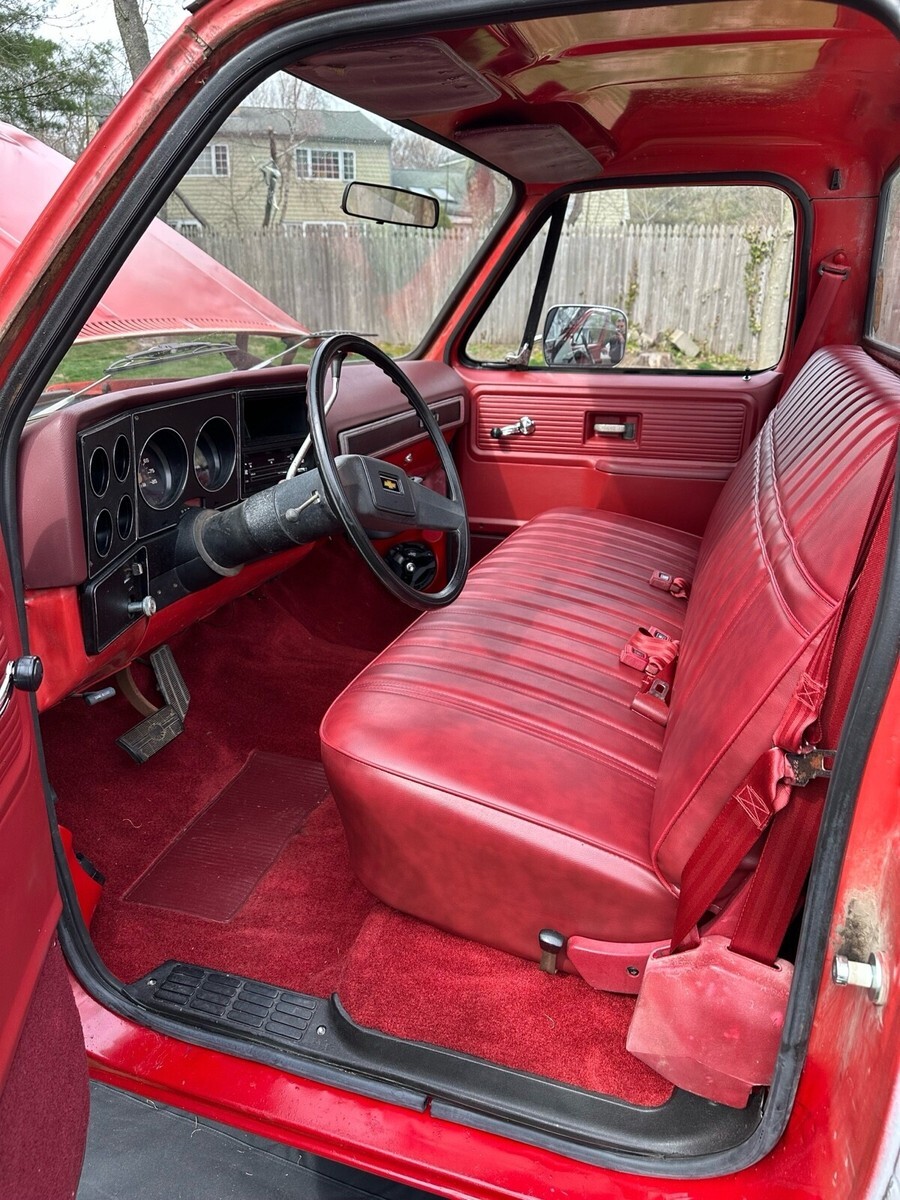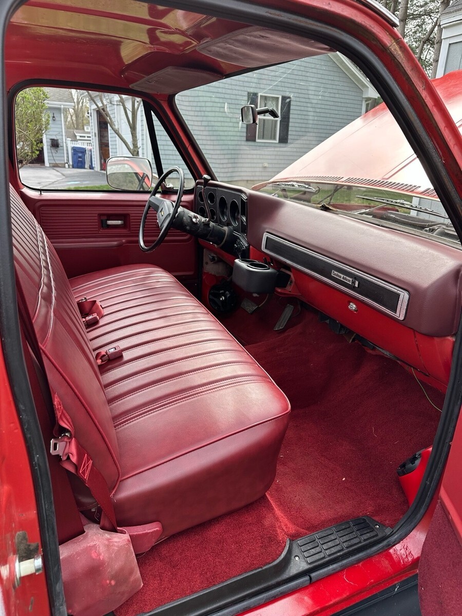 1980 Chevy c10 single headlight truck. Truck came out of Wichita Kansas old farm truck. Still maintains its patina. White was touched up but most of the red is believed to be original. All new interior- dash pad, gauge cover, seat foam and cover, carpet kit, new Bluetooth radio and speakers. Factory seat belts were sent out and redone at a professional seatbelt rewebbing company. 305 v8 runs well, automatic transmission shifts well. Period correct tool box in the 8’ bed. Old heavy steel tool box. Brand new white wall tires with factory wheels and dog dish Chevrolet caps. 2wd. Great old farm truck gets lots of looks. Bottom has surface rust- floors were fixed with LMC truck replacements, solid frame truck. Priced reasonably - this isn’t Chip Foose resto mod and not priced like one either. Just an honest old work truck. Clean and presentable.