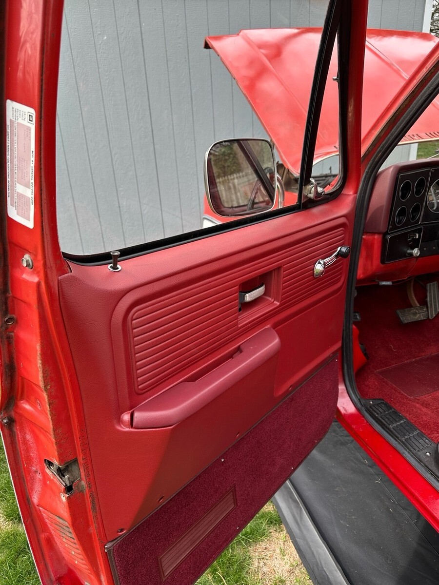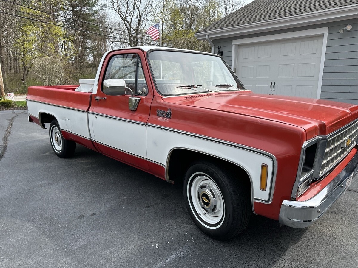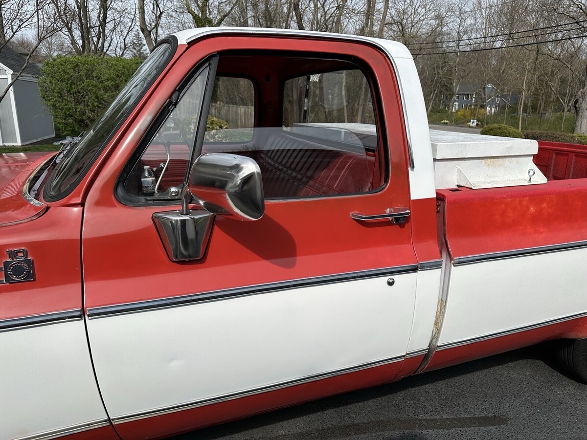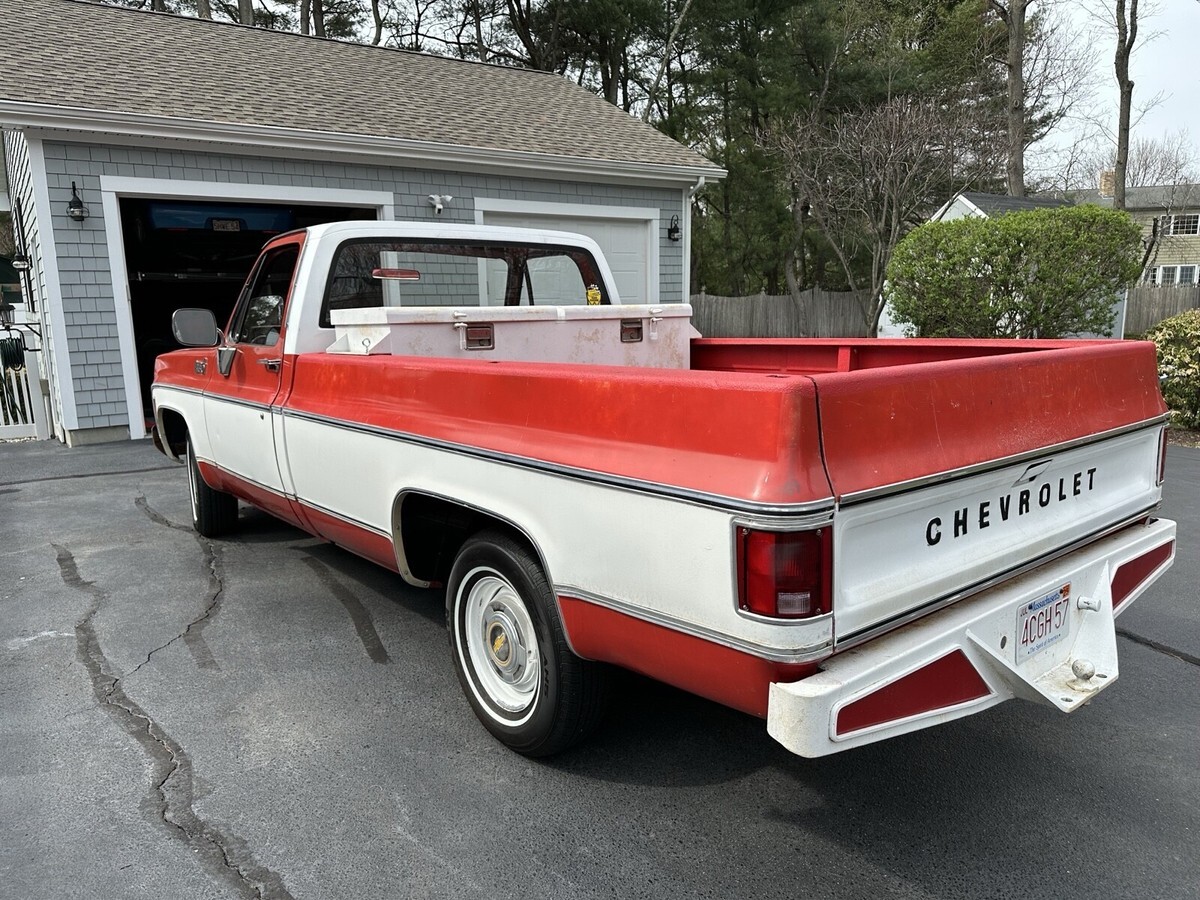 1980 Chevy c10 single headlight truck. Truck came out of Wichita Kansas old farm truck. Still maintains its patina. White was touched up but most of the red is believed to be original. All new interior- dash pad, gauge cover, seat foam and cover, carpet kit, new Bluetooth radio and speakers. Factory seat belts were sent out and redone at a professional seatbelt rewebbing company. 305 v8 runs well, automatic transmission shifts well. Period correct tool box in the 8’ bed. Old heavy steel tool box. Brand new white wall tires with factory wheels and dog dish Chevrolet caps. 2wd. Great old farm truck gets lots of looks. Bottom has surface rust- floors were fixed with LMC truck replacements, solid frame truck. Priced reasonably - this isn’t Chip Foose resto mod and not priced like one either. Just an honest old work truck. Clean and presentable.