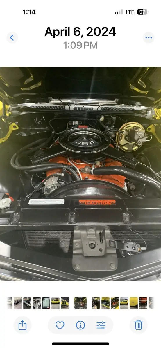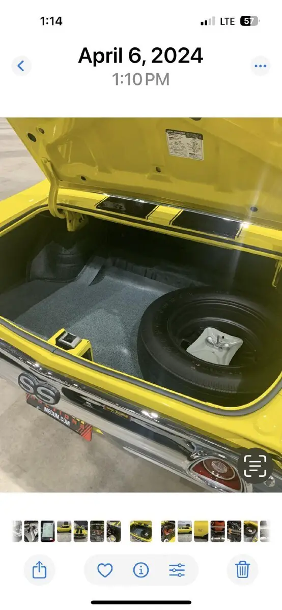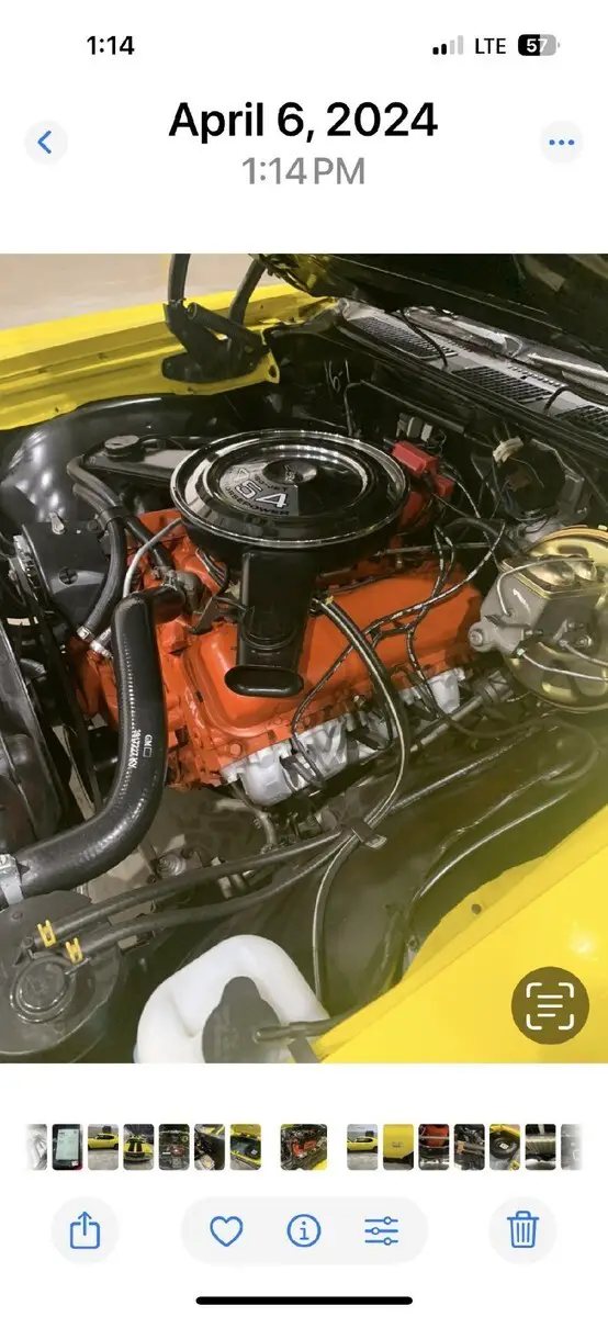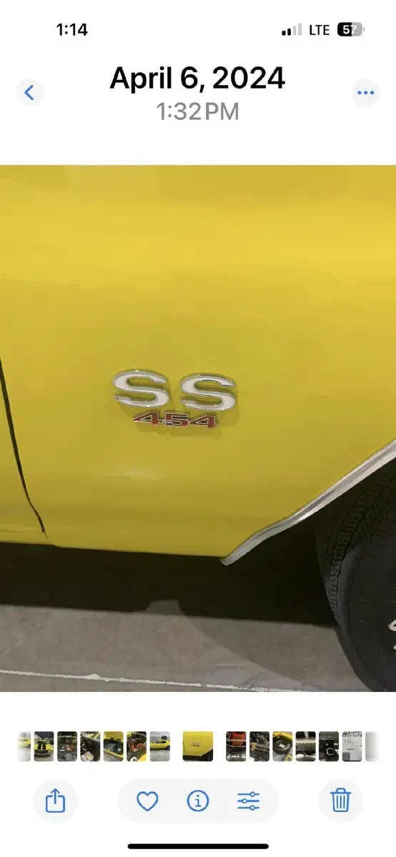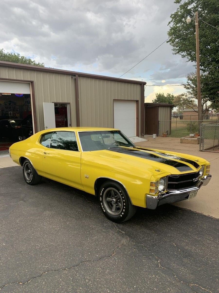 1971 chevelle SS has numbers matching 454/365 HP LS5 Muncie m22 4speed 12 bolt rearend with 3:08 gearsBlack interior with bench seat rare rear window defogger new Led dome lighthas front power disc brakes rear drum brakes finished in original sunflower yellow color with black stripes cowl hoodBumpers are rechromed & are excellent chromed drivers side mirrorargent original style wheels with chrome trim rings firestone wide oval white letter tires