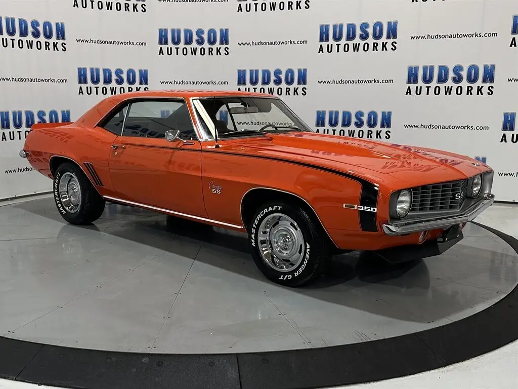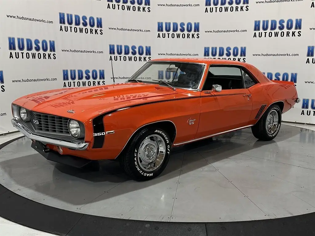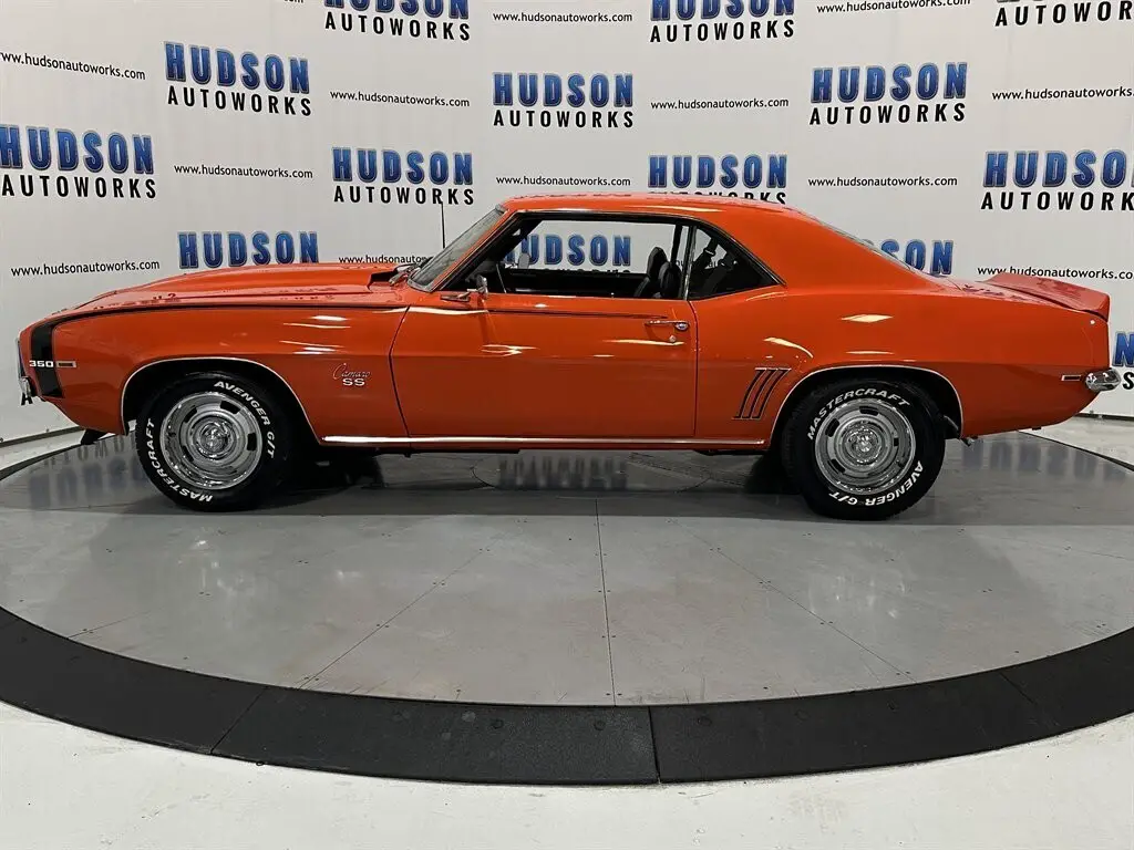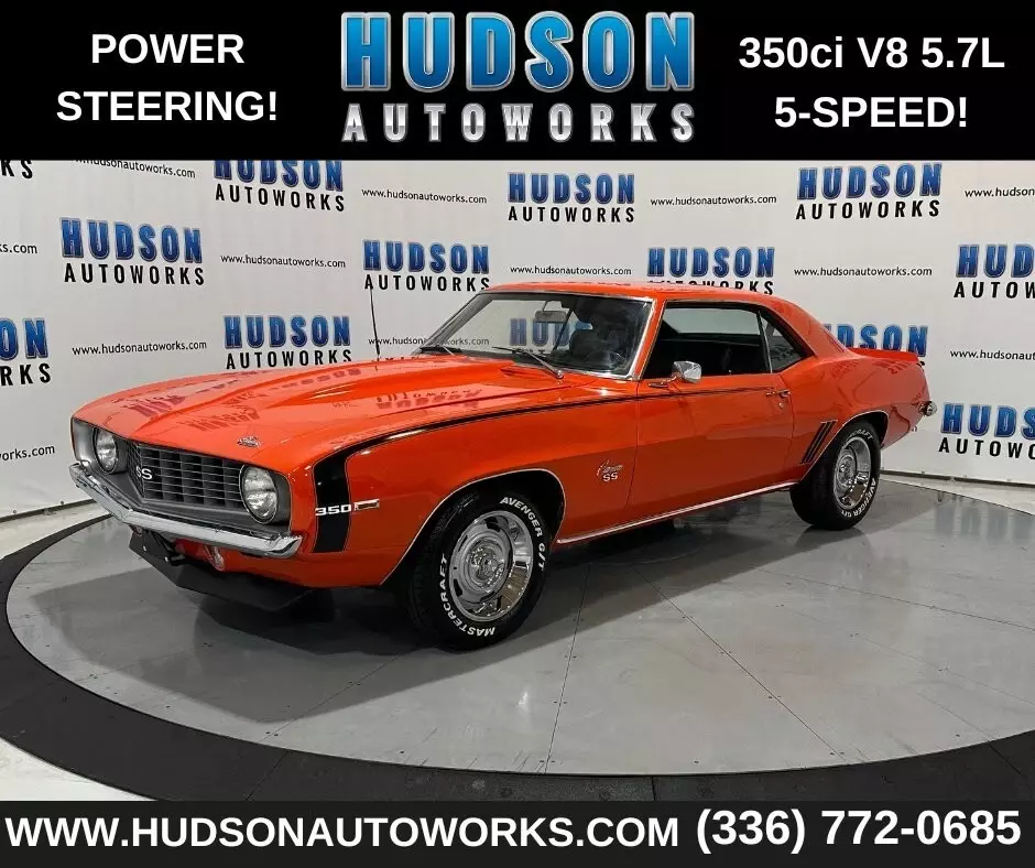 1969 Chevrolet Camaro - Orange Exterior - Black Vinyl Bucket Seat Interior - 350ci V8 5.7L - BorgWarner T-5 5-Speed Manual Transmission - 10 Bolt Rear End - Power Steering - Manual Drum Brakes - Alpine Stereo - Sunpro Auxilary Gauges - 255/60/15 - Rear Tires - 215/65/15 - Front TiresFINANCING & SHIPPING AVAILABLE!!!Disclaimer: Hudson Autoworks takes great pride in the process of showcasing our classic and collector automobiles. Please keep in mind that these vehicles are pre-owned and do have their own imperfections. With that being said, it is encouraged that you view and inspect our vehicles here at our showroom, or schedule a pre-purchase inspection with your choice of mechanic or inspector.