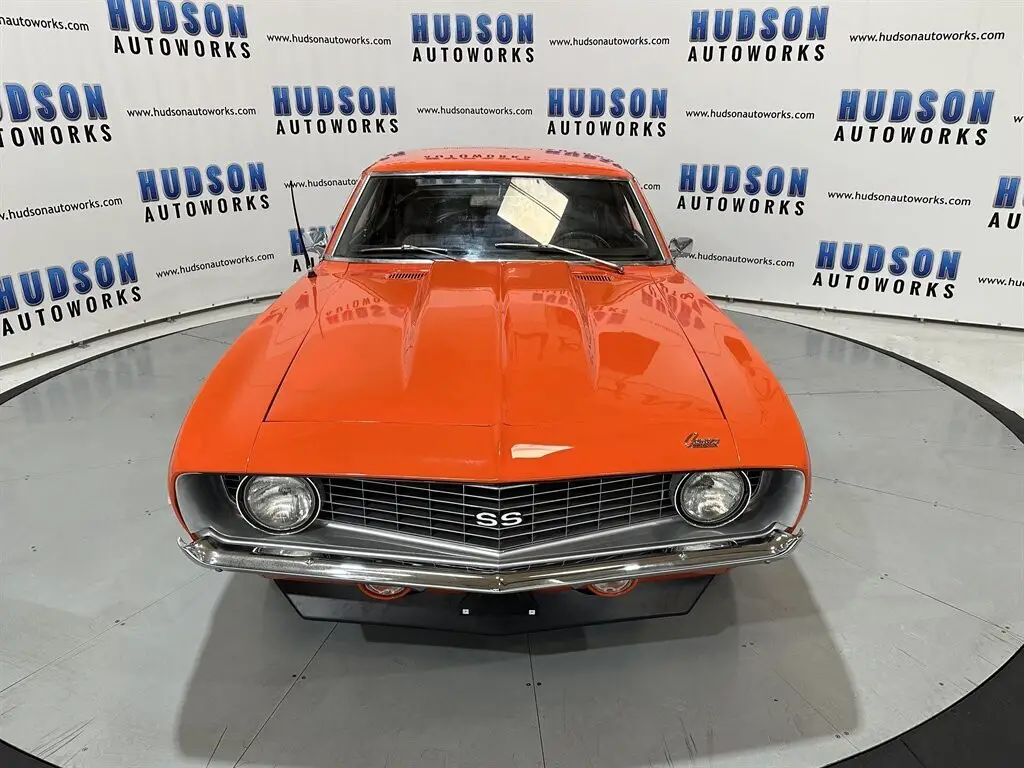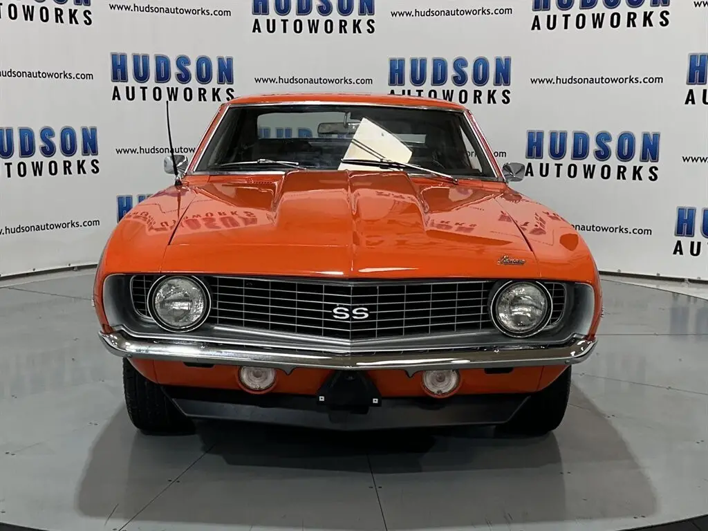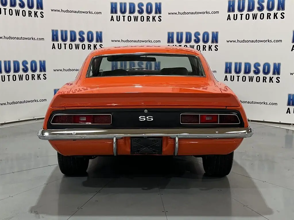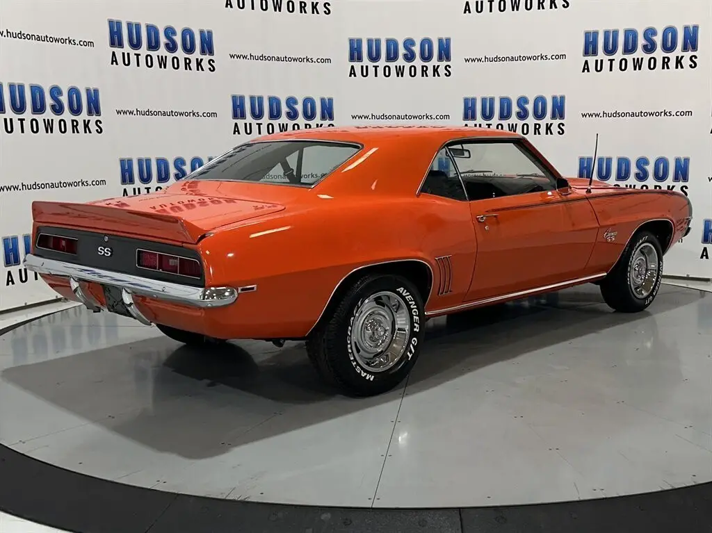 1969 Chevrolet Camaro - Orange Exterior - Black Vinyl Bucket Seat Interior - 350ci V8 5.7L - BorgWarner T-5 5-Speed Manual Transmission - 10 Bolt Rear End - Power Steering - Manual Drum Brakes - Alpine Stereo - Sunpro Auxilary Gauges - 255/60/15 - Rear Tires - 215/65/15 - Front TiresFINANCING & SHIPPING AVAILABLE!!!Disclaimer: Hudson Autoworks takes great pride in the process of showcasing our classic and collector automobiles. Please keep in mind that these vehicles are pre-owned and do have their own imperfections. With that being said, it is encouraged that you view and inspect our vehicles here at our showroom, or schedule a pre-purchase inspection with your choice of mechanic or inspector.