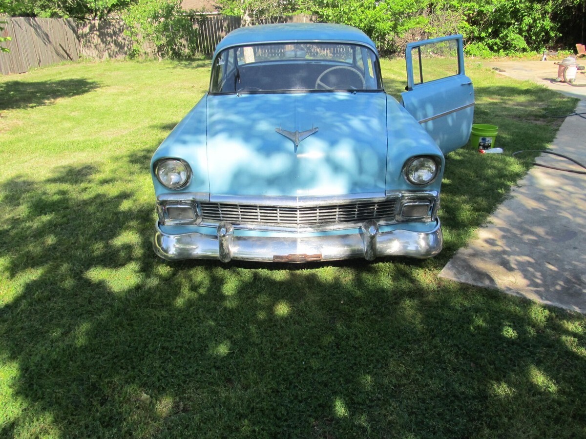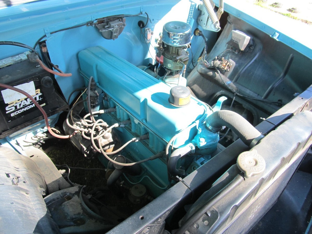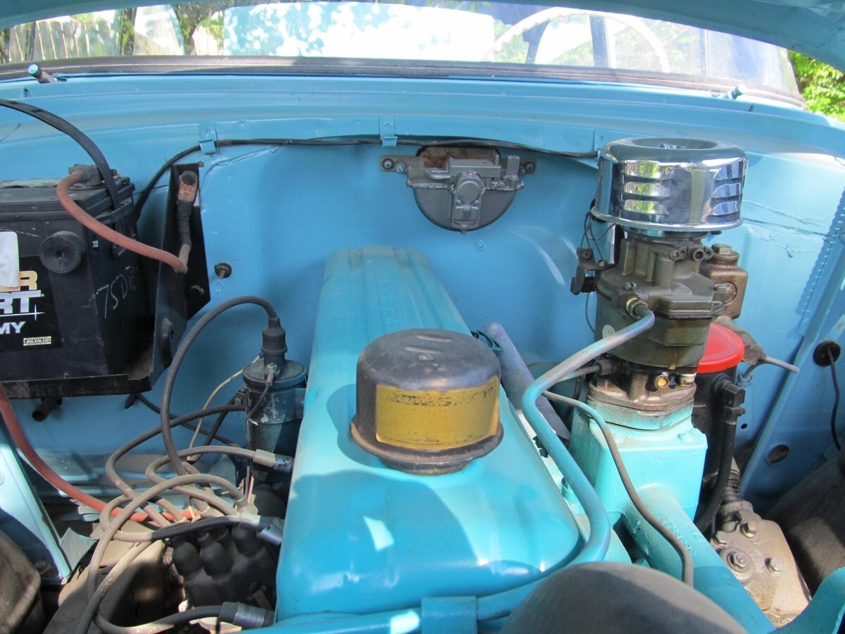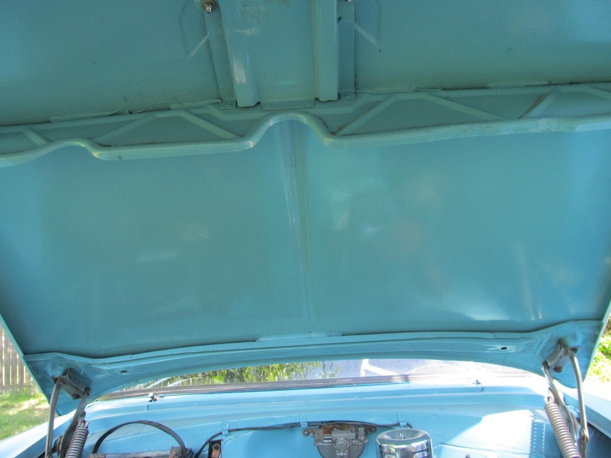 235 SIX (NO LEAKS) 3 SPEED, NEW BRAKES AND NEW TIRES, TAKEN OFF FRAME, FRAME PAINTED WITH NEW BODY MOUNTS, SHOT IN SATIN THE ORIGINAL BLUE, RUNS GOOD. STILL HAS THE ORIGINAL STEEL UPRIGHTS AND PLATFORM AND REAR SEAT DIVIDER FOR TRUNK . I HAVE THE REAR WINDOW AND FRONT STAINLESS AND NEW INSTALL KIT FOR FRONT WINDOW. NEW FRONT AND REAR WINDOW RUBBER AND NEW FRONT WINDSHIELD ALSO NEW CLIPS WERE INSTALLED ON REAR WINDOW. HAVE A EXTRA WHEEL WELL TO PATCH THE BOTTOM OF THE ORIGINAL ONE. THIS IS A VERY SOLID AND RUST FREE CAR. REDID A FEW MINOR PATCHES. HARD WORK DONE AND HAPPY BIDDING. THINNING OUT THE HERD.