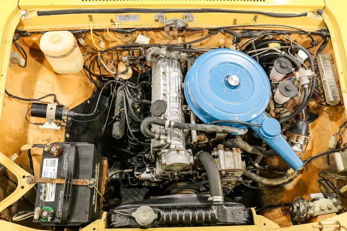 Under the hood, the factory 1.8-liter 4-cylinder still hums like it did in '75, paired with a 4-speed manual that makes this lightweight pickup genuinely fun to row through the gears. It's simple, efficient, and built with the kind of honest engineering you just don't find anymore. The power brakes and 4-wheel drum setup are factory stock and deliver a driving experience that's pure analog and totally engaging.