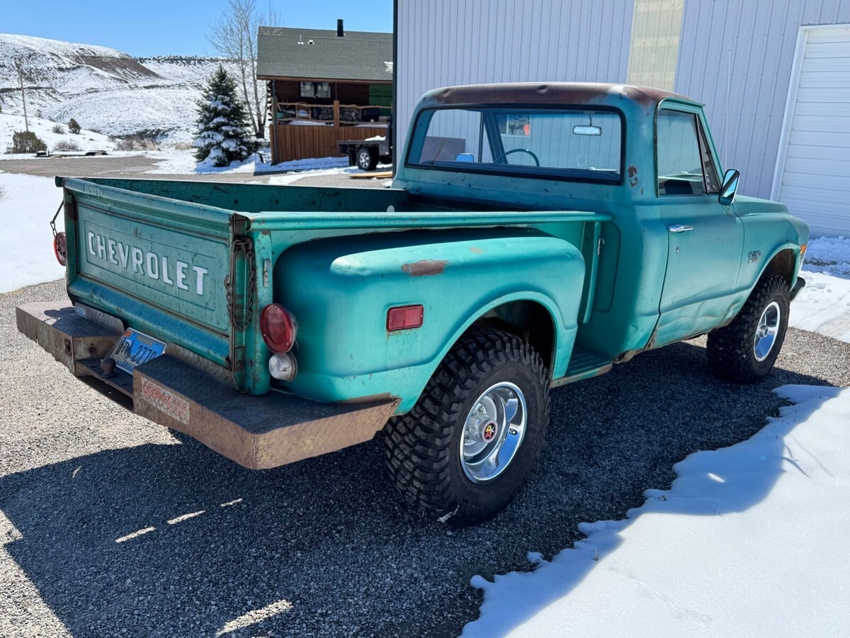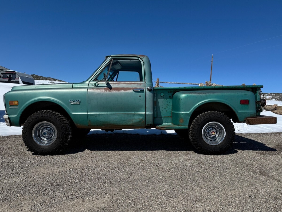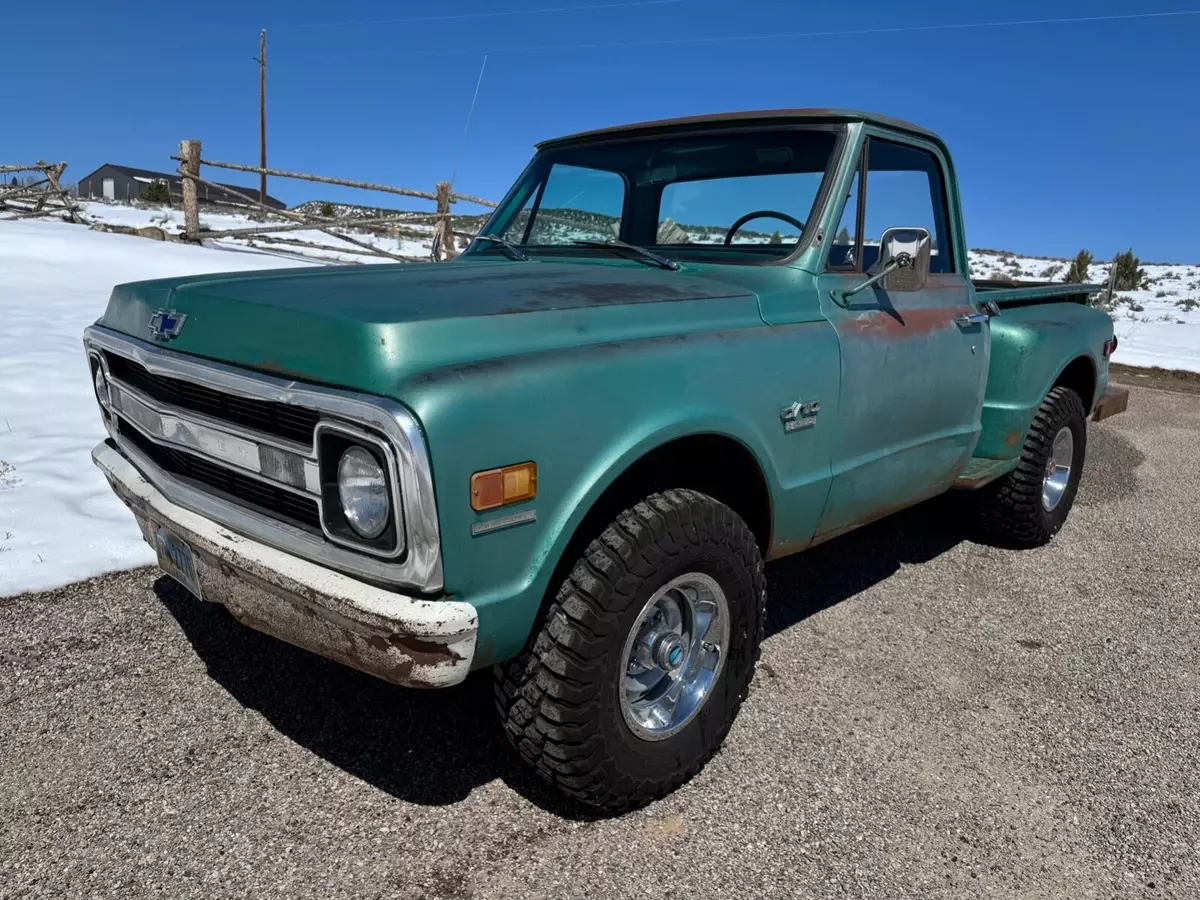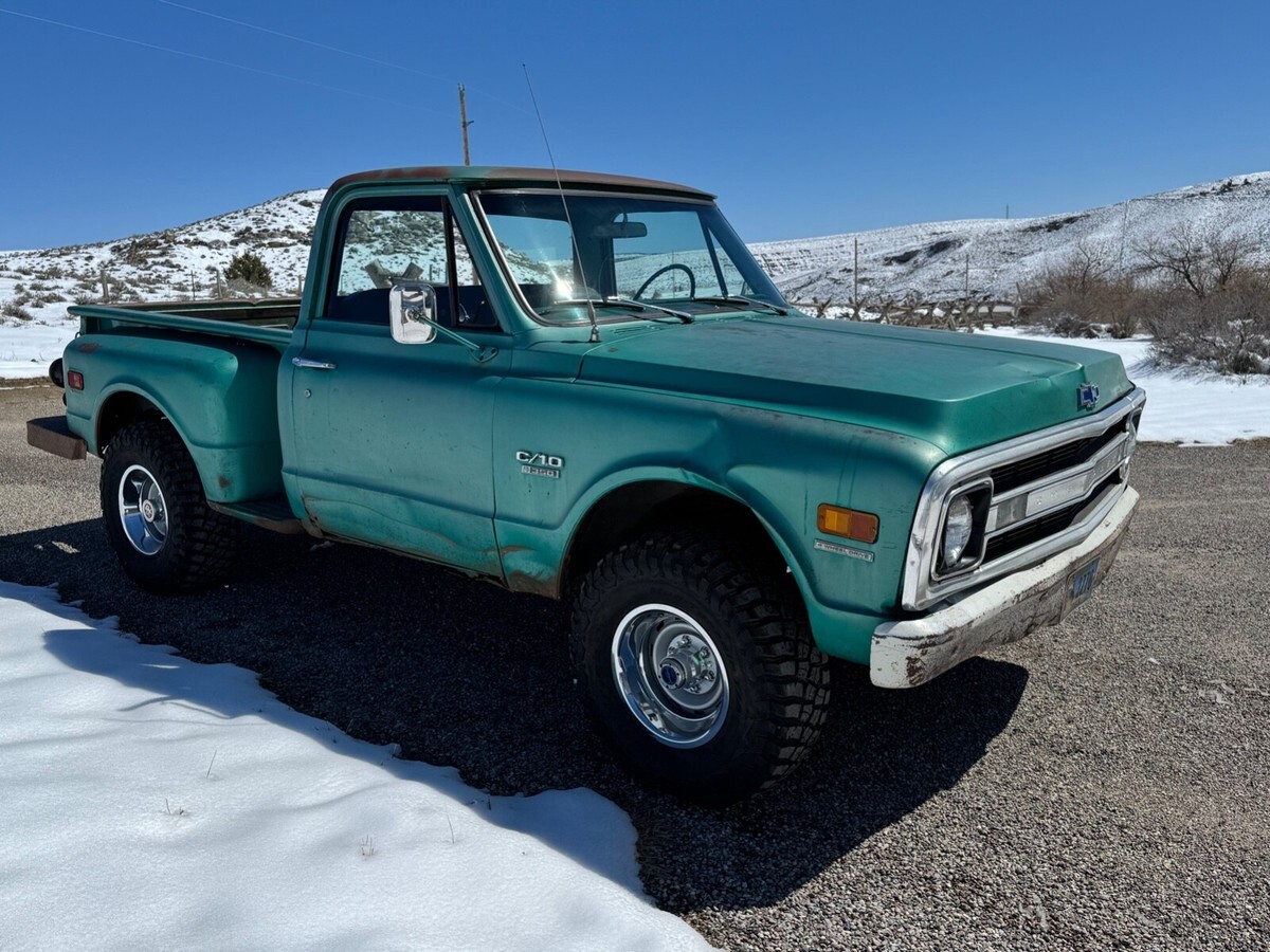 Original paint 1970 SWB K10 step side truck. One of 1629 produced in 1970. All original except the seat cover, wheels and tires and exhaust. Runs drives and stops. Is driven regularly to town and back which is 25 miles round trip. 350, 4 speed. This truck was a work vehicle on a mountain property in Vail Colorado. New BF Goodrich 32x11.50 KM3 tires. Restored rally wheels. Has rust in the cab corners, rockers, passenger door corner and floor pans. Please feel free to ask any questions.