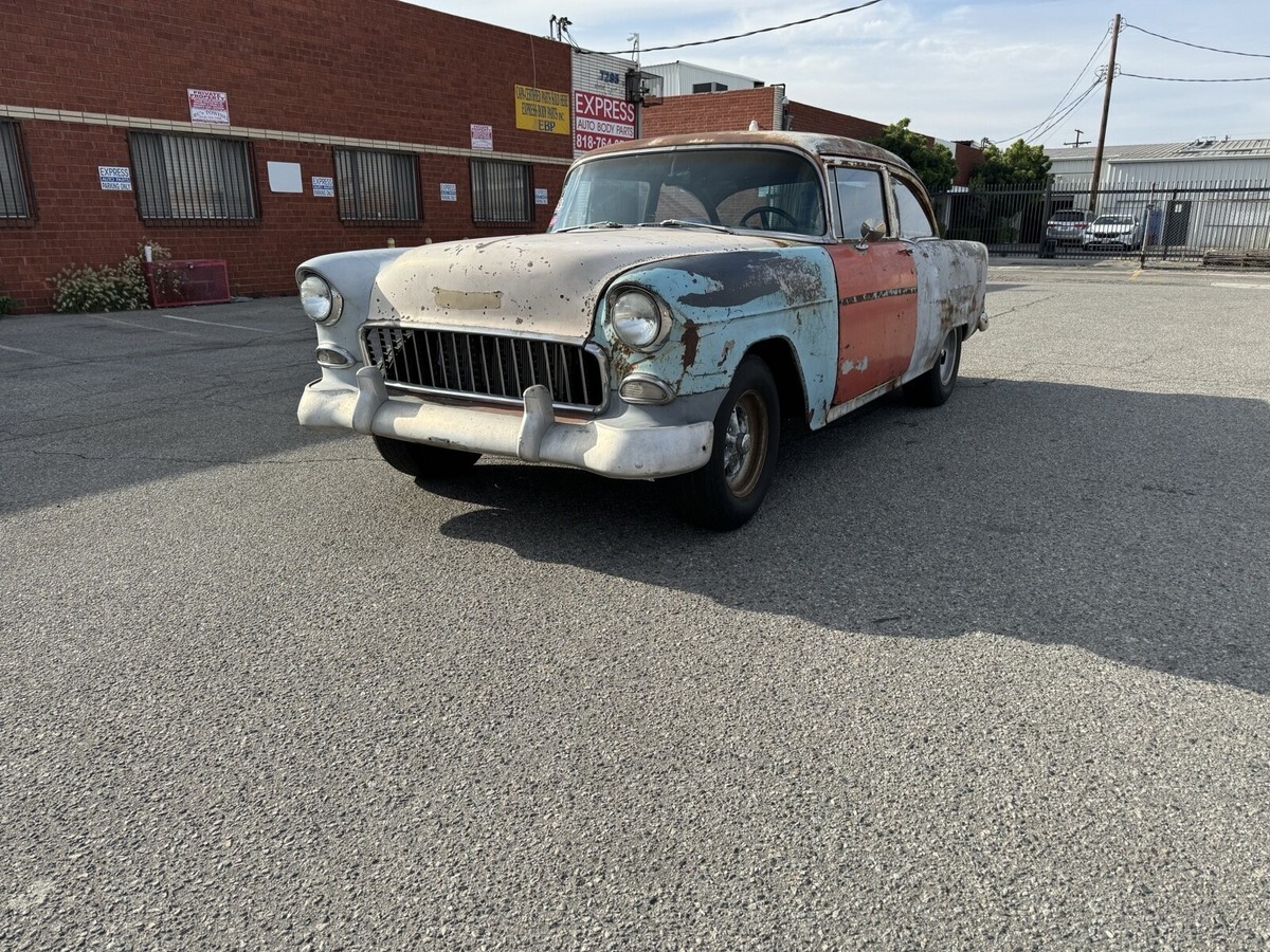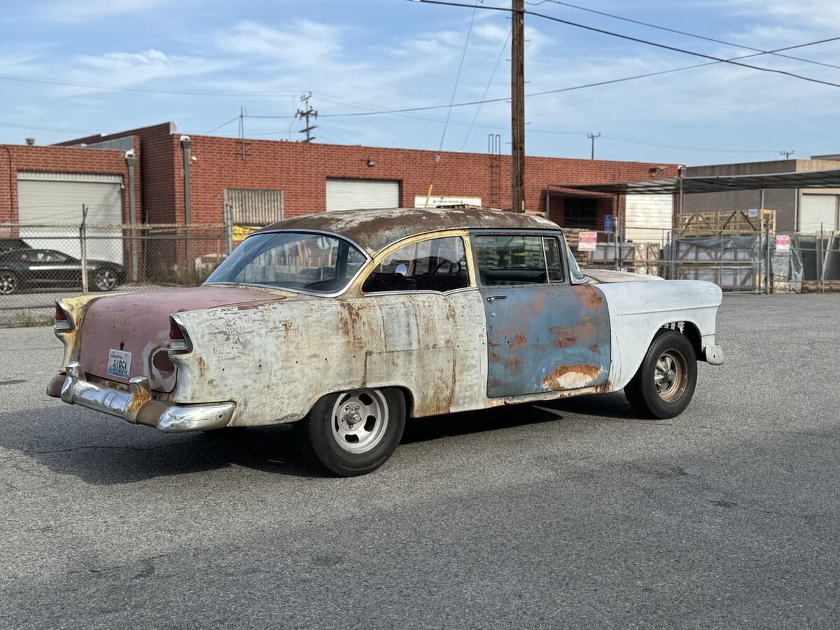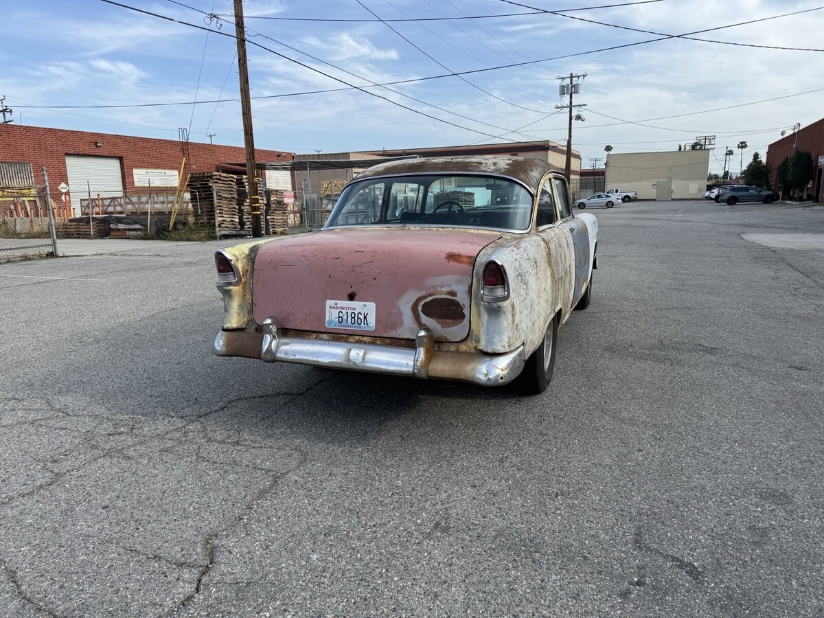 Here’s a current California titled/registrer till march of next year, daily driver, real 2 door post Chevy for under 20k. I really wanted to keep this one but selling a few from the stock to buy another car. Body was pulled off and all body mounts were replaced. Brakes complete rebuild/replaced. Fuel system completely replace from tank to pump. All shocks new. Rear-end gone through with 3.70 gears/posi. Built th400 trans with sidewinder shifter. Tilt column. Vintage sun tac and Stewart Warner gauges. 1971 date code 350 with 3973481 heads. Aluminum radiator. Exhaust all new from headers to mufflers. Lights, blinkers, front windows, and wipers all work. Comfy bucket seats. Car was setup kinda like an old street racer when I got it having no front bumper or rear seat. Starts up fast, shifts great, stays cool, brakes nice, and great oil pressure. As you can see the car isn’t immaculate, having panels all about but at least it’s oem. Has some rust here and there. Windshield has some cracking/hole where the sticker are but stickers cover it up. That being said everyone always said they love it as is although all black would be cool. I drive it daily but #2 cylinder burns a little oil and will foul if you drive it hard, but it does get up and go pretty nice. Drive it normal and it rides just fine. Comes with another pair of slotted mag rims and a few other extras. Was halfway on converting to patina’d original cragars. Here’s your chance to own a cheap 55 driver for the summer. Payment and pickup can be discussed at the end of auction. Low feedback spam buyers steer clear.