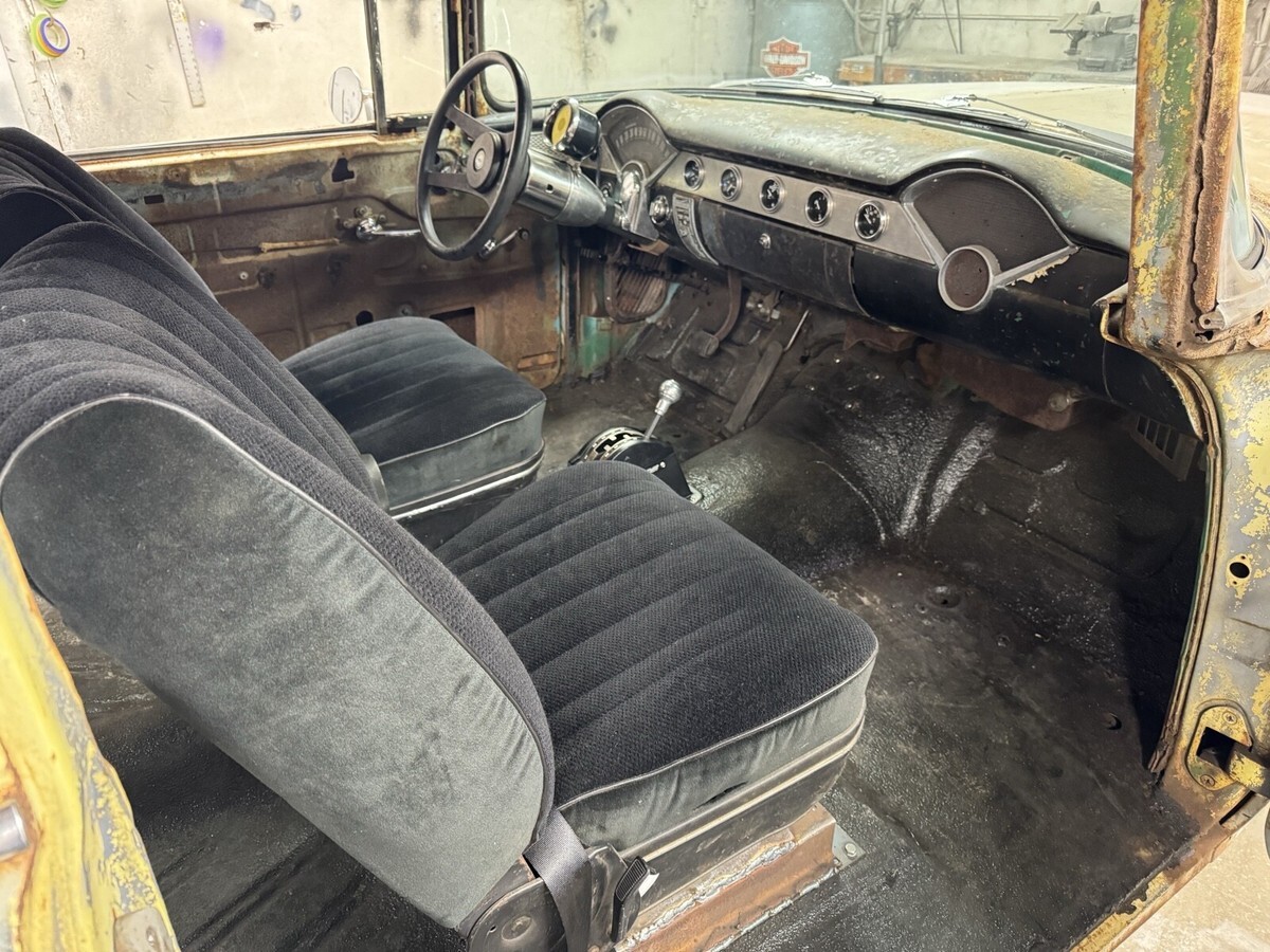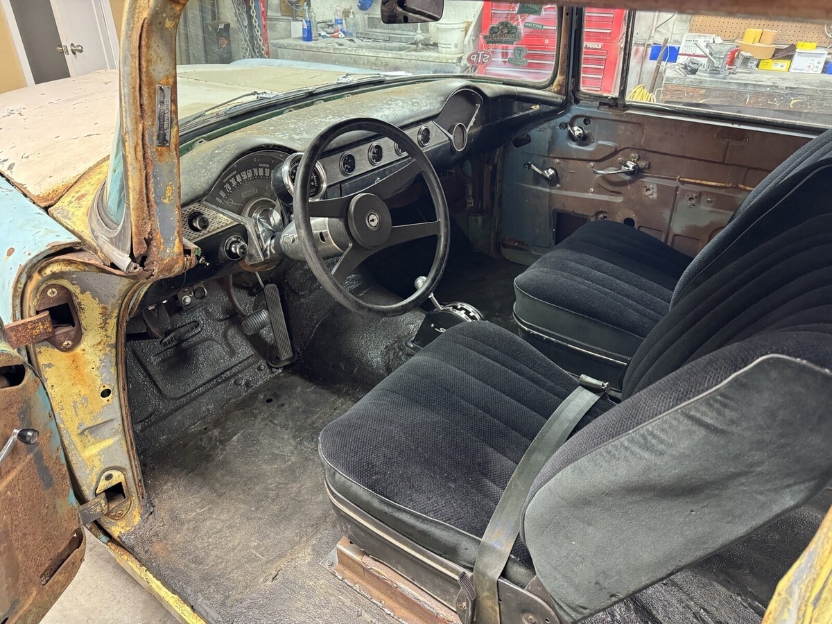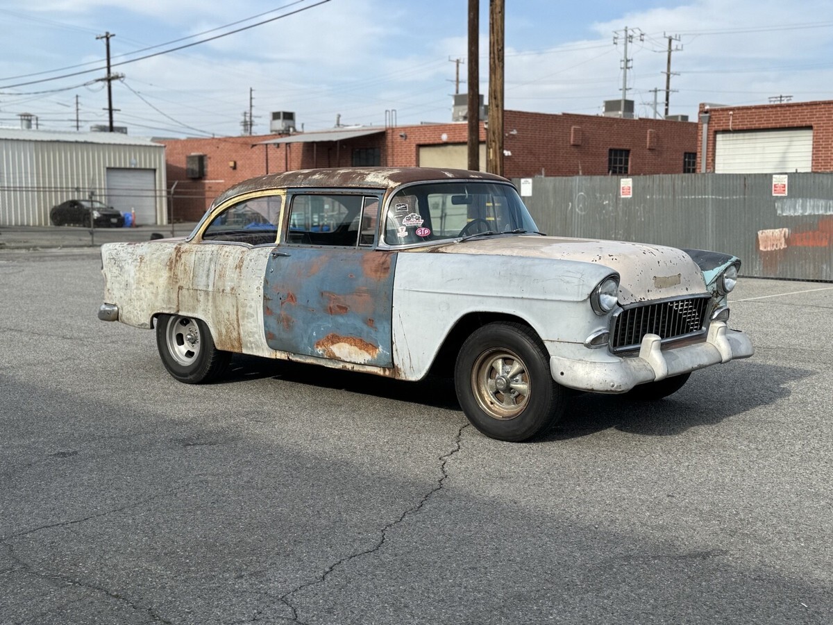 Here’s a current California titled/registrer till march of next year, daily driver, real 2 door post Chevy for under 20k. I really wanted to keep this one but selling a few from the stock to buy another car. Body was pulled off and all body mounts were replaced. Brakes complete rebuild/replaced. Fuel system completely replace from tank to pump. All shocks new. Rear-end gone through with 3.70 gears/posi. Built th400 trans with sidewinder shifter. Tilt column. Vintage sun tac and Stewart Warner gauges. 1971 date code 350 with 3973481 heads. Aluminum radiator. Exhaust all new from headers to mufflers. Lights, blinkers, front windows, and wipers all work. Comfy bucket seats. Car was setup kinda like an old street racer when I got it having no front bumper or rear seat. Starts up fast, shifts great, stays cool, brakes nice, and great oil pressure. As you can see the car isn’t immaculate, having panels all about but at least it’s oem. Has some rust here and there. Windshield has some cracking/hole where the sticker are but stickers cover it up. That being said everyone always said they love it as is although all black would be cool. I drive it daily but #2 cylinder burns a little oil and will foul if you drive it hard, but it does get up and go pretty nice. Drive it normal and it rides just fine. Comes with another pair of slotted mag rims and a few other extras. Was halfway on converting to patina’d original cragars. Here’s your chance to own a cheap 55 driver for the summer. Payment and pickup can be discussed at the end of auction. Low feedback spam buyers steer clear.