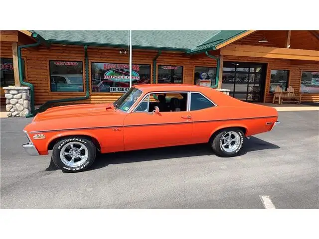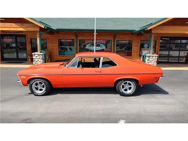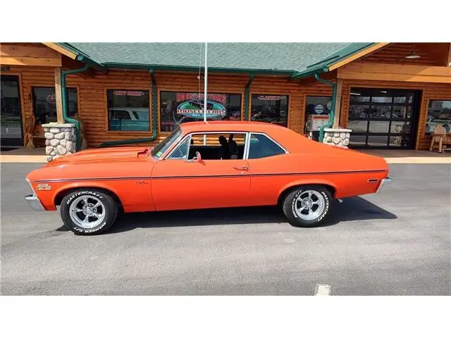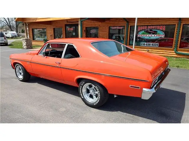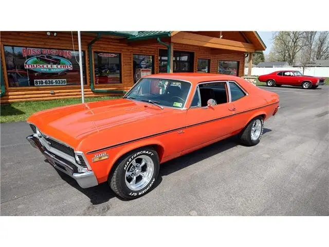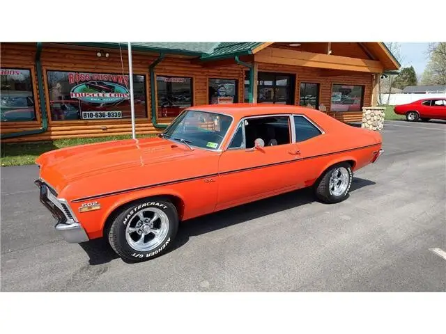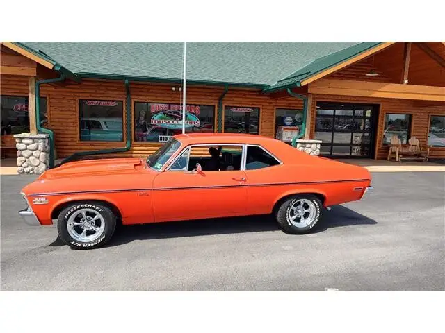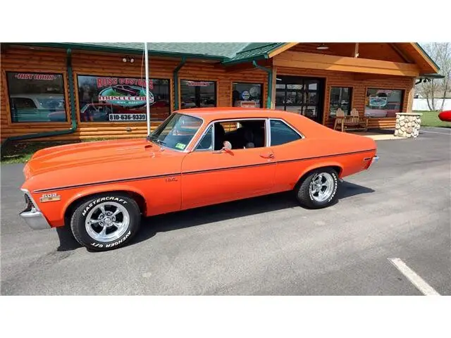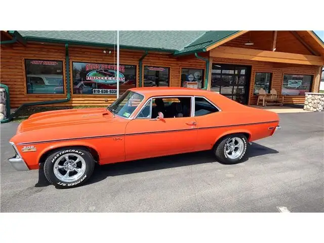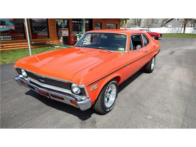 Vehicle Original VIN : 1X27H2L138This is a very nice clean 72 Nova that has had a recent build, done in very slick Hugger Orange, basecoat clearcoat, sanded and wheeled smooth, steel cowl hood, at time of build had new tinted windshield; all other glass is factory softray tint in excellent condition, all original window stainless trim in excellent condition, new weather stripping and window felts, new door handles, new correct bowtie side view mirrors, original hood molding and fender eyebrow moldings in excellent condition, grill and headlight bezels are also original in excellent condition, new front bumper, new emblems, side marker lights are original in excellent condition, original body side moldings in very good condition, taillight housings and lens are new, new SS tail panel molding, re-chromed rear bumper.Black interior, original dash and dash bezels in very good condition, original instrument cluster showing 58,720 miles, nicely outfitted with Vintage ac and heat controls, AM/FM/CD stereo with front and rear speakers, trio of gauges nicely mounted under dash; also has tach with shift light, Gear Vendors overdrive control panel, tilt steering, original SS steering wheel, new headliner, visors, sail panels and package shelf, original front and rear door panels in excellent condition, rear seat has been reupholstered, front seats have been updated with a pair of pro-touring seats; which recline and have large bolsters for comfort, front and rear seat belts, nicely outfitted with B&M Performance shifter, new carpet, floor mats.Under the hood we have a GM Crate 502, 502 horse, hydraulic roller cam, aluminum cylinder heads, bowtie intake, Holley dual feed 4 barrel carb with electric choke, MSD ignition system, factory aluminum valve covers, chrome breather, has been updated with 100 amp 1 wire alternator, high flow aluminum water pump, aluminum pulleys, heavy duty aluminum radiator with thermostatic controlled electric fan, polished ac compressor, power steering, power front disc brakes, set of Hooker ceramic coated headers into 2 1/2 inch dual Flowmaster exhaust out the back, this strong running 502 is backed up with a 400 turbo trans; also have Gear Vendors overdrive unit, set of subframe connectors, suspension has been gone through, 10 bolt posi rear with 342 gear, rear air shocks and multi-leaf springs.Rides on a set of American Racing Torq Thrust wheels 15x7 up front and 15x8 out back.This "Cool" Nova is ready to show, cruise and enjoy.