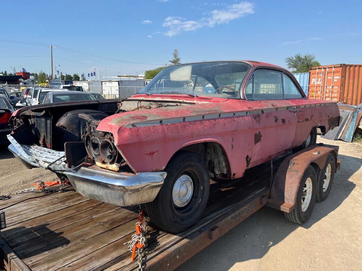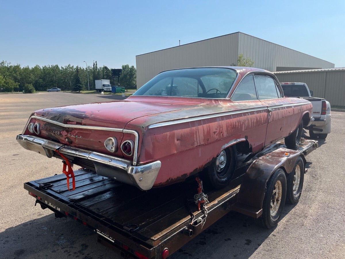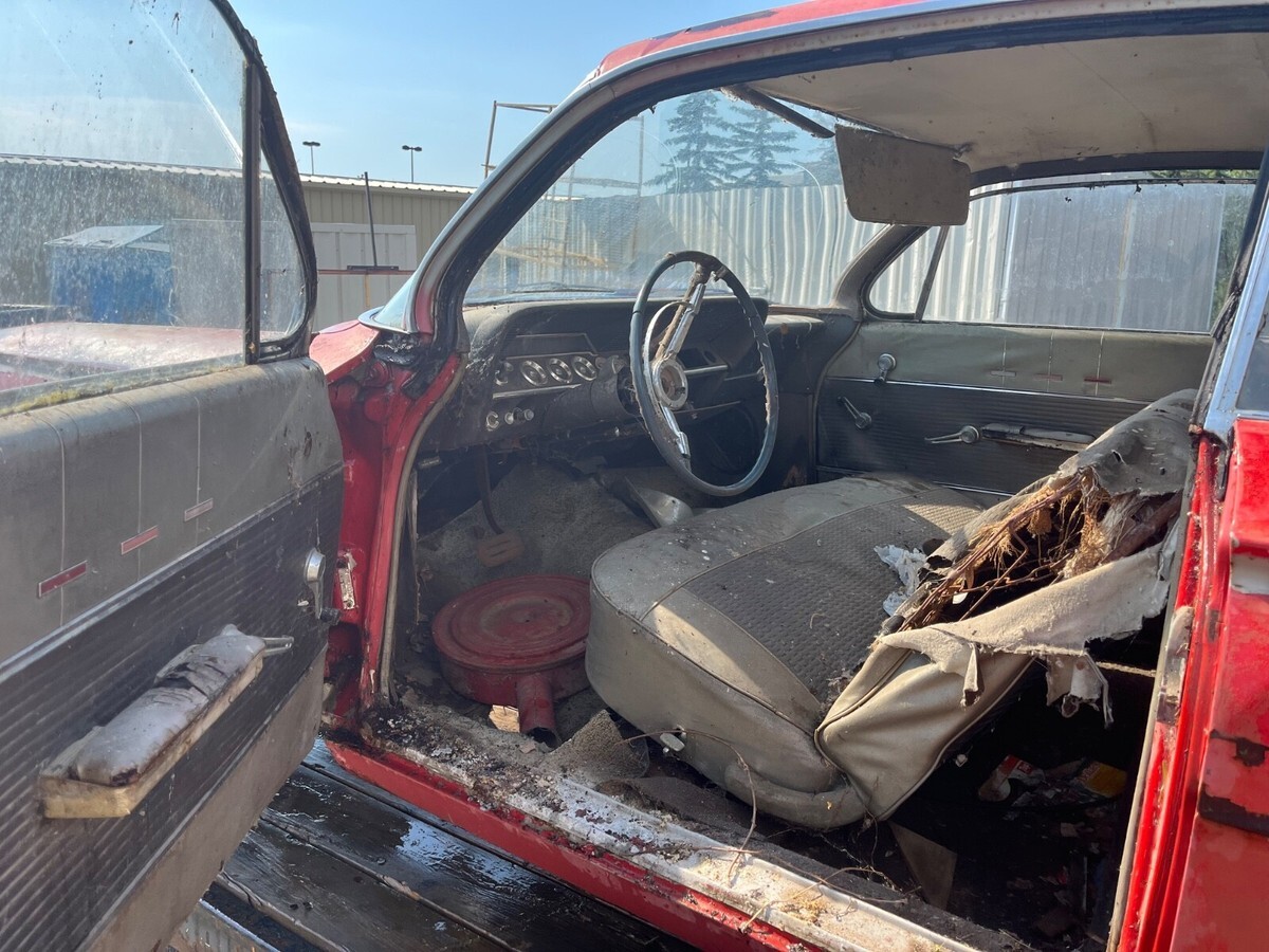 Very rare, real deal 62 belair bubble top. One of 710 v8 cars built in Canada, comes with documentation. No engine or transmission. Was originally 283 auto, Autumn Gold with fawn interior.Extremely rusty. Frame, floors, trunk, rockers and almost every body panel is junk. The interior is complete, all of the hard to find bubble top parts are intact, with exception of the drivers side body mouldings. I have some 4 door ones that could be included. Not pictured, a hood, grille and headlight bezels are also included.VIN and trim tags are still in place.Located in Edmonton AB CanadaBuyer pays shipping and brokerage.$500 non refundable deposit due immediately at auction end, via PayPal, Zelle or wire transfer.