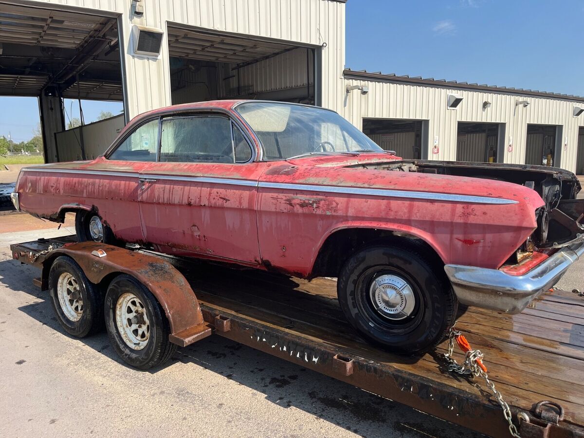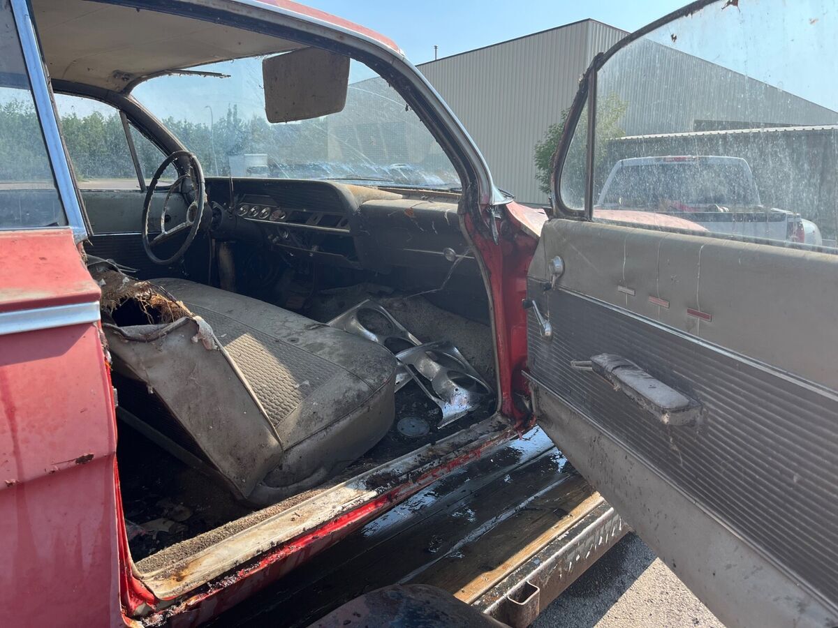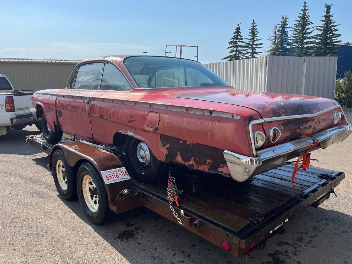 Very rare, real deal 62 belair bubble top. One of 710 v8 cars built in Canada, comes with documentation. No engine or transmission. Was originally 283 auto, Autumn Gold with fawn interior.Extremely rusty. Frame, floors, trunk, rockers and almost every body panel is junk. The interior is complete, all of the hard to find bubble top parts are intact, with exception of the drivers side body mouldings. I have some 4 door ones that could be included. Not pictured, a hood, grille and headlight bezels are also included.VIN and trim tags are still in place.Located in Edmonton AB CanadaBuyer pays shipping and brokerage.$500 non refundable deposit due immediately at auction end, via PayPal, Zelle or wire transfer.