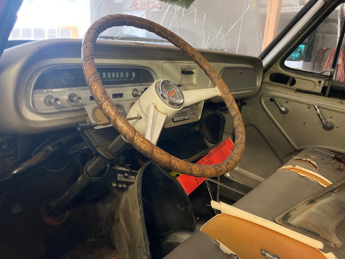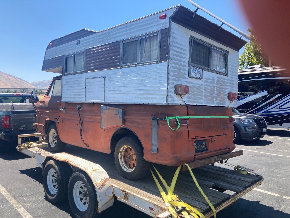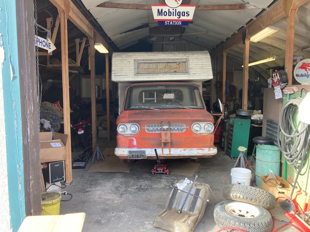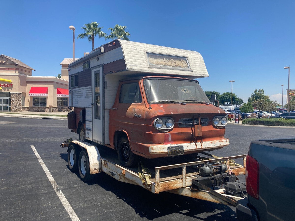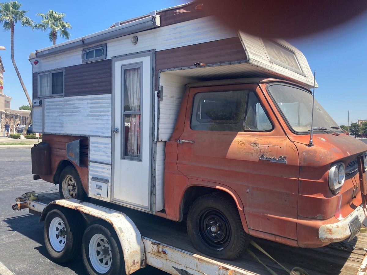 I fell in love with this Corvair camper. Never have seen one like it before. The camper is in good condition for its age. Needs tires all so they are old and weathered.Engine runs well new carbs, gas tank and I have parts to finish the brakes from Clarks. There is electrical issues a smell of hot wiring in the cab and the camper needs to be rewired. There is surface rust on the body there is a rust hole in the drivers door.. Selling due to health issues. I have not driven it at all.