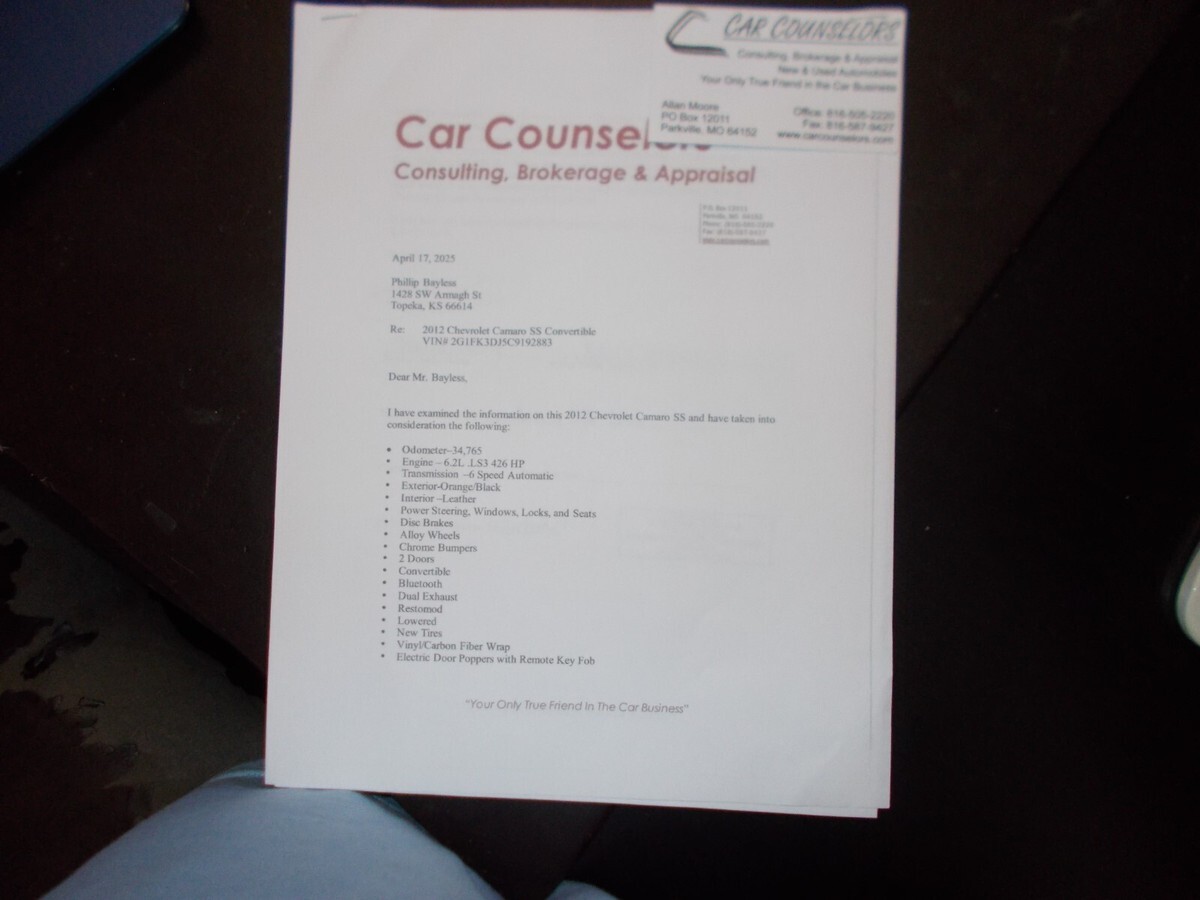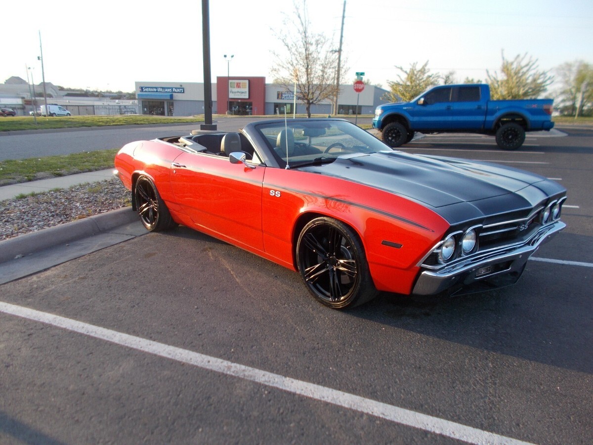 This is a new Build - Its a 2012 Chevy Camaro SS Convertible Converted into a 1969 Chevelle SS Convertible. It is a Fiberglass body, has all new chrome from OPG parts for the 69 Chevelle. Camaro has 34K original miles and has good Clean Title on it with a good Clean Car Fax. Car has juist been appraised for 185K, so car is very nice condition. Car has all the option that the Camaro has - Leather Interior, P/Windows and Lock. Cruise control, Power heated seats on both sides, 6 speaker Boston stereo. rermote start, keyless entry, has electric door poppers on doors, P/ Top, Heads Up Display, back up Camera, P/Trunk, has the Factory LS3 Motor, Automatic 6- speed Trans, 327 axel ratio, tap shift feature, has muffler delete with factory 69 chrome tips. Has ZL1 Rims on it with 305/30/20s in rear and 285/30/20s in the front. It's a very fun car to drive. Buyer pays for transporting car - I know a transporter that we can arrange car to be delivered right to your driveway. Buyer must pay 1,000 security deposit within 24 hrs of auction ending and has 7 days to pay full balance by Bank Wire only. I reserve the right to end Auction early, if I choose. Call 785-289-3290 for more information. I welcome anyone to Inspect the car before purchasing. I put the Vin Number down here because didnt want to enter it up above being a 17-digit Vin for the 2012 Camaro verses the old Vin of a 69 Chevelle. 2G1FK3DJ5C9192883.I have a walk around video on Face book. Go to Facebook and type in search box 1969 Chevelle SS Convertible LS3 to see video. I didnt include underside photos of car because its the same as the original Camaro