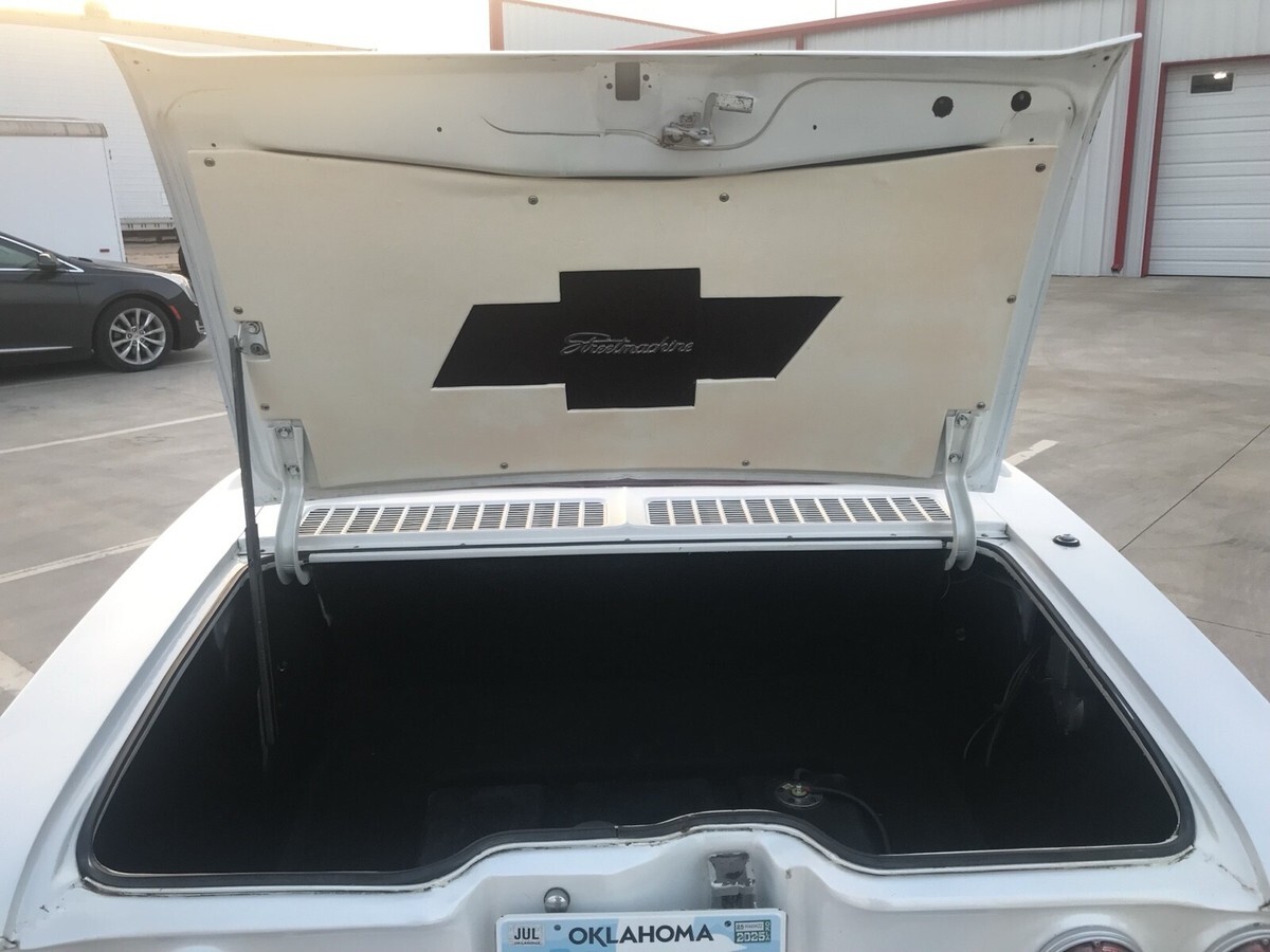 Engine is a 400 SBC with a very choppy cam, edelbrock intake and rebuilt 600 carb, headers, chrome valve covers and air cleaner. The timing is a little advanced but it seems to run best there. The hood is all steel with a 1970 Chevelle cowl induction scoop and functioning flapper welded on the corvair hood, it will never crack like fiberglass to metal scoops do! The car does have rust, if your from Minnesota there isn’t any if you are from Oklahoma it has rust. It still wins trophies and gets plenty of looks.