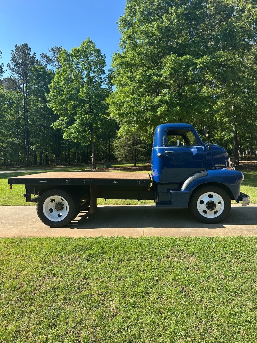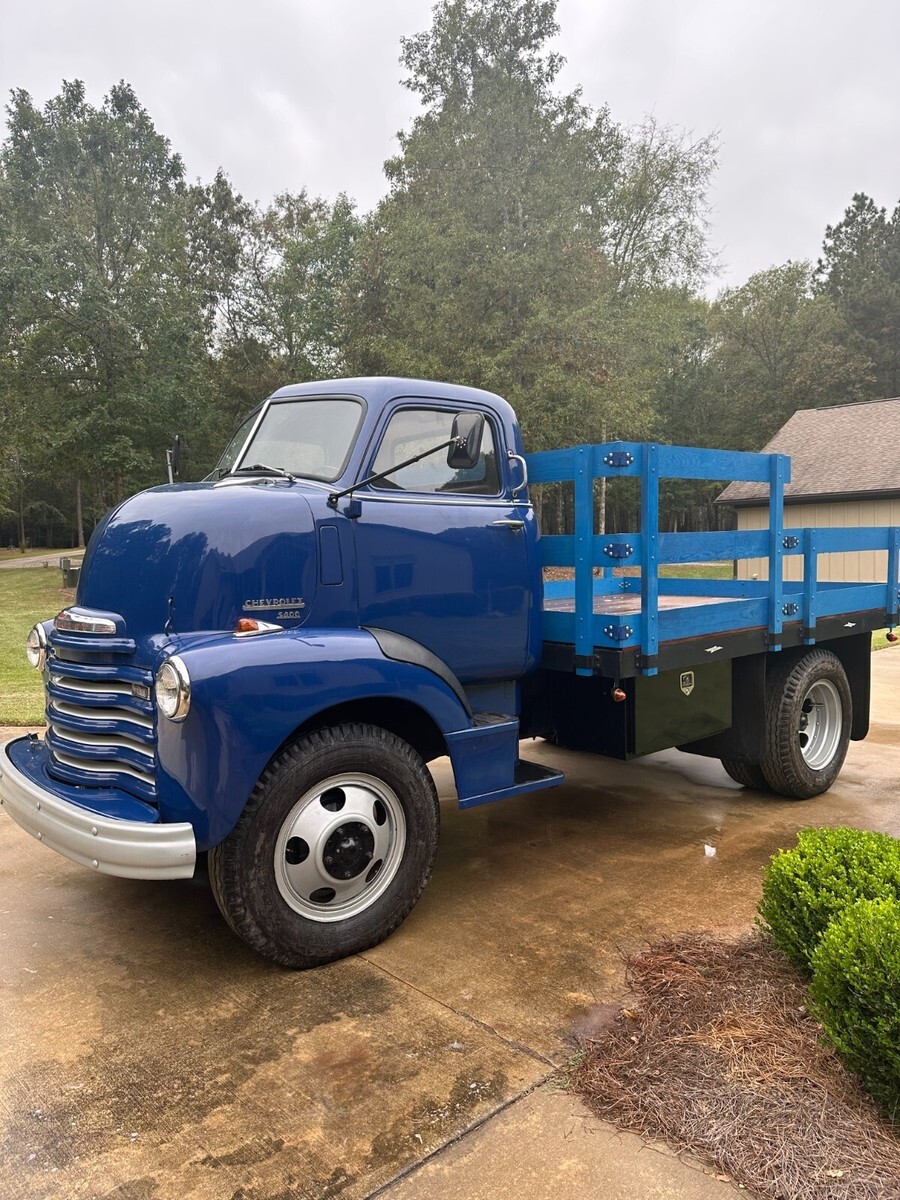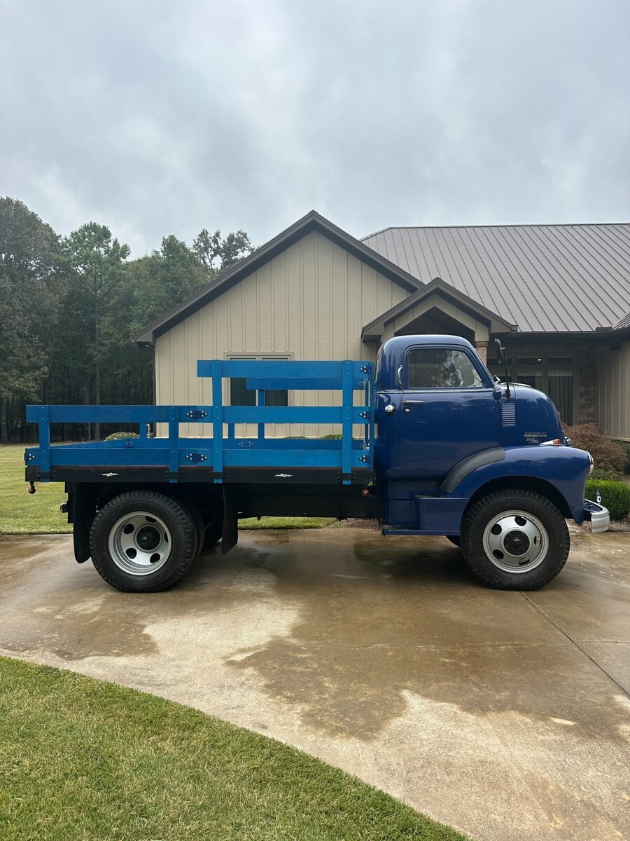 1948 Chevrolet 5400 Fleetmaster COE. 235 6cylinder engine. Truck is in great condition and runs smooth but tops out at around 40 MPH due to rearend gearing(4:56 gears). Both front and rear axles have been replaced with 1997 GMC 4500 axles giving the truck 4-wheel disc brakes. Converted to 12v system. New gas tank, fuel pump, and lines. New tires.