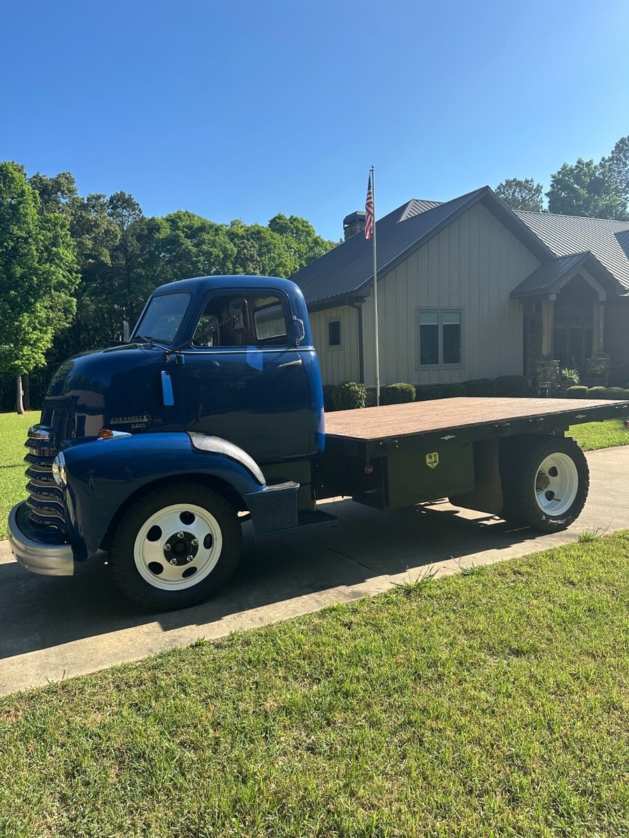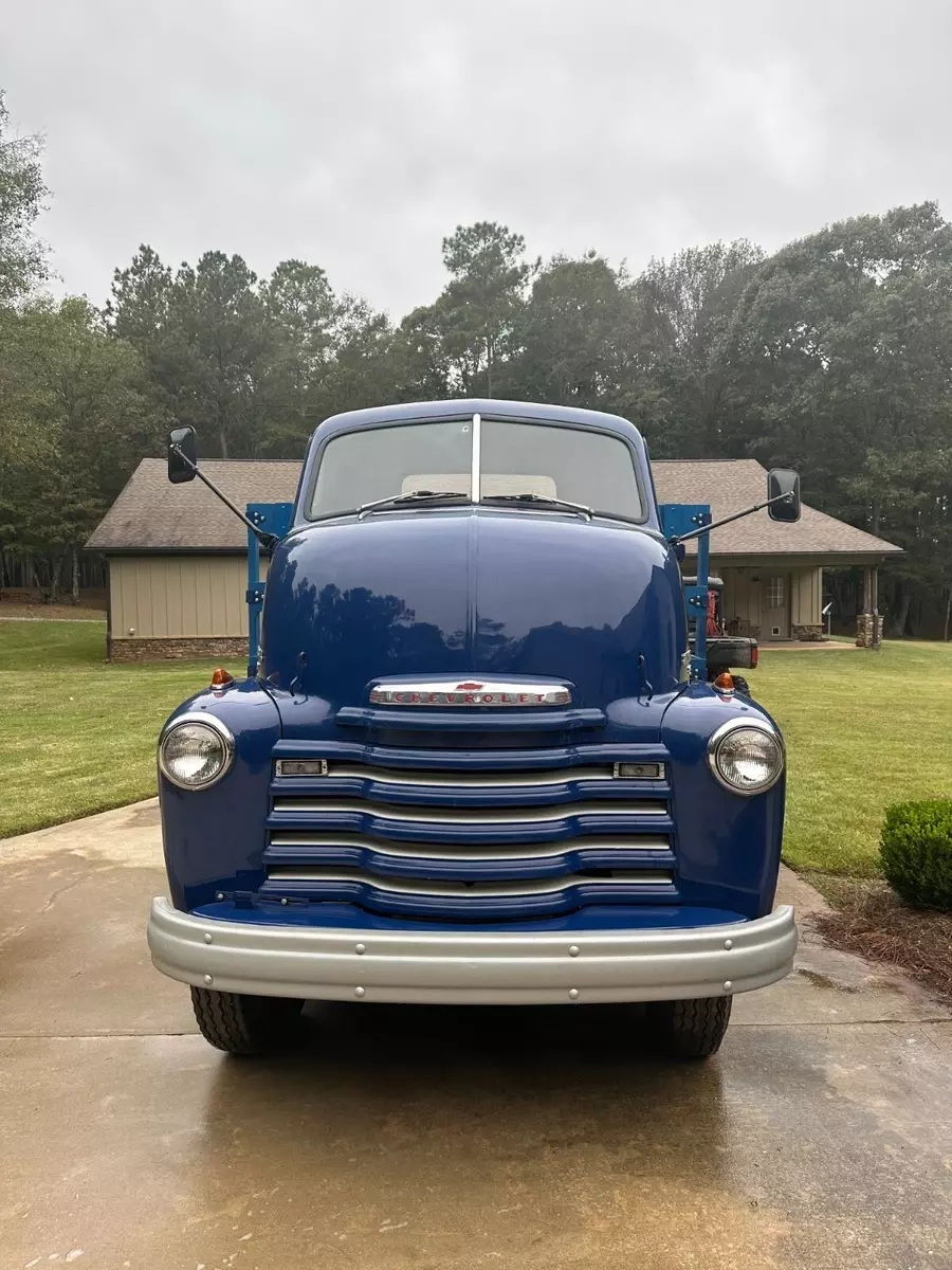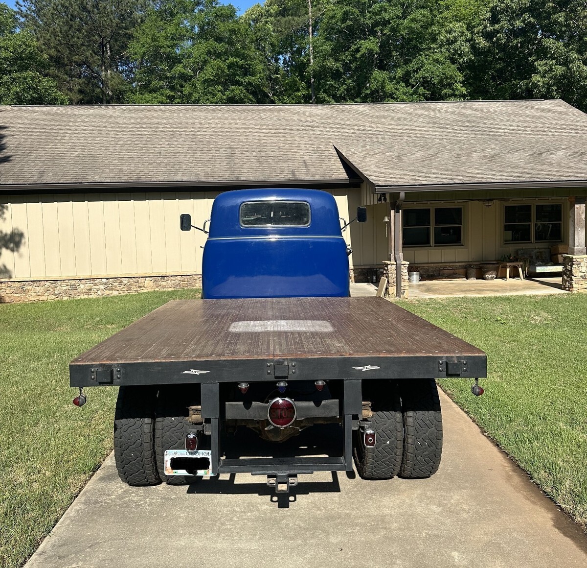 1948 Chevrolet 5400 Fleetmaster COE. 235 6cylinder engine. Truck is in great condition and runs smooth but tops out at around 40 MPH due to rearend gearing(4:56 gears). Both front and rear axles have been replaced with 1997 GMC 4500 axles giving the truck 4-wheel disc brakes. Converted to 12v system. New gas tank, fuel pump, and lines. New tires.