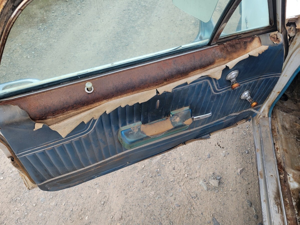 The interior on the el camino is very basic. The seat does have the original upholstery on it under the seat cover. You can get complete new interior kits pretty cheap for this car. Everything appears original, and the interior code on the trim tag is for blue.