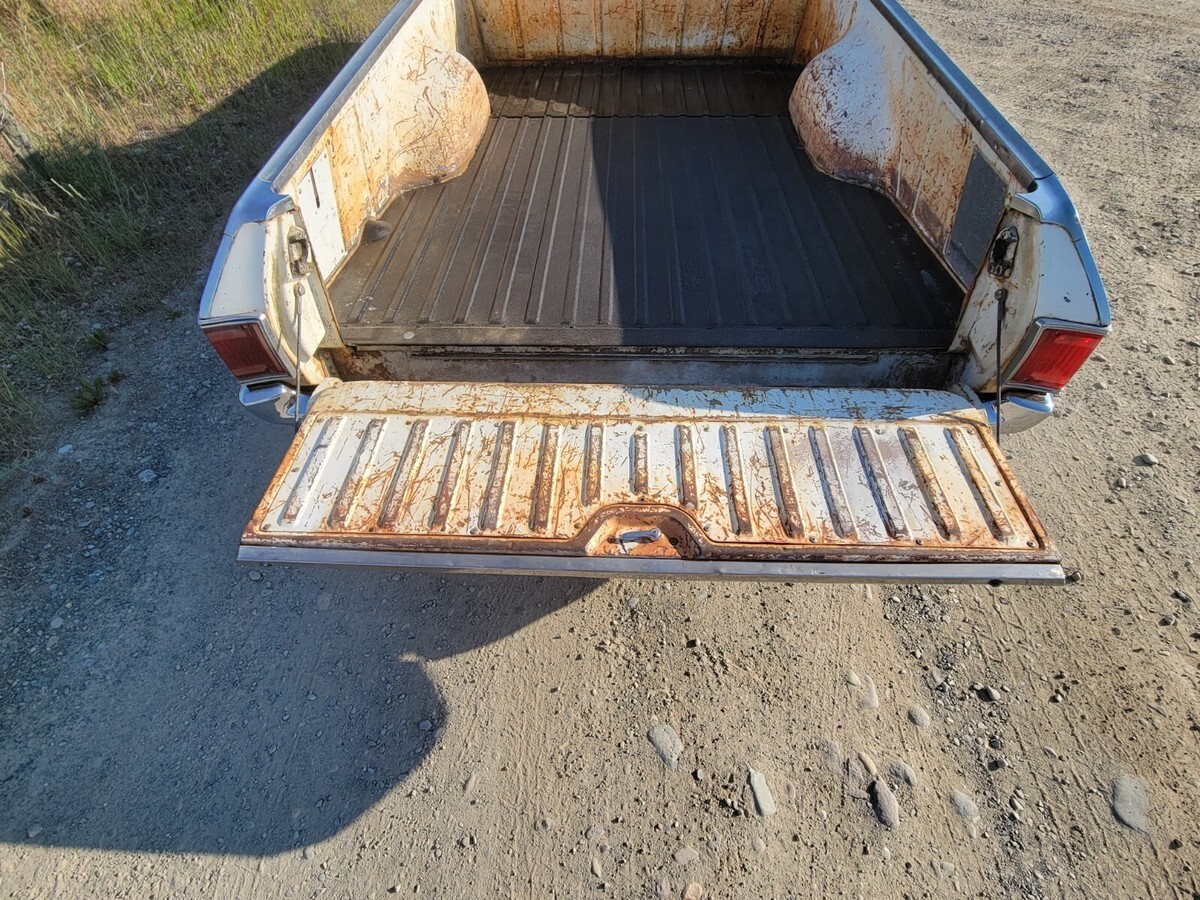 The body has the original classic white paint. I had a couple spots of rust professionally repaired. Both front fenders had the low rear corners replaced. Quality repair panels were used, and they were properly butt-welded in. The weld is under the trim piece. The panel behind the passenger side rear wheel was also replaced. It was also properly welded in and the weld hidden by the trim piece. The front bed floor section was removeable from the factory. It had rust, so I bought a new one and installed it. The other bed floor had some pitting. I painted it with bedliner. The body is very straight and will be easy to prep for paint. The floors, frame fenders, firewall, rockers, roof etc. etc. have no rust. There is no sign of any collision damage ever, and no filler. I have a lot of undercarriage/floor pics I can send.