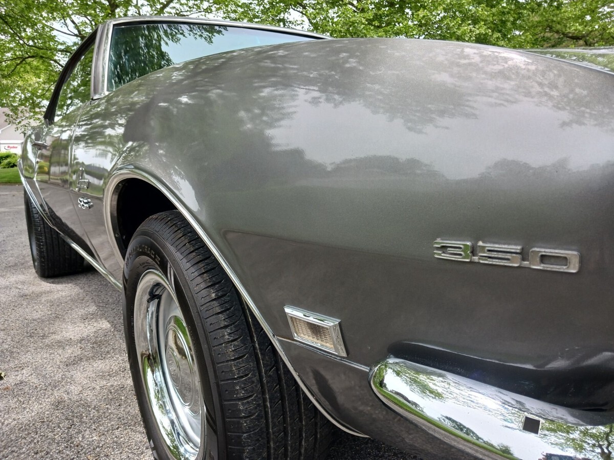 NICE 1968 CAMARO RS/SS TRIBUTE 350 V8 AUTOMATIC IN STRIKING CORTEZ SILVER THAT IS A GOOD DRIVER WITH 37K MILES AND SOME NICE OPTIONS!PleaseLEAVE A PHONE NUMBERwhen messaging/bidding so I can call you directly and don't have to chase you after auction ends.AUCTION MAY BE STOPPED AT ANY TIME DUE TO SERIOUS OFFER.Full Youtube walkaround, startup and driving videos here:https://www.youtube.com/watch?v=7_8EeMOOHzUhttps://www.youtube.com/watch?v=PyCfkE6mb98OPTIONS:Manual SteeringManual DISC Front Brakes350 V8 Engine12 Bolt Rear EndAutomatic TransmissionStandard Bucket Seat Interior w/ConsoleRally Sport PackageSS PackageFront & Rear Spoilers15" Chevy Rally Wheels w/Police caps wearing Radial TiresZ28 StripesDual Flowmaster ExhaustCar has been collector owned and garaged year round. Has had some race history and shows evidence of that. Has mini tubs in back (NO back seat), fuel sump below gas tank, battery relocated to trunk, frame connectors, shift kit and a few bolt on performance goodies under the hood. Looks to have been a 4 speed originally as it has the smaller brake pedal in it still.Body and paint areFAIRLY NICE. Nice and straight with older paint. Minor blemishes like chips, scratches, touch-ups as you'd expect from being over 20 years old but looks good and gets thumbs up anywhere including local car shows and cruise nights. No real rust to speak as outer panels look VERY NICE, NO bubbles, NO clusters. Panel fit is good and doors open and close nicelyInterior looksGOOD.Seats in good shape, driver's side redone (could use more padding in a few spots to smoothen out), passenger side original, NO back seat. NEWER door panels front and rear (driver's side front has a small rip on top), good dash with small cut for tachometer as shown. RADIO DELETE with extra gauges added as shown. Headliner is pretty good, with one small seam split above driver's seat, package tray and rear sail panels need replacing. Carpet is newer and looks good.Under the hood the 350 V8 roars at the turn of the key and performs great. No noises, great compression and a great performer. Upgraded aluminum intake, HEI distributor, wrapped headers and dual Flowmaster exhaust. Tranny shifts good and solid rear end.Could use wiring redone as lights, signals NOT working. Also could use front end links, one side missing.STARTS RIGHT UP, IDLES GREAT AND YOU CAN GET IN AND DRIVE IT TODAYwith a few hours of tinkering!Underside is presentable, some amateur patching on floorboards, but they seem solid. Has frame connectors installed. Frame rails appear good, front ones have had some welding work towards the last few inches near bumper. Trunk is solid overall but has some small holes along with filler neck relocated to inside as shown.NOT PERFECT: hidden headlights have no motors so open and close manually, backup lights, headlights, signals and taillights not connected, horn not working. NO heater box on firewall so NO heat. There may be a couple of other minor things I don't remember right now. PLEASE UNDERSTAND CAR IS NOWHERE NEAR PERFECT and will require going over, tlc, mild restoration depending on what you want to do with it.Overall a NICE DRIVER QUALITY 68 Camaro made into an RS/SS you can get in and drive as is and do some tinkering with to dial it in to your liking. NOT perfect but FAIRLY NICE driver.