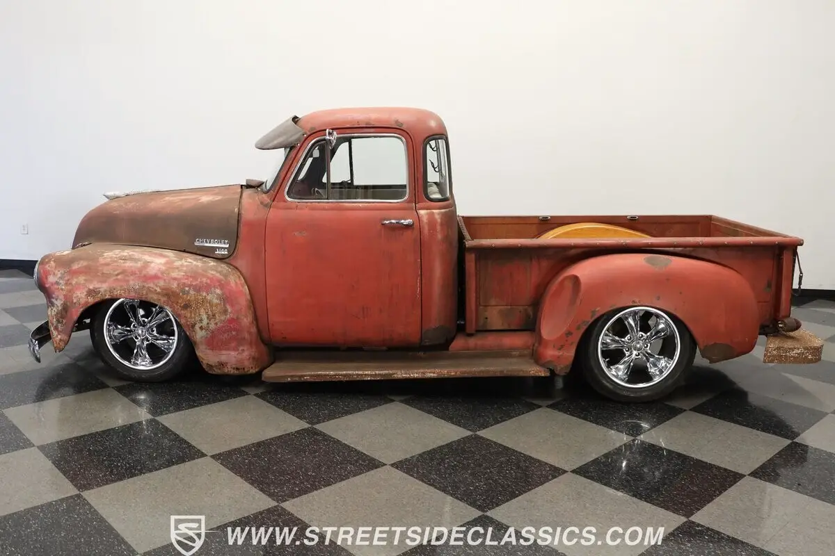 Vehicle Original VIN : H548134264993-TPA 1954 CHEVROLET 3100 5 WINDOW PATINA HIGHLIGHTS: • 5.3L LM7 Fuel-Injected Vortec V8 Engine • 3-Speed Automatic Transmission • Front Power Disc Brakes • A-Arm Front Suspension with Coil Springs • Leaf Spring Rear Suspension • Aluminum Radiator with Electric Fan • Dual Exhaust with Cherry Bomb Mufflers • Serpentine Belt System • Natural Patina Finish • Wood Bed Floor • Cream Vinyl Tonneau Cover • Chrome Bumpers and Grille • 17" Front, 18" Rear Foose Wheels • 225/55ZR17 Front, 255/55ZR18 Rear Tires • Metal Sunshade • GMC Tailgate • Cream Ultraleather Split Bench Seat • Grant GT Steering Wheel • Tilt Steering Column • Power Steering • Air Conditioning • AM/FM/Sirius/DVD Receiver • 6x9 Door Speakers • Equus Gauges • Floor Shifter • Gun Rack • License Plate Floor Coverage