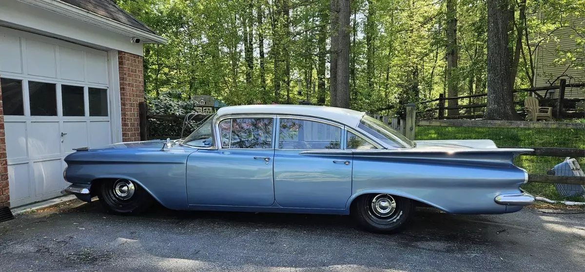 Selling a 59 impala seda, started off as a bel air, but added some Impala trim. LT1/ 4L60, bagged, disc brakes.If you are looking for perfection, this is not your car. Its a presentable driver, that needs finishing. Paint is not show quality, but looks good. Its frost blue.The bad: so I'd call this a driveable project, the floor has a couple of non-professionaly installed patches and trunk floor too. (Think of vice grip garage style!) None of the gauges are working, since the lt1 swap. Headlights not working. Interior needs finishing. I do have the door panel uppers, but no door panels. Right quarter wing trim is coming off, looks like double sided tape? The white paint has flake in it ( wasnt done great) and there is 1 or 2 small places on the roof where the paint started to crack.The good! Its a 59! It has a strong lt1, 4l60e. It goes 80 mph+ on the highway like a dream ! Has professionally installed disc brakes up front and air bags- all from street machinery. Drop spindles too. New tires! 62 hubcaps not included, but i can put some 64 dog dish caps on.I consider this a cool project, that you can drive as you finish. I was going to add dakota digital gauges, but ive taken this as far as I want to go. Has been parked since last winter. I do have videos of it drivin, and i have a clear MD title, in my name. Again, please dont expect perfection, its a driver - not a show car. I consider it a project because of the items that still need fixing or work.Lastly - if someone wants this without rhe lt1/4l60e -- i can remove it, and sell the car as a roller for less.