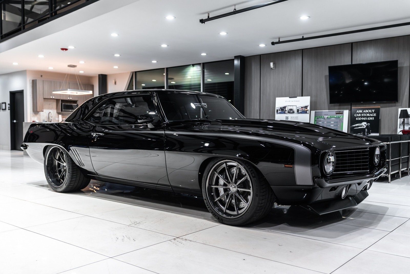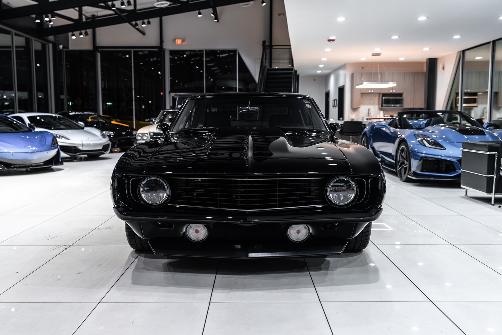 1969 Chevrolet Camaro Pro Touring CoupeGloss Black Exterior over Black Leather Interior*6-SPEED MANUAL**TEXAS SPEED BUILT LS7**VINTAGE AIR A/C SYSTEM**INCREDIBLE PRO TOURING BUILD**EXCELLENT CONDITION THROUGHOUT**HUNDREDS OF THOUSANDS INVESTED**STUNNING BLACK ON BLACK COLOR COMBO**LASER-STRAIGHT BODY LINES + CONCOURSE PAINT**A DREAM COME TRUE FOR ANY COLLECTOR/ENTHUSIAST*** FULL ROTISSERIE RESTORATION AND BUILD BY DUTCHBOYS HOTRODS **VEHICLE HIGHLIGHTS:FULL Rotisserie Restoration and Build by Dutchboys Hotrods!POWERTRAIN/CHASSIS:TEXAS SPEED BUILT LS7-700 Horsepower-TREMEC T56 MANUAL TRANSMISSIONAll-New BushingsPower Steering SystemCustom Exhaust SystemDetroit Speed Mini Tub KitCustom Fully Powdercoated ChassisDetroit Speed Coilover Suspension SystemC6 Corvette Z06 4-Wheel Disc Power Braking SystemEXTERIOR:Front SplitterAll-New GlassLED Front HeadlightsAll-New Chrome WorkBillet Forgeline WheelsBlack Bow-Tie Emblem