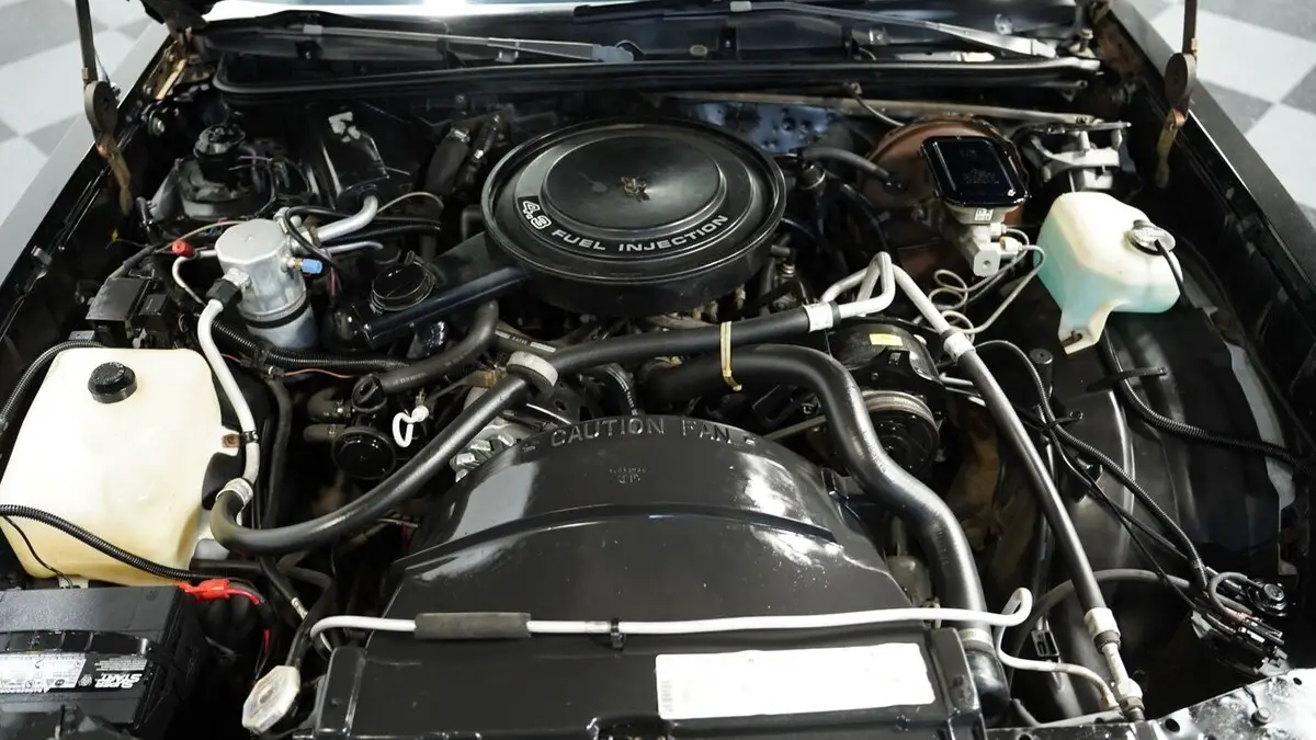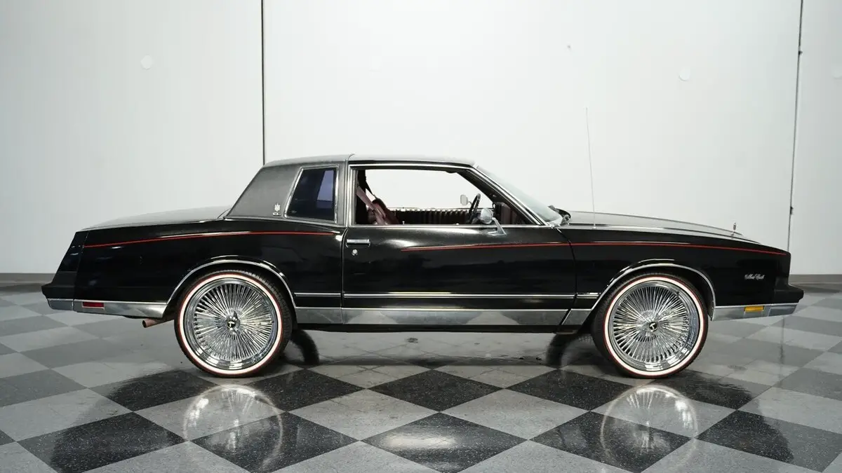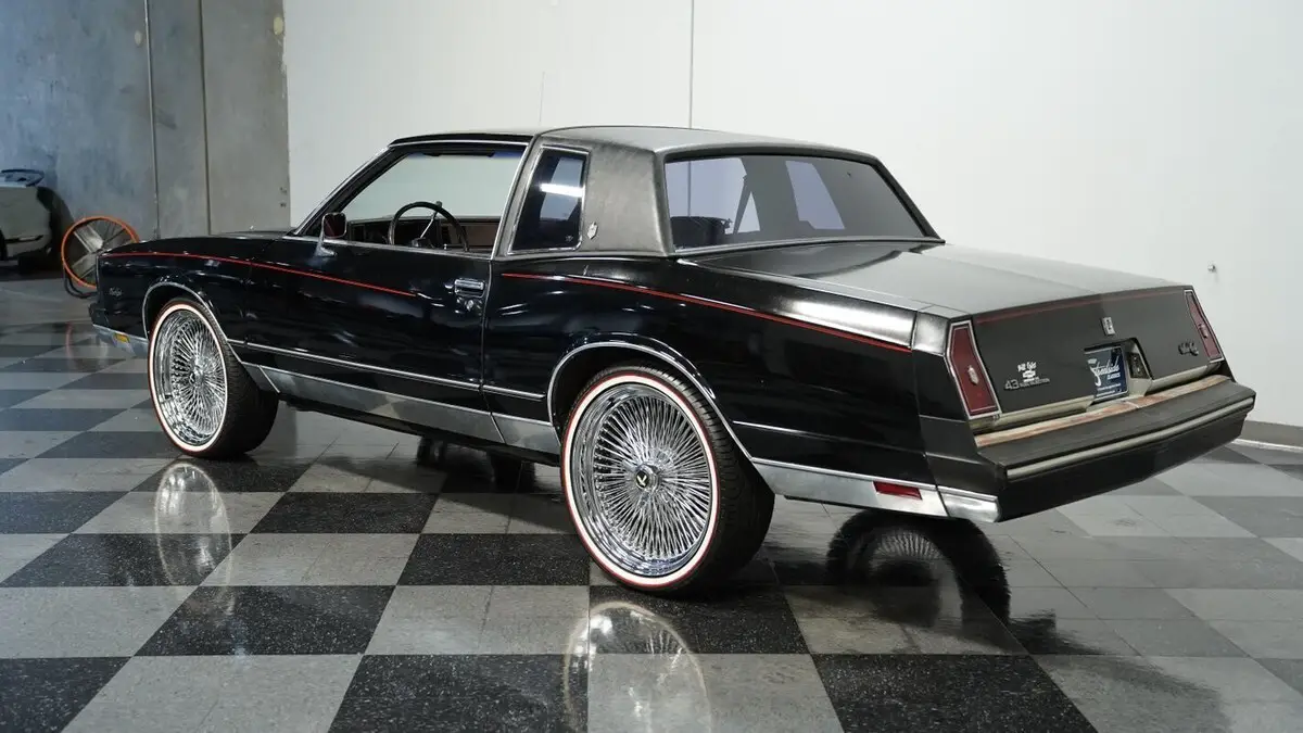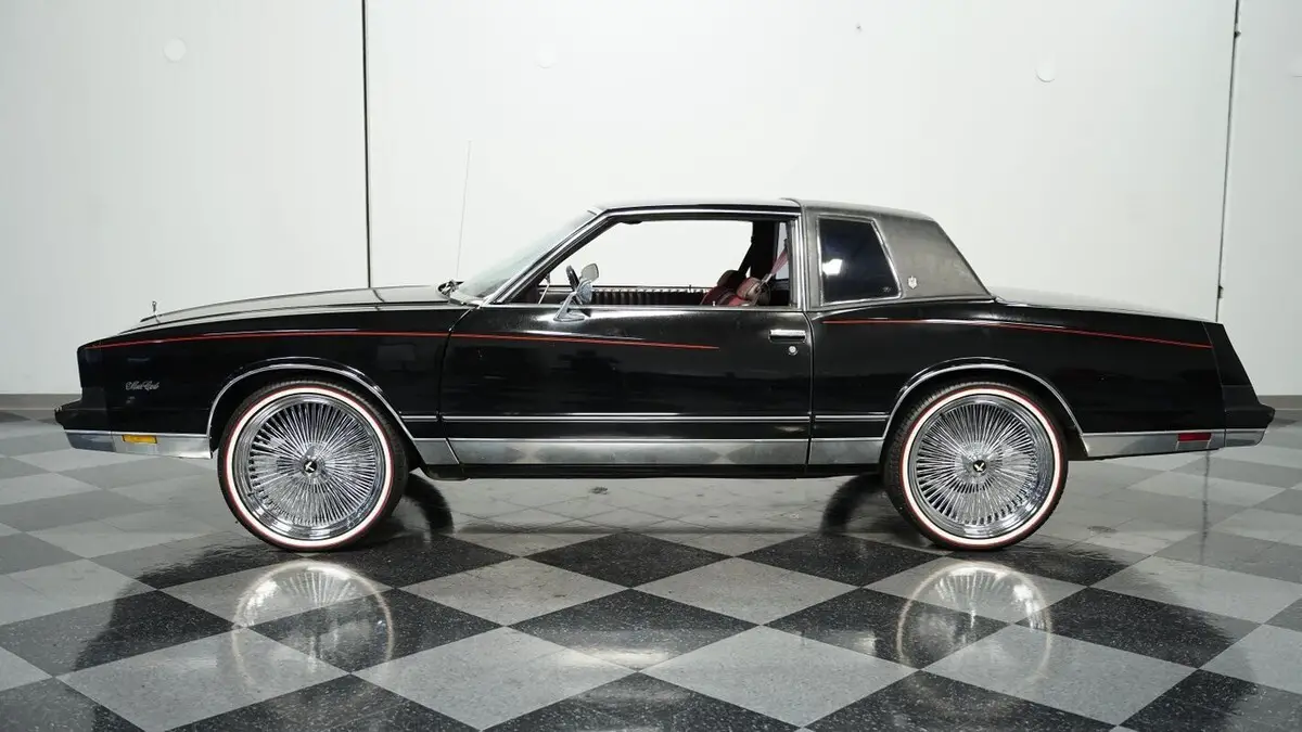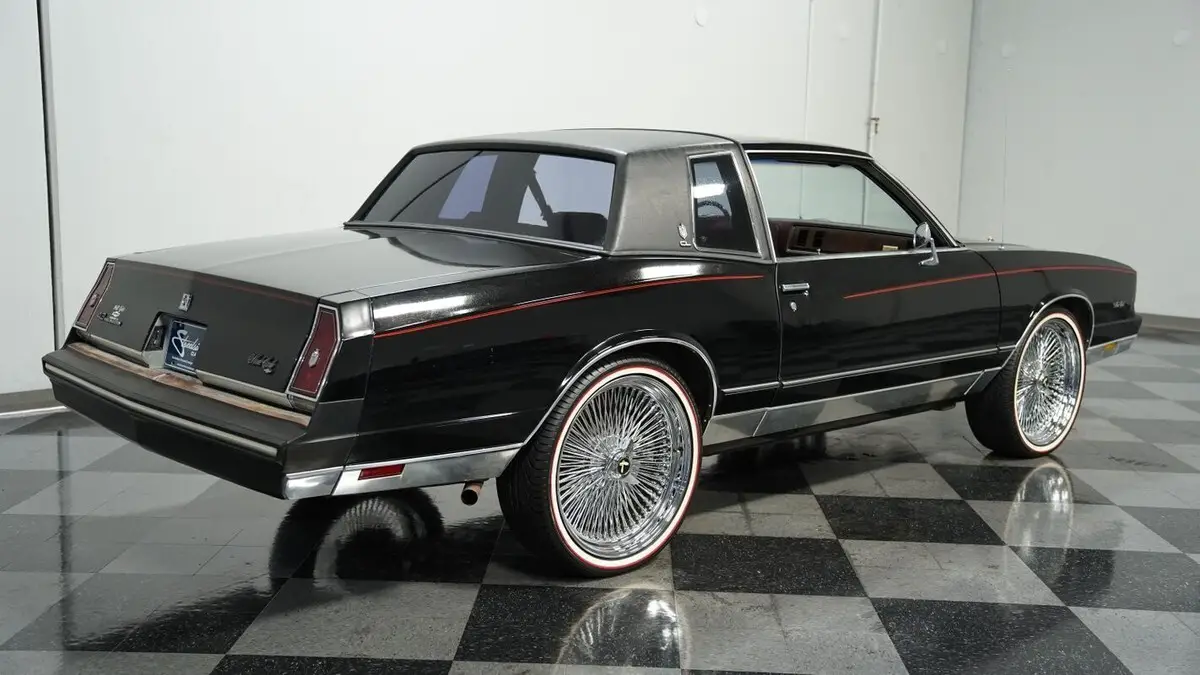 • 4.3 Liter V6 Engine • Electronic Fuel Injection • 3 Speed Automatic Transmission (TH200) • 10 Bolt Rear Axle • Coil Spring Front Suspension with Sway Bar • Trailing Arm/Coil Spring Rear Suspension • New Front and Rear Shocks • New Rear Springs • Power Disc Brakes • Single Exhaust System • Black Paint with Red Racing Stripes • 22" Knock-Off Dayton Wheels in 265/35ZR22 Tires • Half Vinyl Top • Chrome Trim • Factory Bumpers • Burgundy Interior with Split-Bench Seats • Column Shifter • AM/FM Cassette Player • Power Steering • Factory Gauges • 52,306 Believed Actual Miles