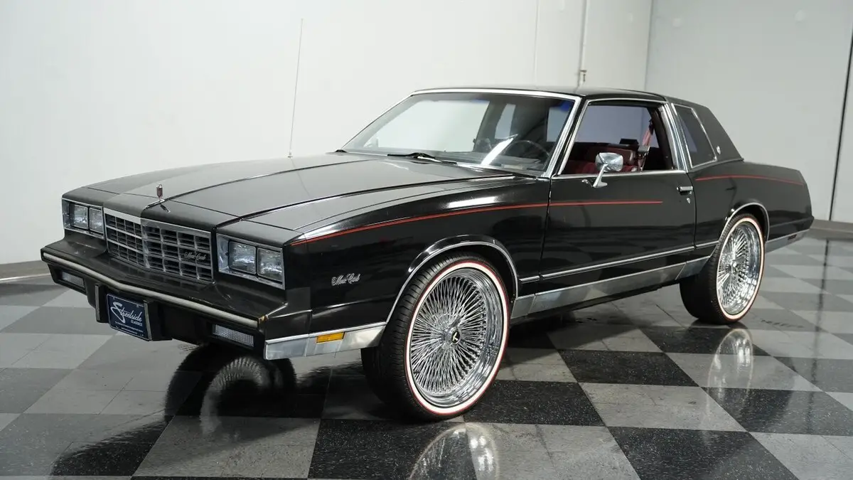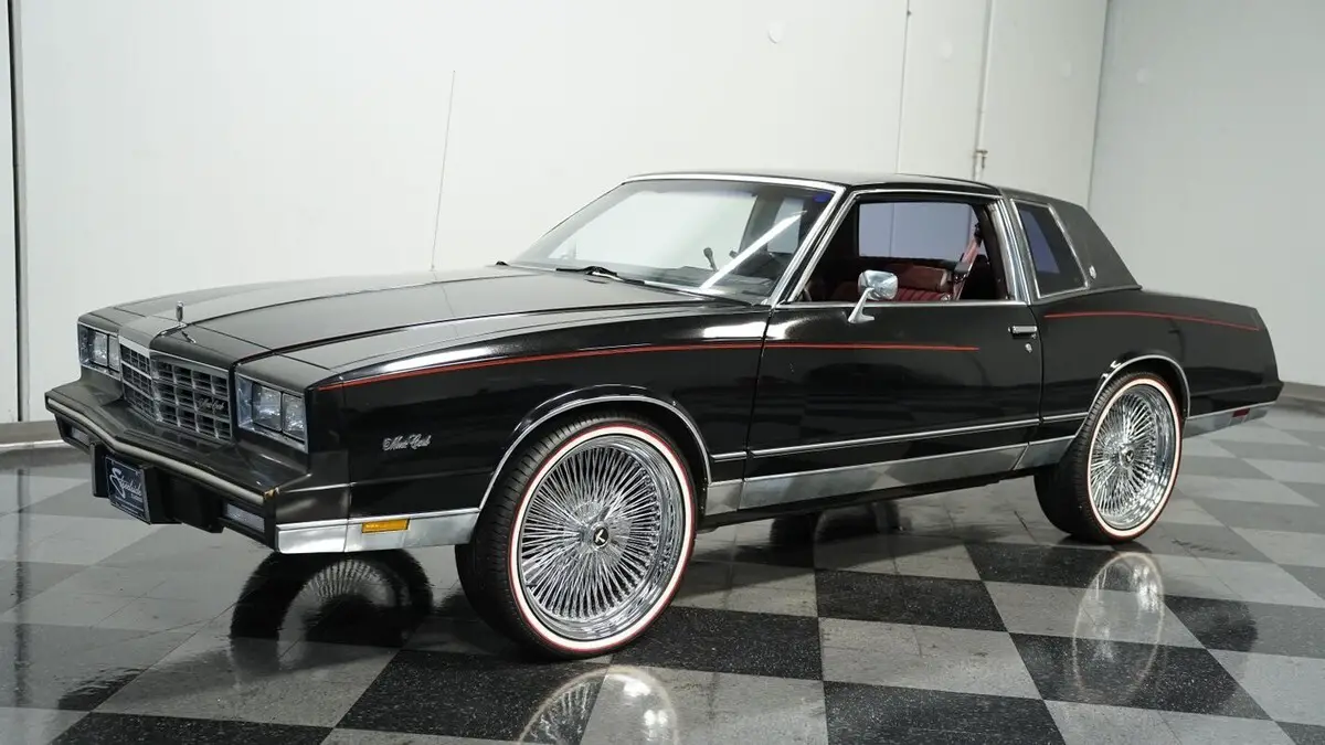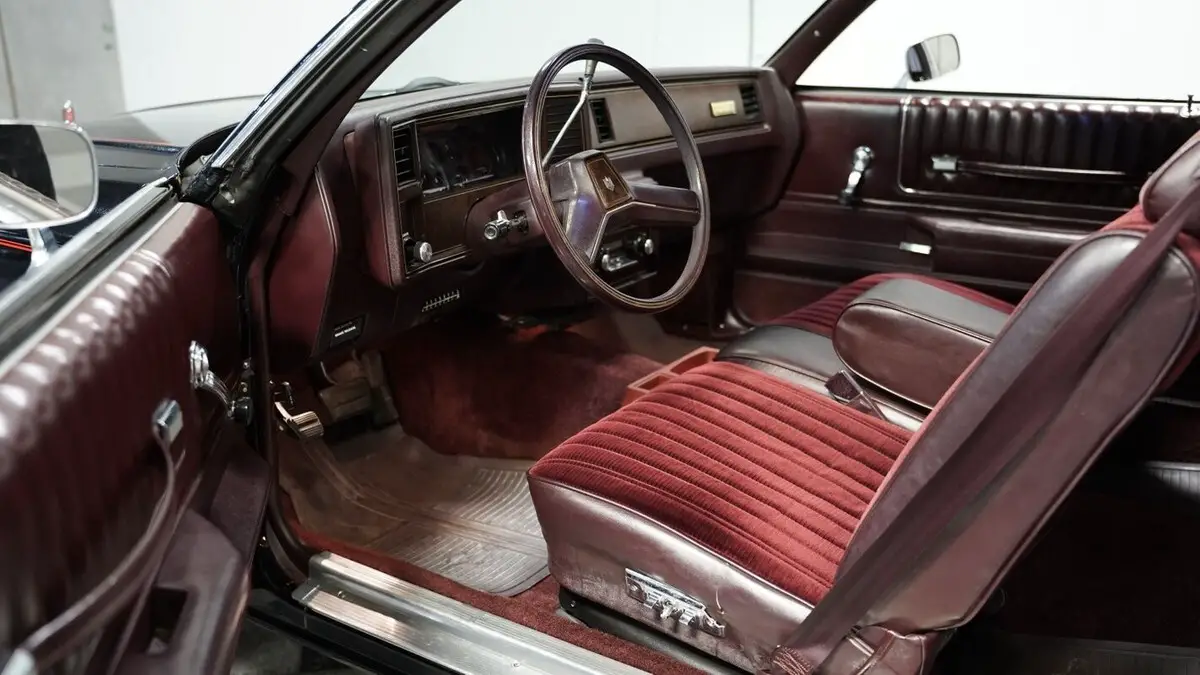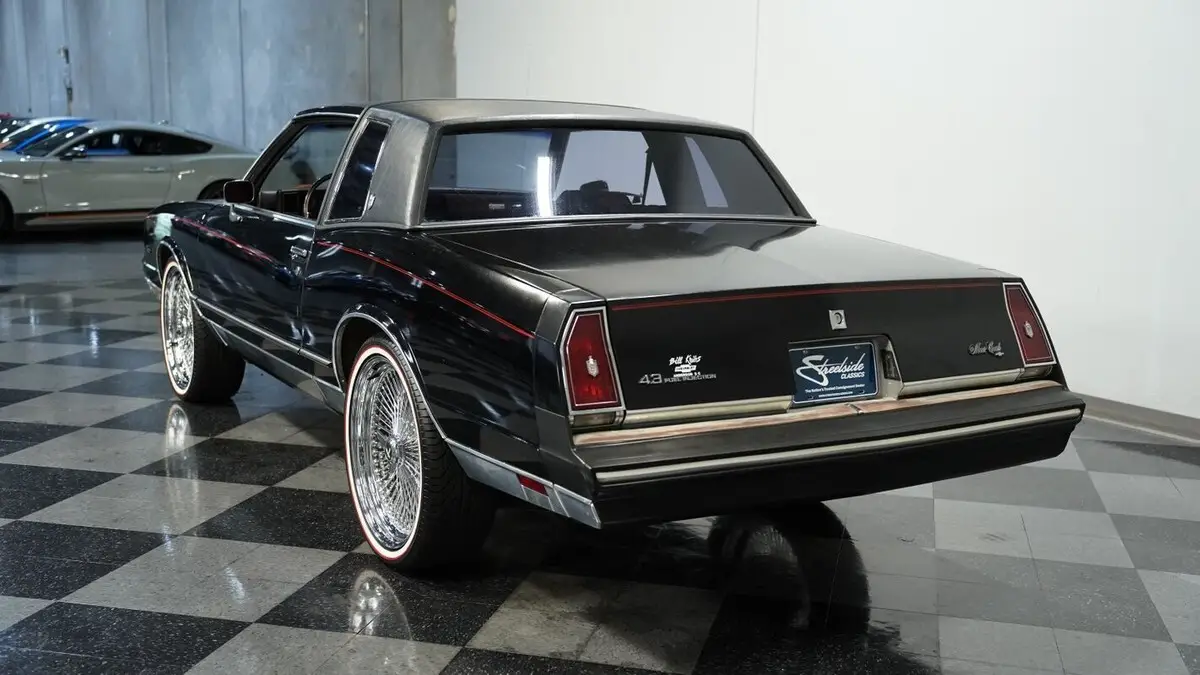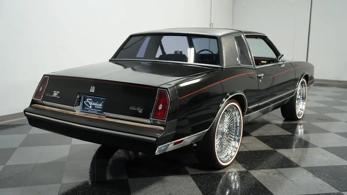 • 4.3 Liter V6 Engine • Electronic Fuel Injection • 3 Speed Automatic Transmission (TH200) • 10 Bolt Rear Axle • Coil Spring Front Suspension with Sway Bar • Trailing Arm/Coil Spring Rear Suspension • New Front and Rear Shocks • New Rear Springs • Power Disc Brakes • Single Exhaust System • Black Paint with Red Racing Stripes • 22" Knock-Off Dayton Wheels in 265/35ZR22 Tires • Half Vinyl Top • Chrome Trim • Factory Bumpers • Burgundy Interior with Split-Bench Seats • Column Shifter • AM/FM Cassette Player • Power Steering • Factory Gauges • 52,306 Believed Actual Miles