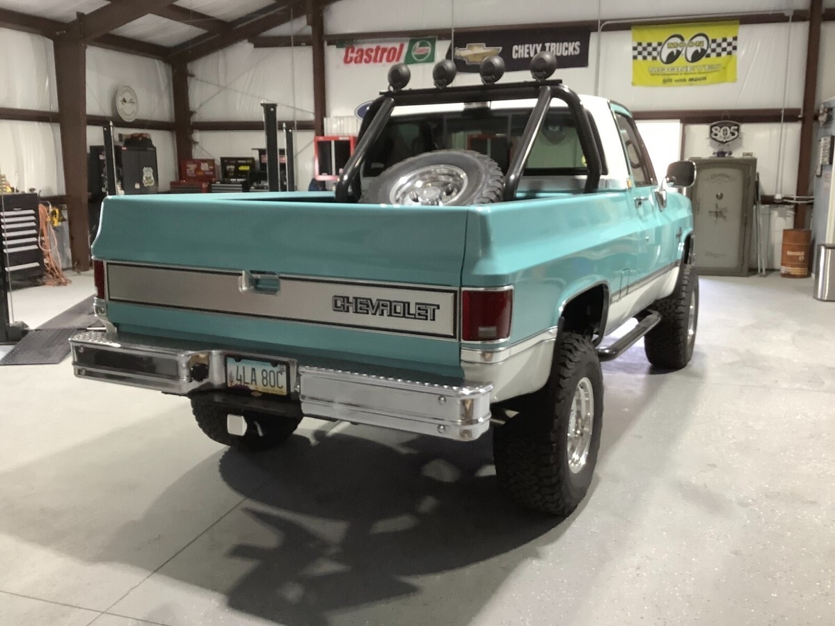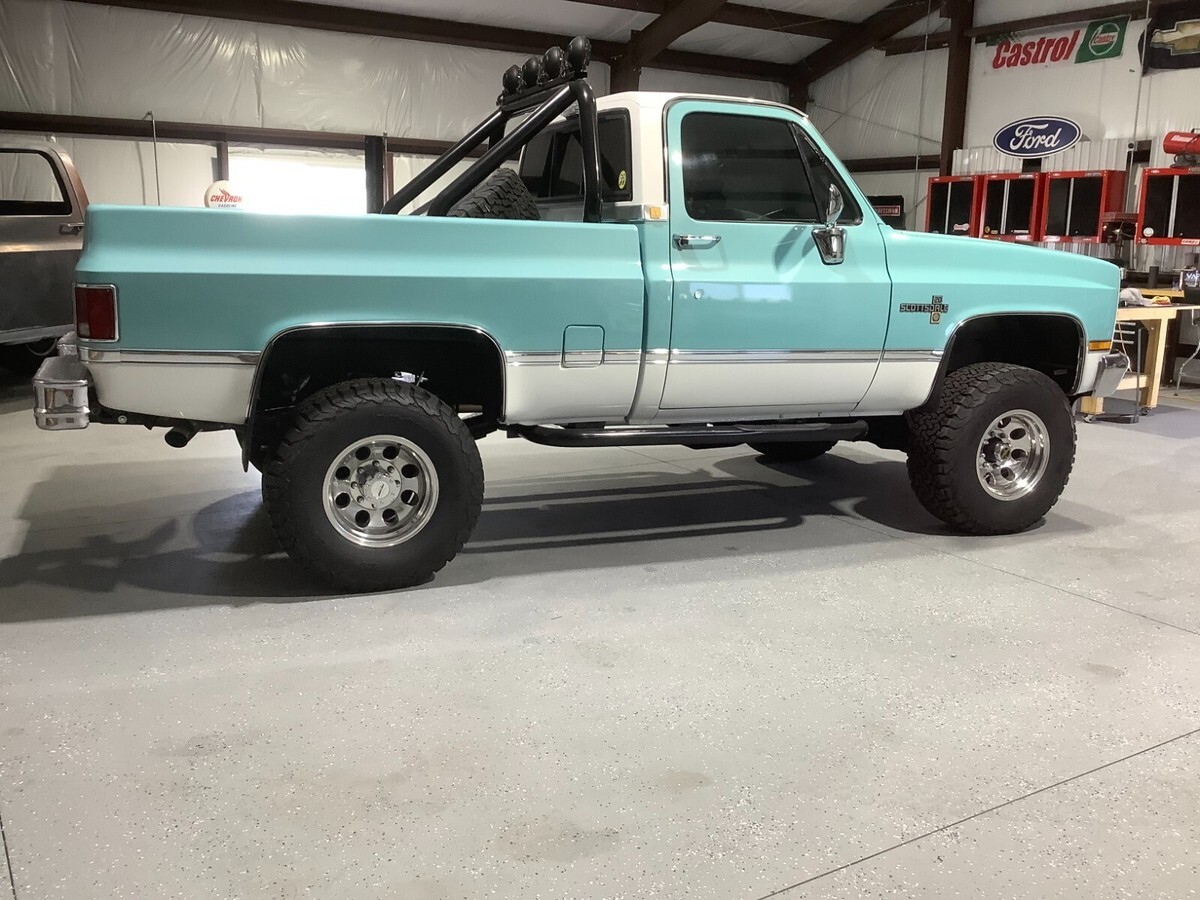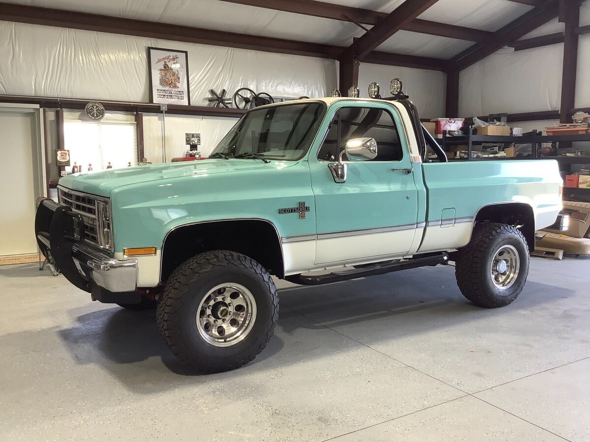 Beautifully restored 1986 Chevy K20 Scottsdale pickup.Originally a Long bed diesel 4 speed Pickup. Arizona truck that was in excellent condition.Frame shortened and a 468 big block with a 700r4 automatic installed.Bed was completely replaced along with doors, fender, hood and grill.New short bed gas tanks installed,Nothing on the body except the cab has any repair or body work done .Cab has 0ne 6'' patch panel behind the drivers side only.Professionally prepped and painted approx. four years ago. The truck has maybe 2500 miles on it while the motor and trans have maybe 500 miles. I only drive it to local shows or around town on occasion.Motor and trans were upgraded last year (originally installed a small block and kept the 4 speed trans when 1st restored.)Last year I installed a 1995 Chevy 454 bore, balanced, roller ca, roller lifters, mild cam aluminum heads making it a 468 full roller motor with estimated 475 horsepower.Transmission is a automatic 4 speed overdrive 700r4 built to withstand the extra horsepower and torque being produced.A/C blows cold with all new components. Electric windows and door locks. CD player with multiple speakers.Front and rear end have been gone thru with 3:73 gear ratio.Rear end has a Yukon limited slip locker. Front end is stock with all new components.Every thing on this truck has been replaced or addressed including shocks, exhaust, brakes, whee, tire, Radio, interior, and on and on.This truck won a local car show and is a real attraction when your out driving it.the issues, Small nick on the drivers side front fender, small hole in the seat drivers side, window washer pump works but doesn't pump water to the windshield probably just a plugged line.I have been told it looks like it could be in a showroom and I love driving it local shows but I have other projects and its time to find this gem a new home.