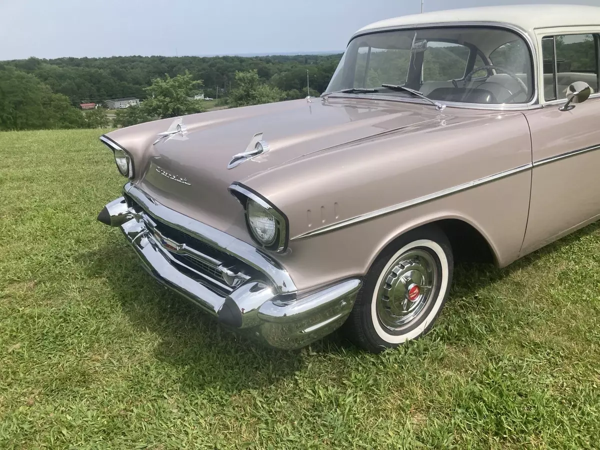 The 1957 Chevrolet 210 is a classic car that has been owned by the current owner for 3 years. With a brown color and a clean title, this vintage vehicle is mainly used for car shows. It has a mileage of 9999999 miles, indicating that it has been well-maintained and driven sparingly. The Chevy 210 runs smoothly, making it a reliable choice for those who appreciate the nostalgia and style of classic cars. if you have any questions call or text 941 626 9411 will shipp anywhere buyer pays all shipping just put the front fender moldings on today