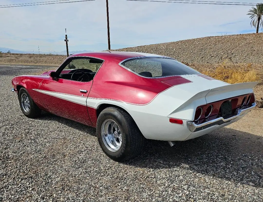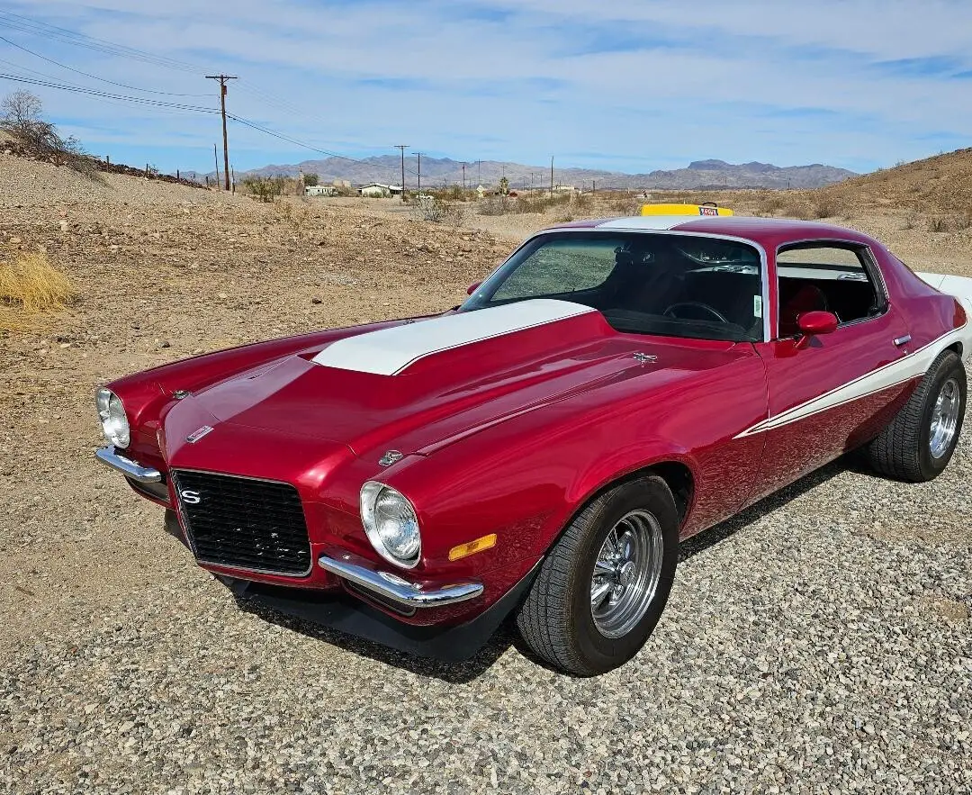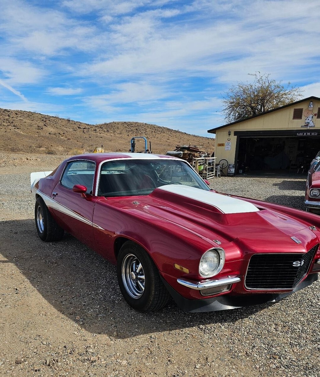 1971 Chevy Camaro SS Split Bumper454 Engine - 4speed Saginaw Transmission ManualEQUUS TachHeaders-Like new Exhaust-Dual with Flowmaster mufflers10 bolt rear endHurst ShifterHolley 4 barrel carbKenwood CD Stereo with USBFront & Rear SpoilersLap seat beltsHood Lift Off L88 Style Fiberglass with pinsDisc front brakes- Drum rear brakesAir shocksFront 14" Old school Crager Wheels Tires very goodRear 15" Old School Crager Wheels with new tires 255-60-15Interior is Black and Red VelourPaint is good for Driver and all chrome is very goodCar has no power steering of Power Brakes and no air conditioningClean AZ Title in my name in hand.Please ask all questions prior to bidding. This is a no reserve auction listing.Shipping is the responsibility of the buyer and auction must be paid in full within 72 hours with a $1000 deposit due within 24 hours.