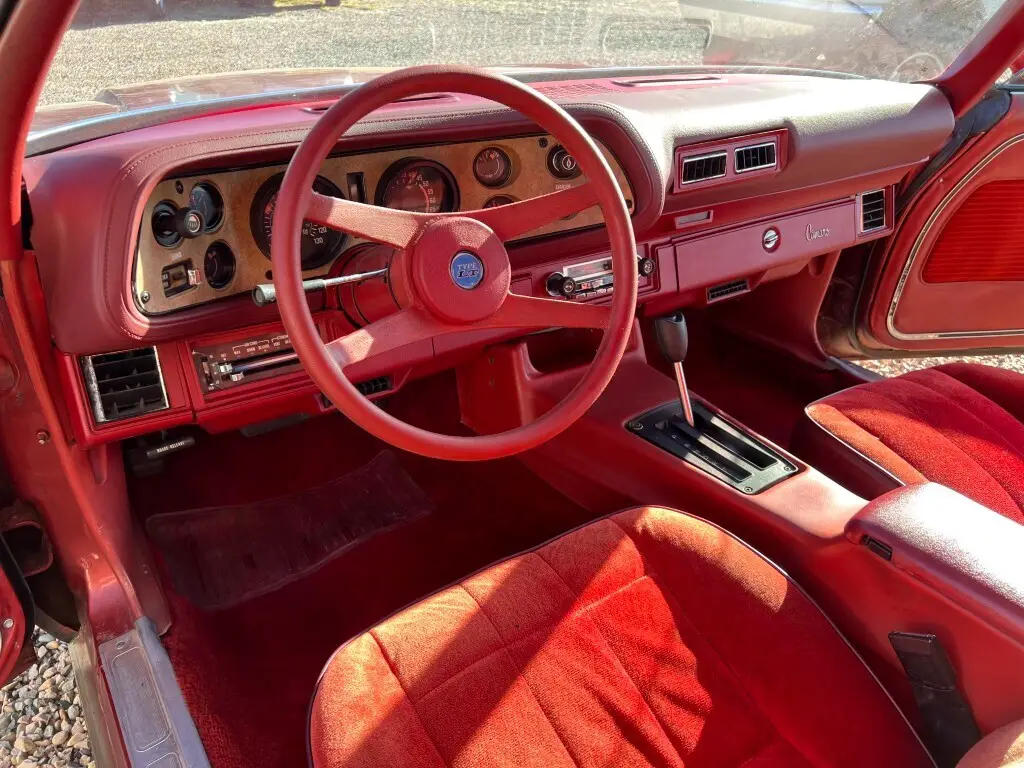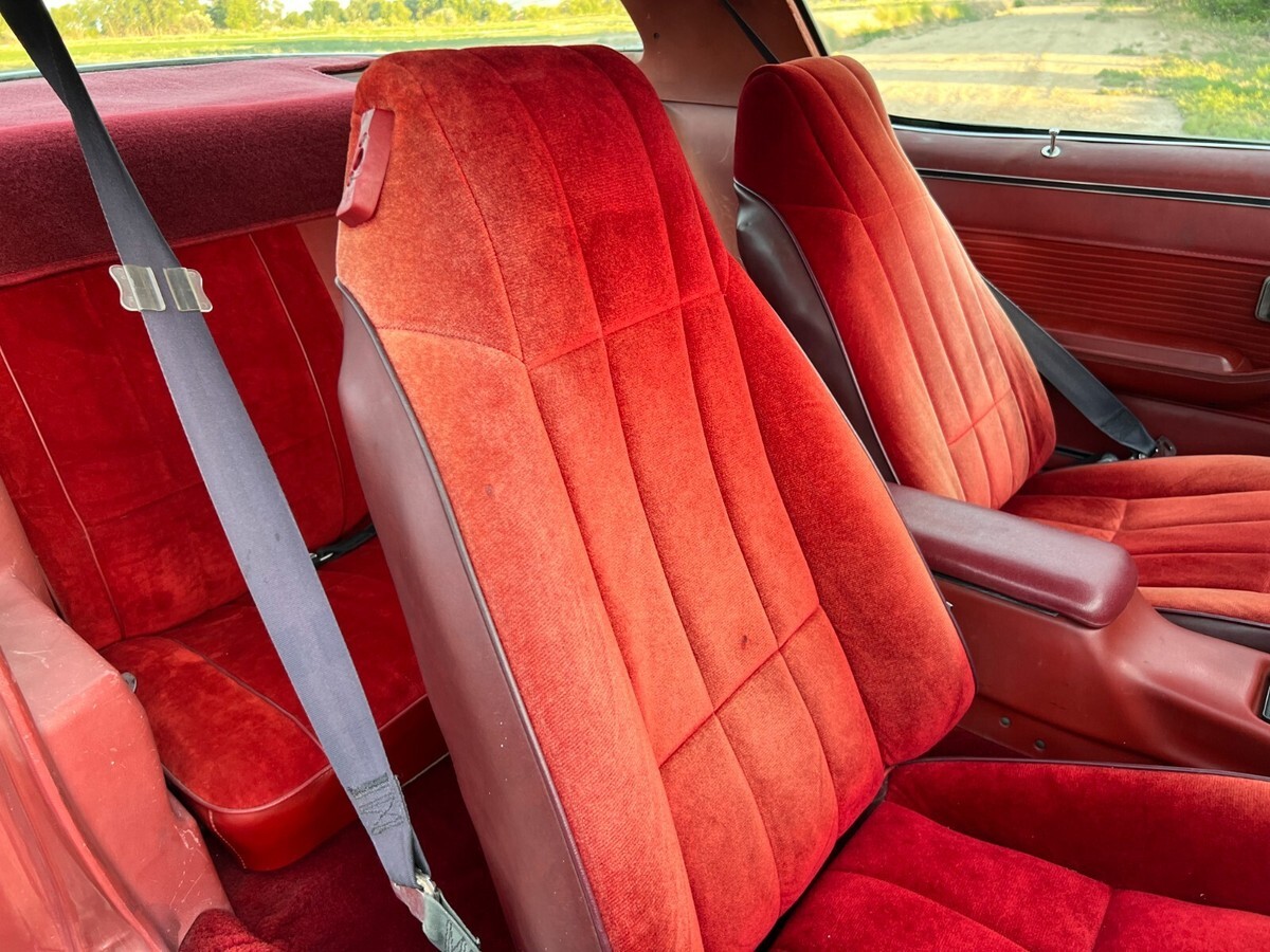 ORIGINAL STYLE INTERIOR, CLEAN, BUCKET SEATS SEATBELTS, NEW UPPER PADDED DASH, TILT CRUISE CONTROL, A/C, BLOWS COLD, 305 V8 AUTOMATIC DRIVEN DAILY TIRE HAVE GOOD TREAD BUT ARE OLD AND HAVE SIDEWALL CRACKS DRIVEN LOCAL ONLY, NO HIGHWAY WITH THESE TIRES.