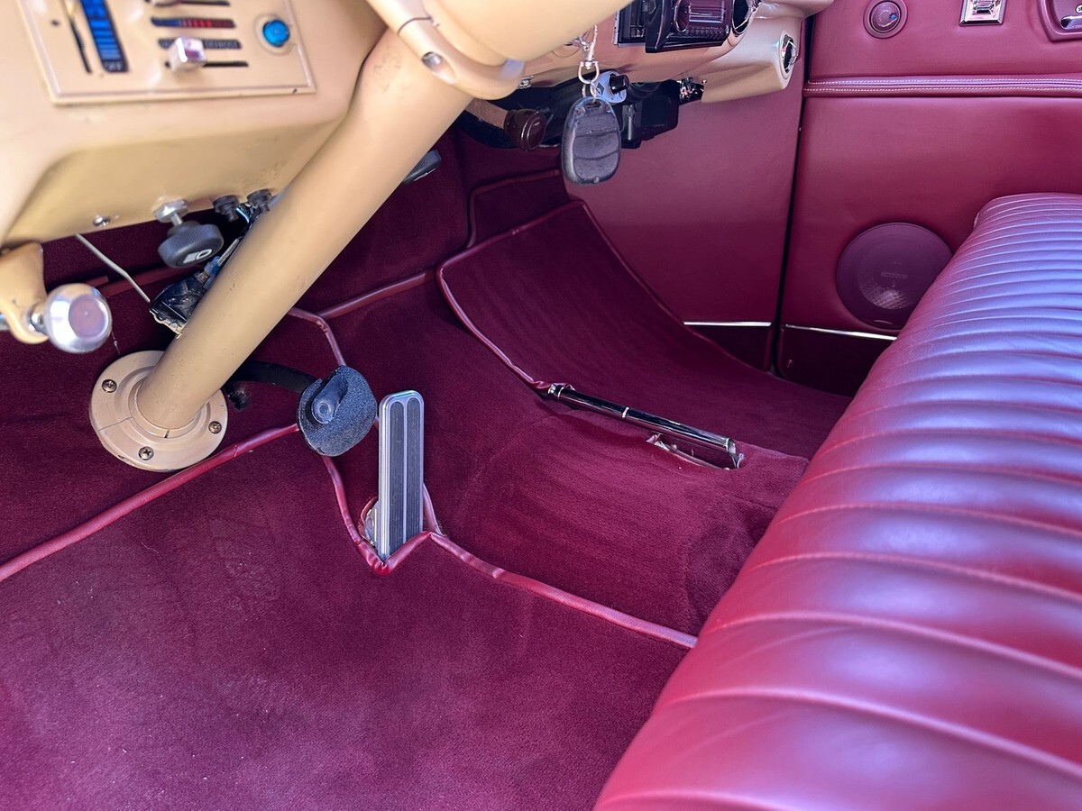 The trunk is finished with the same level of care as the rest of the vehicle and features a hidden spare tire and a custom cooler, both neatly integrated and ready for a road trip or car show. Dual exhaust delivers a subtle rumble that announces the presence of the V8 under the hood without being overbearing.