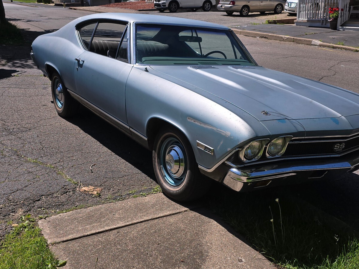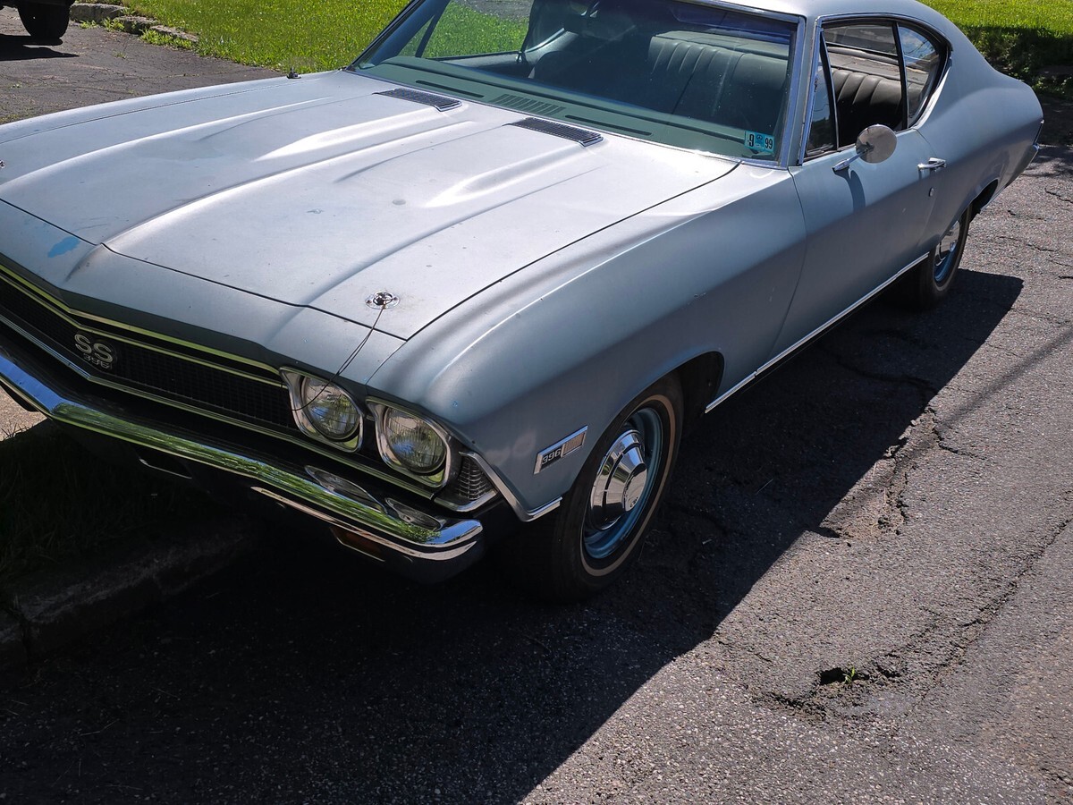 THIS IS A 1968 CHEVY CHEVELLE SS. A RUNNING DRIVING 396 L34 V8 BIG BLOCK MUNCIE 4 SPEED 12 BOLT 3:31 POSI REAR. POWER DISC BRAKES NON AIR, MANUAL STEERING BUCKET SEAT WITH CONSOLE IN DASH ROLL TACH FACTORY 8 TRACK CAR IS 90% ORIGINAL. A GOOD SOLID CAR THAT DOES HAVE SHOWING USE AS IT WAS A DAILY DRIVER FRESH TUNE UP All ALL FILTERS, OIL AND NEW BATTERY. NEEDS TIRES SO IT WILL NEED TO BE TOWED OR A STOP AT OUR LOCAL TIRE STORE. NOT MANY SLEEPERS LIKE THIS ONE LEFT.MESSAGE ME WITH ANY QUESTIONS OR NEEDS.tHANK YOU FOR LOOKING!!!!!!!!!!