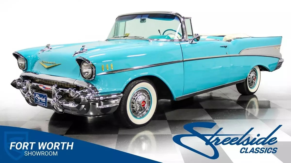 Vehicle Original VIN : VC57S100048This 1957 Chevrolet Bel Air Convertible showcases a striking Tropical Turquoise finish that captures the essence of its era. The sleek body lines and chrome accents reflect the iconic '50s design, while the white canvas top adds a classic touch. Rolling on 14" wheels wrapped in brand new 215/70R14 BFGoodrich Silvertown Radial white wall tires, this Bel Air combines vintage style with a confident stance. The dual exhaust system hints at the power within, while the Hotchkis front sway bar enhances handling for a more responsive drive. Inside, the Turquoise and Ivory interior creates a vibrant, period-correct atmosphere. The bench seats, wrapped in vinyl, offer comfort for cruising. The dash features AutoMeter auxiliary gauges, providing clear readouts of vital stats. The column-mounted shifter and power steering make for easy maneuvering, while the AM radio stands ready to play your favorite oldies. Custom floor mats add a personalized touch to this classic cabin. A fuel injected 327 V8 engine powers this Bel Air, delivering ample performance for modern driving. The Sniper EFI system ensures smooth operation and easy starts, while the Edelbrock intake maximizes airflow and GM double hump 302 heads contribute to the engine's capabilities. The TH400 3-speed automatic transmission handles the power delivery with ease and power brakes provide reliable stopping power, complementing the overall driving experience. The Xlerator mufflers give this Chevy a muscular exhaust note that'll make you smile every time you press the accelerator. HIGHLIGHTS: • Fuel Injected 327 V8 Engine • TH400 3-Speed Automatic Transmission • Sniper Electronic Fuel Injection • Edelbrock Intake • GM Double Hump 302 Heads • Power Steering • Power Brakes • Hotchkis Front Sway Bar • Dual Exhaust with Xlerator Mufflers • Tropical Turquoise Paint • White Convertible Top • Brand New 215/70R14 BFGoodrich Silvertown Radial White Wall Tires • Turquoise and Ivory Interior with Bench Seats This 1957 Chevrolet Bel Air Convertible combines classic '50s style with enhanced performance. With its eye-catching Tropical Turquoise exterior, comfortable interior, and upgraded 327 V8 engine, this Bel Air delivers an authentic vintage experience with modern drivability. Call today!