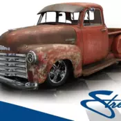Inside, the Turquoise and Ivory interior creates a vibrant, period-correct atmosphere. The bench seats, wrapped in vinyl, offer comfort for cruising. The dash features AutoMeter auxiliary gauges, providing clear readouts of vital stats. The column-mounted shifter and power steering make for easy maneuvering, while the AM radio stands ready to play your favorite oldies. Custom floor mats add a personalized touch to this classic cabin.