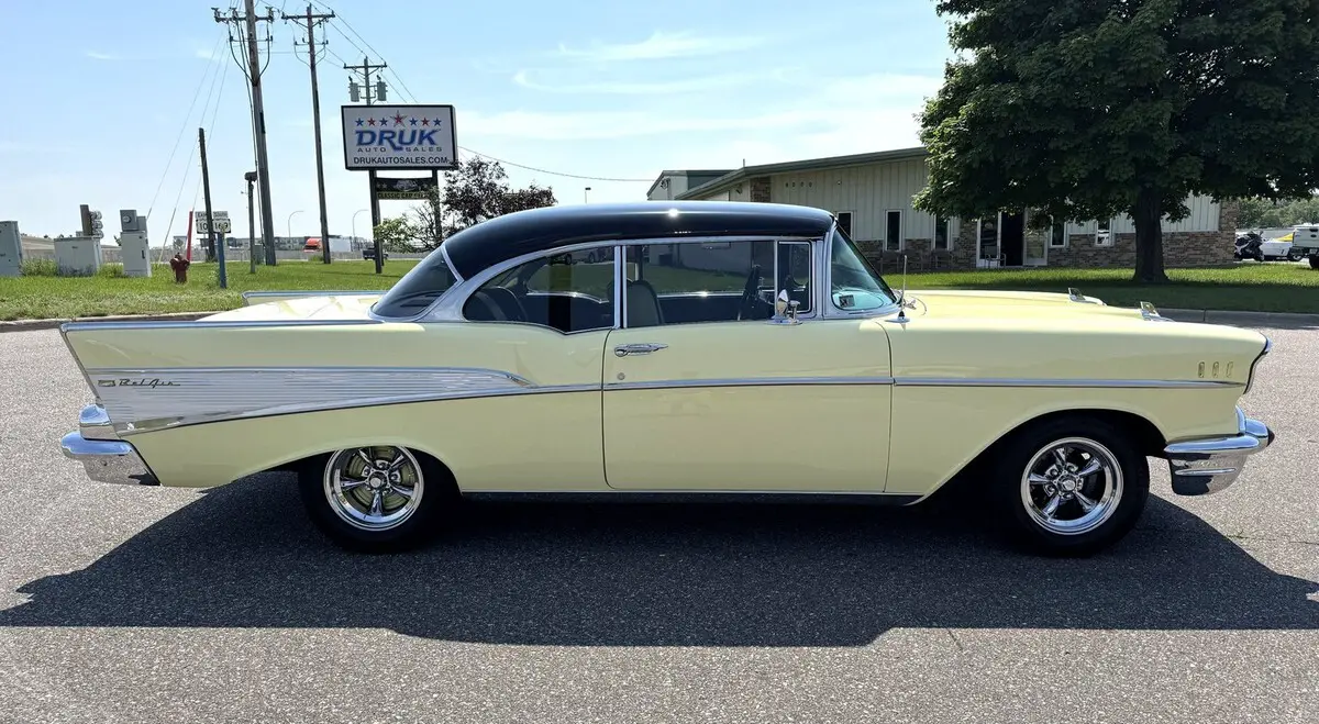 Own a piece of American automotive legend with this breathtaking 1957 Chevy Bel Air. This iconic beauty combines timeless design with a powerful 350-cubic-inch V8 engine, delivering thrilling performance and that classic rumble. A true head-turner, this Bel Air blends vintage charm with reliable modern upgrades. It has front disc brakes, AC that is ice cold. Power drivers seat. Very nice aftermarket radio that works. Wipers work, headlamps work, power windows work. This car is ready for you to turn the key and start enjoying. Don't let this dream car pass you by! Clean title.Look at all the pictures and videos on our website. www.DrukAutoSales.comSHIPPING AVAILABLE * FINANCING AVAILABLE * Warranties Available * www.DrukAutoSales.com *FaceTime walk around are available!
